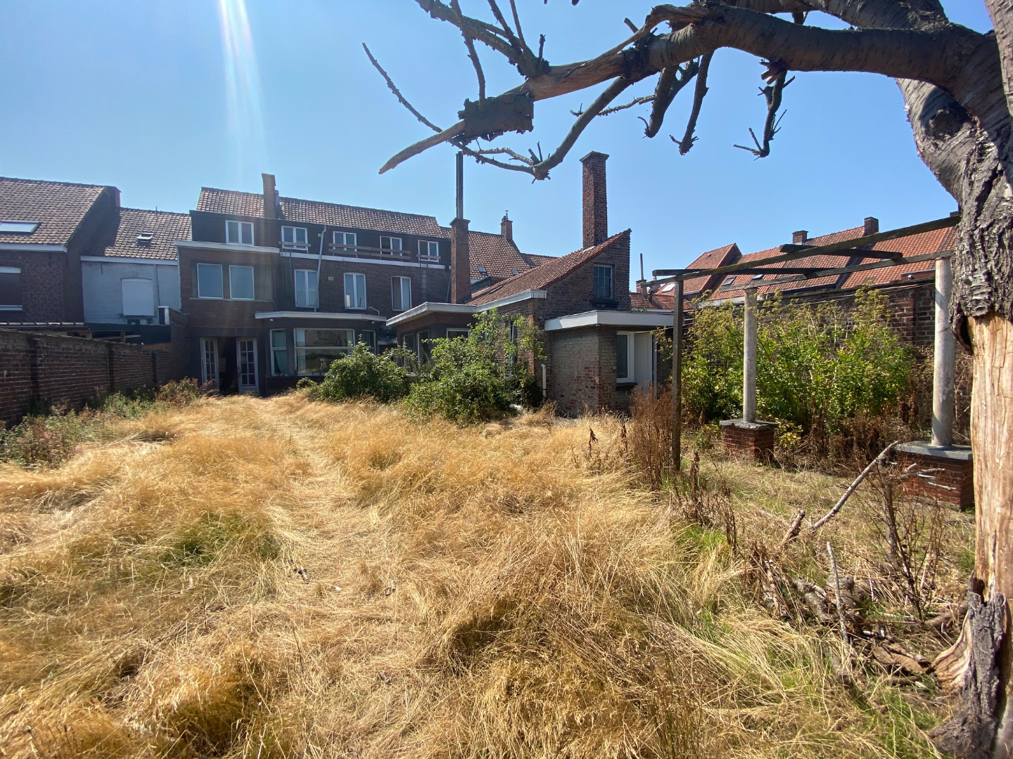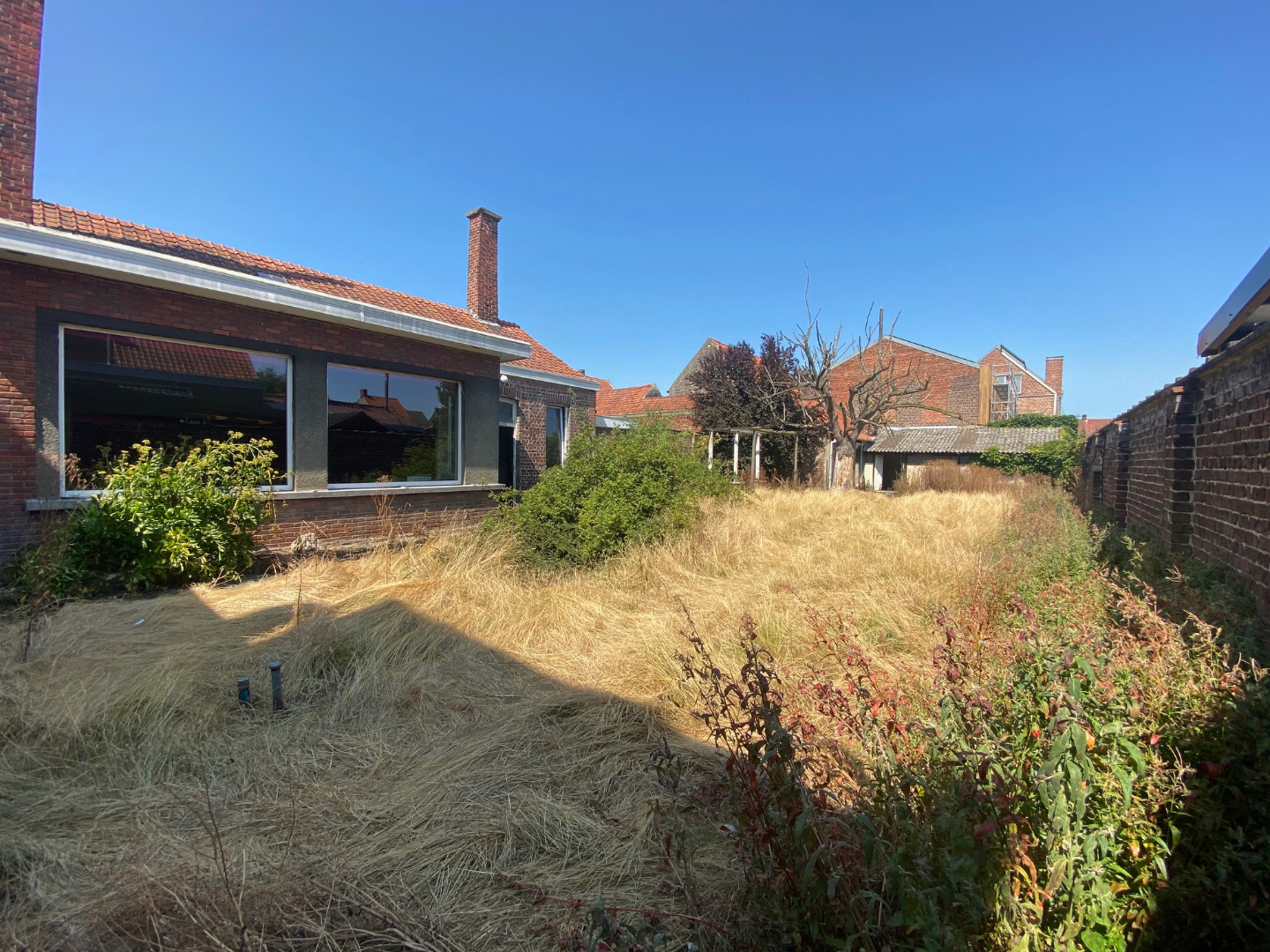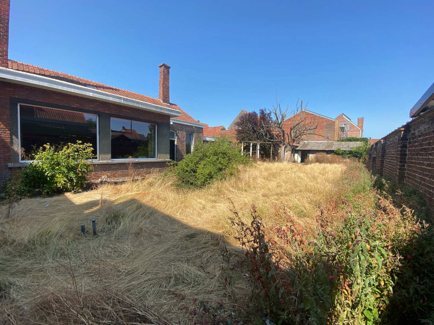 EXTERIEUR: Rechts van de woning is er een garage/doorrit naar de zongerichte tuin. De tuin omvat 300 m² en beschikt achteraan over een tuinberging van 91 m². Tevens te renoveren.