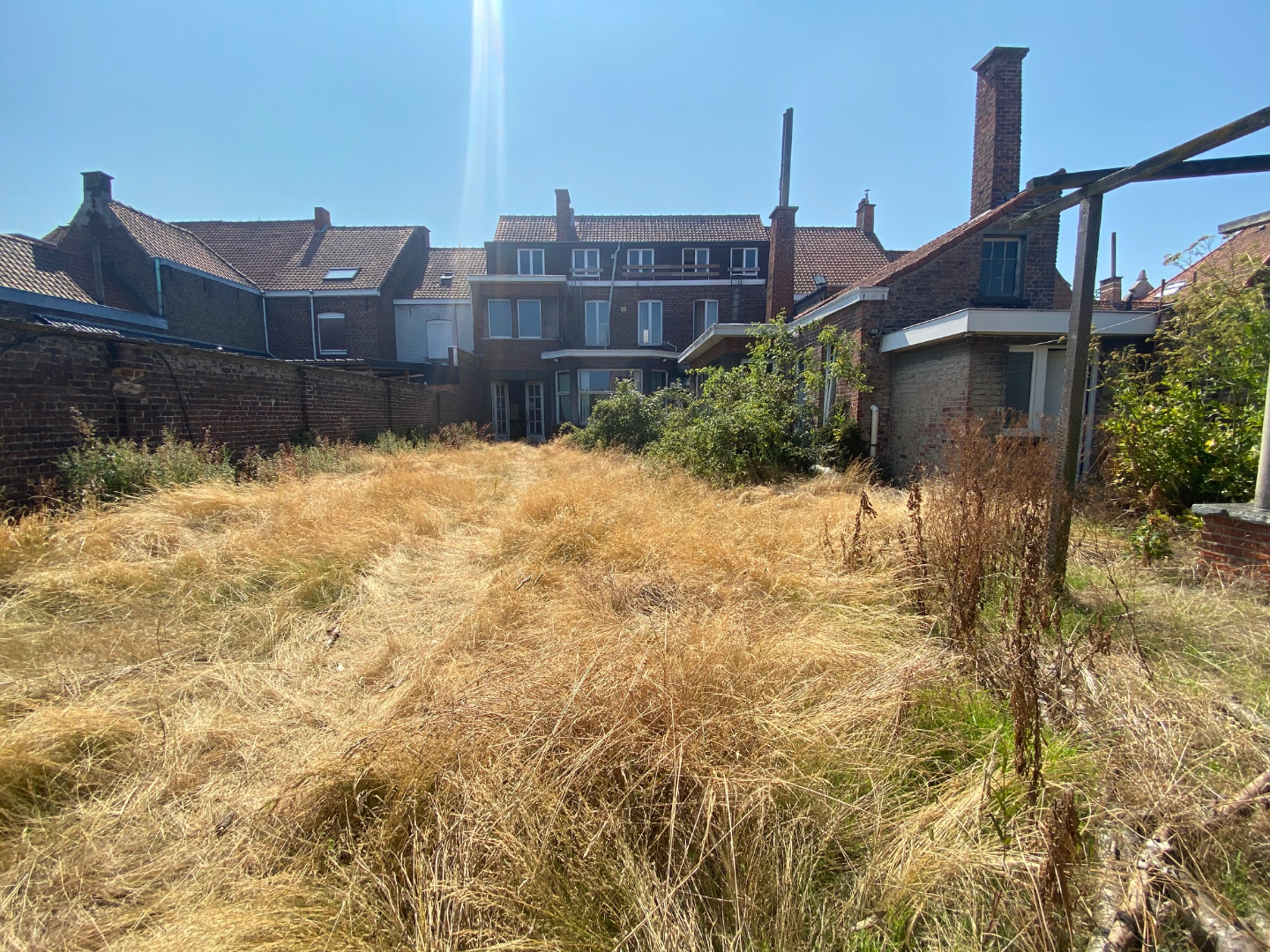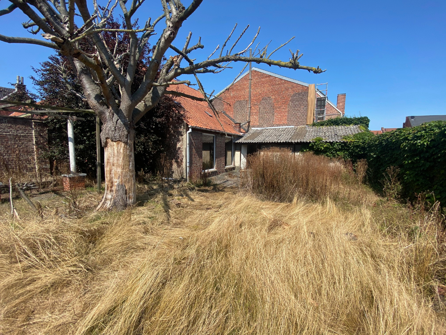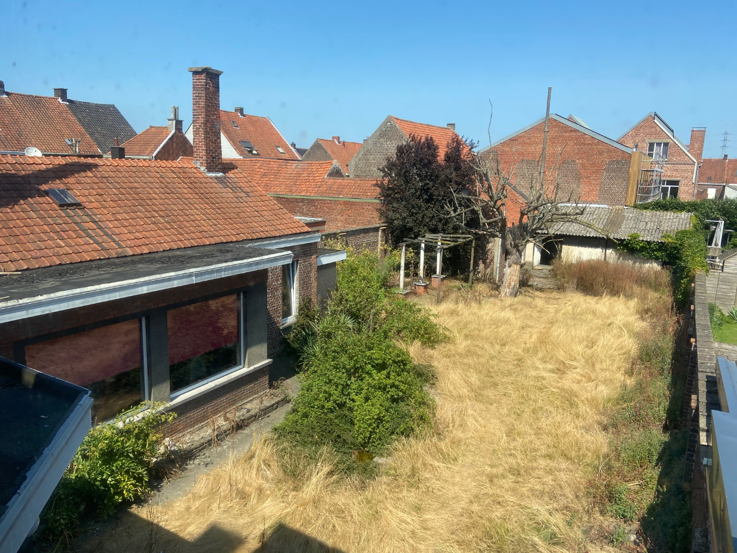 EXTERIEUR: Rechts van de woning is er een garage/doorrit naar de zongerichte tuin. De tuin omvat 300 m² en beschikt achteraan over een tuinberging van 91 m². Tevens te renoveren.