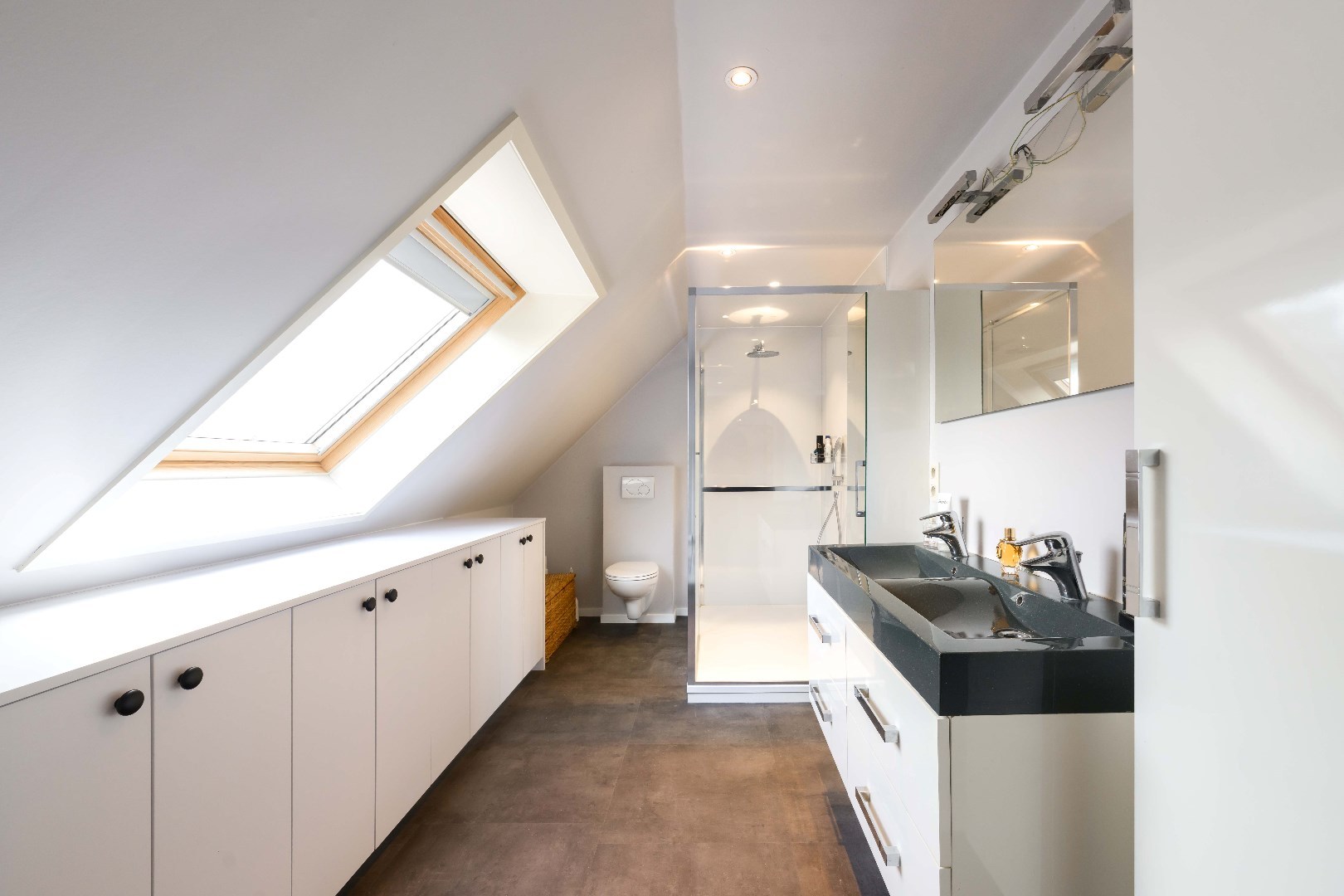 Het verdiep omvat de nachthall met toegang tot de vernieuwde badkamer (toilet | inloopdouche | dubbele lavabo met meubel) alsook ruime tweepersoons slaapkamer. Alle ruimtes op het verdiep beschikken over ingemaakte kastenwanden.