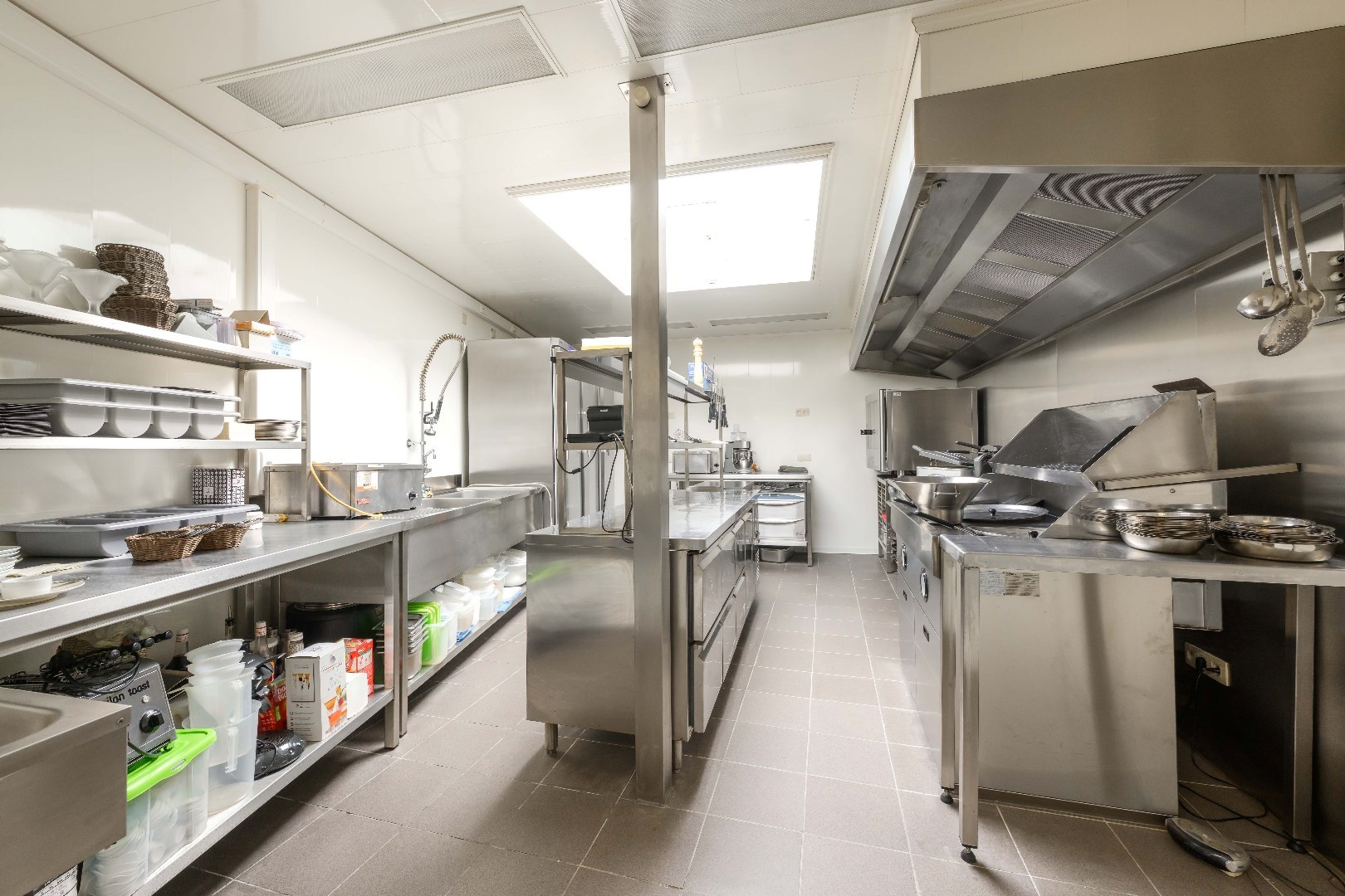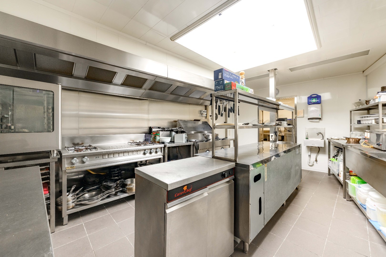 Uiteraard is er de perfect onderhouden professionele keuken en afzonderlijke afwasruimte, alles conform ingevolgekeuring FAVV.