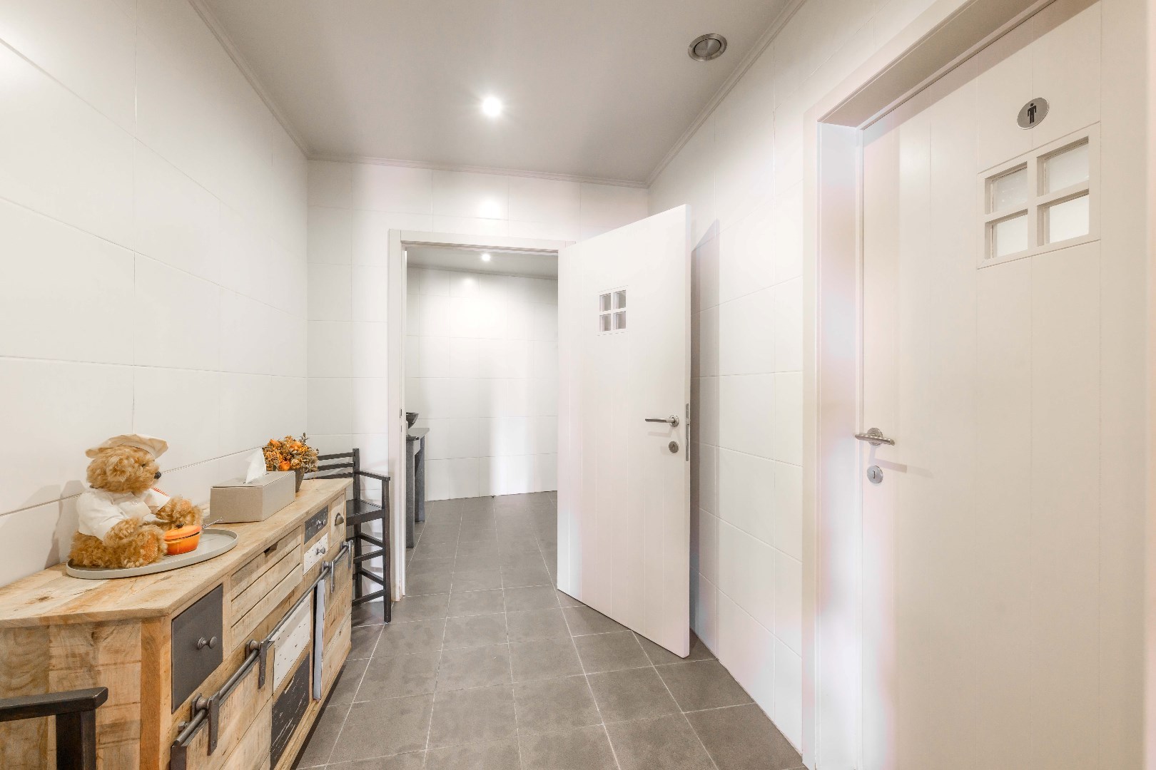 U beschikt over apart toiletten, met name 2 toiletten voor de dames en 1 toilet en piscine voor de heren, telkens met inkom/handwasser.