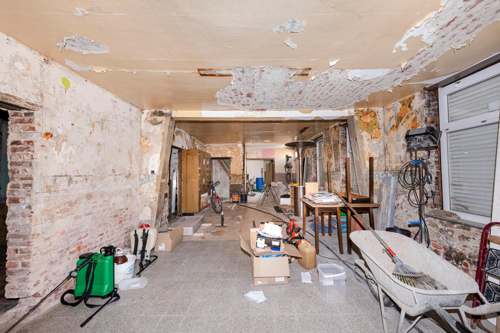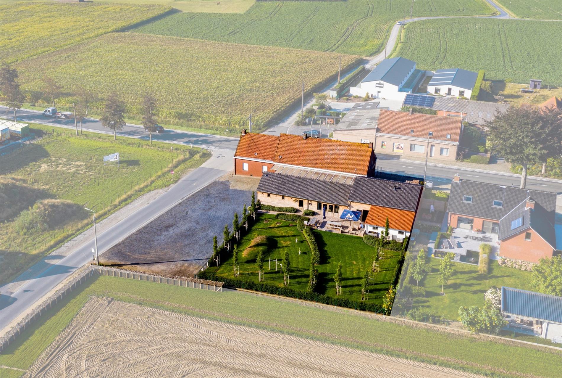 Het nieuwe gedeelte omvat 235 m² en het te renoveren gedeelte (café) omvat 210 m² bebouwde oppervlakte. U kan de keuze maken en het voormalig café renoveren of U kan beslissen om dit gedeelte af te breken en aansluitend op het nieuwe gedeelte 800 m³ bij te bouwen!!! Dit kan dienst doen als uitbreiding van de huidige handelszaak of als woonst.