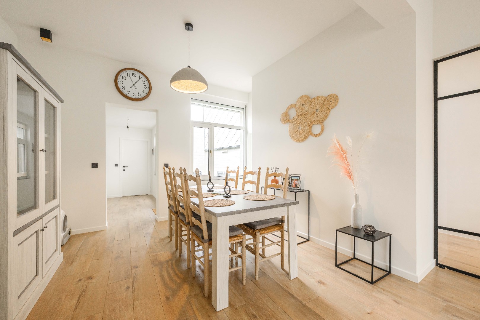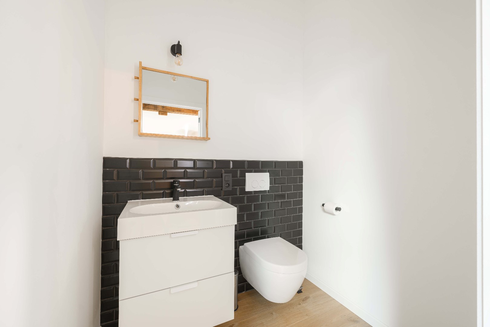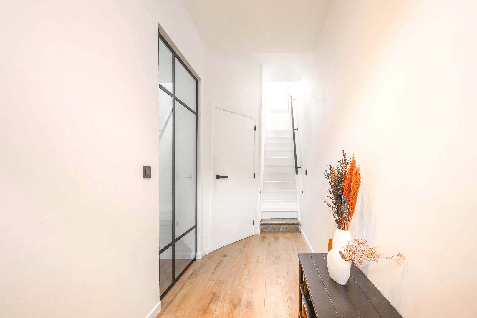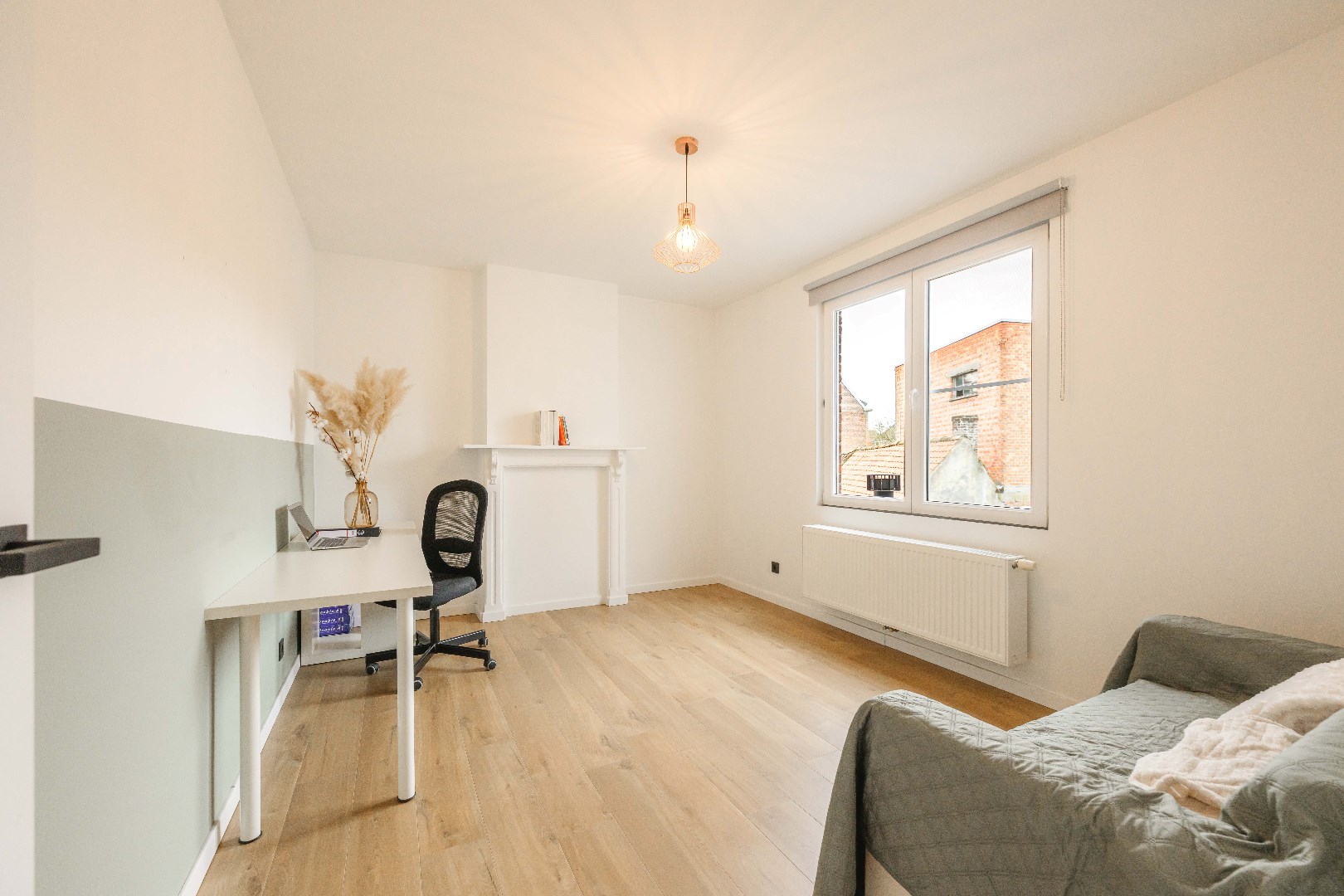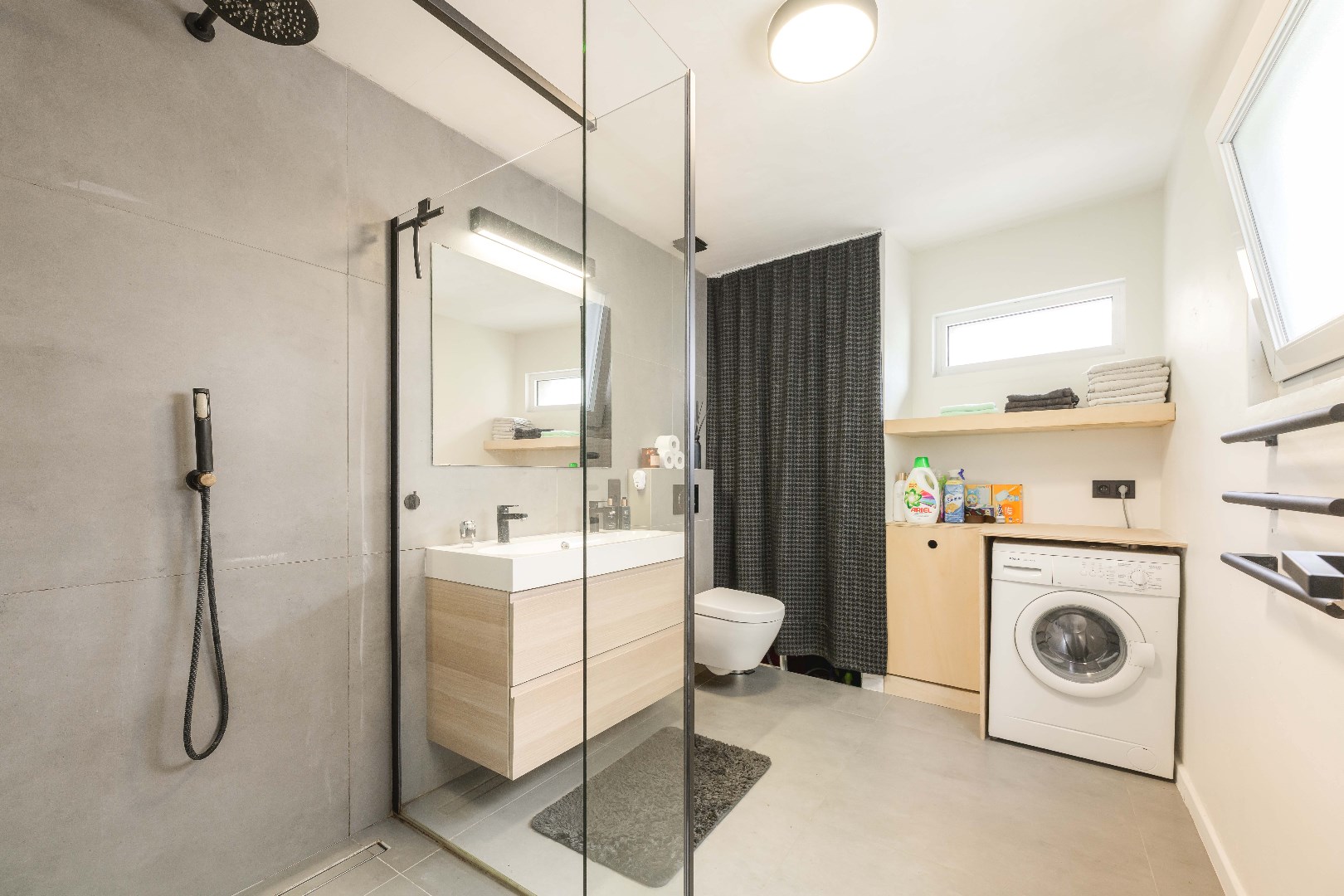 Verder is er op de benedenverdieping een moderne badkamer met inloopdouche, lavabo met meubel en toilet, plus de nodige aansluitingen voor wasmachine en droogkast.