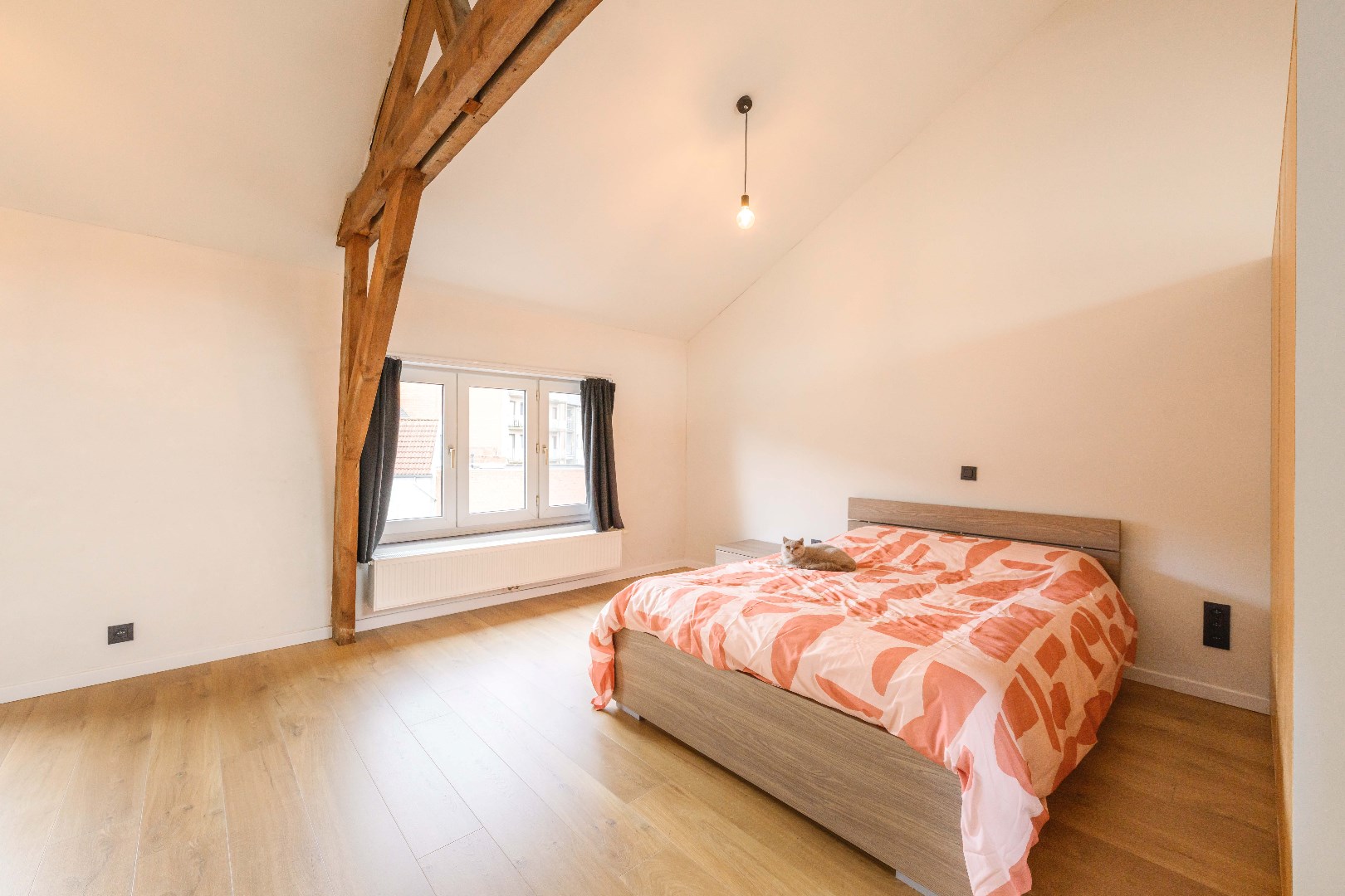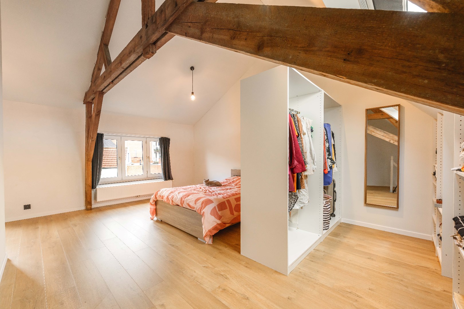 De dakverdieping is toegankelijk via een vaste trap en is volledig ingericht als een ruime 3e slaapkamer met een aparte dressingruimte en sanitaire ruimte (toilet | lavabo met meubel).