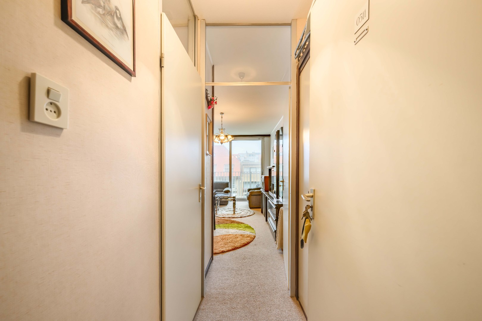 U komt binnen in de gemeenschappelijke inkomhal met lift en trappenhal.