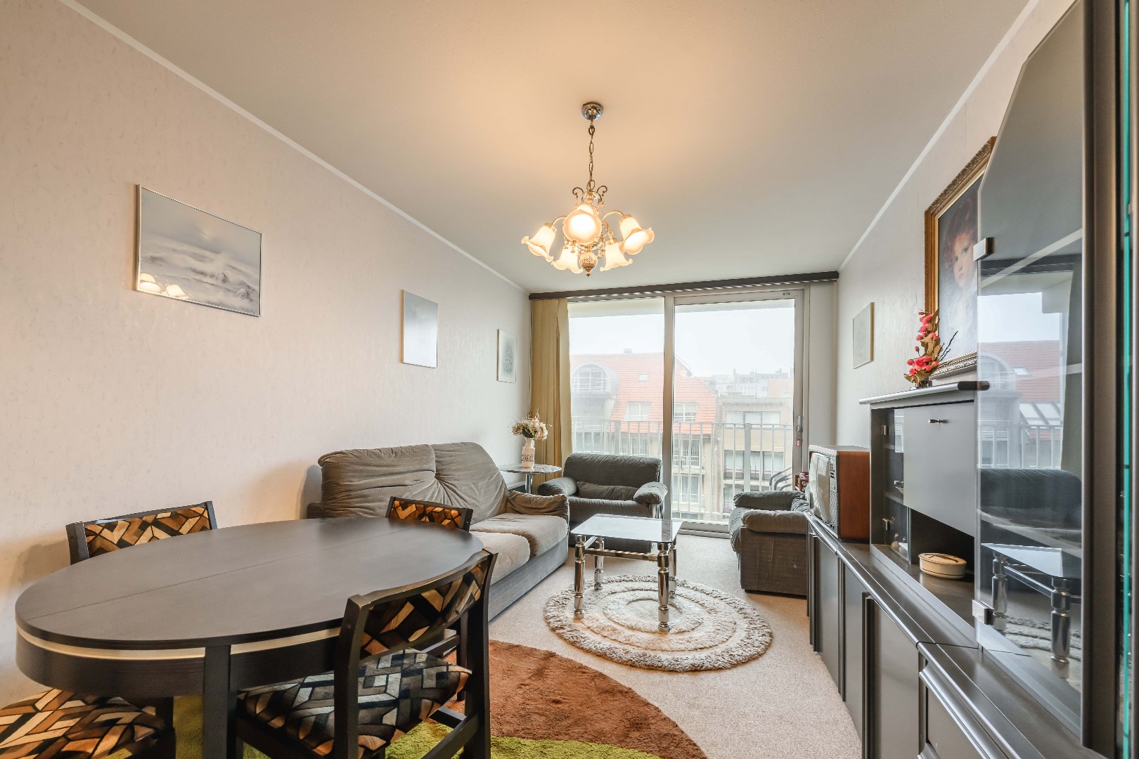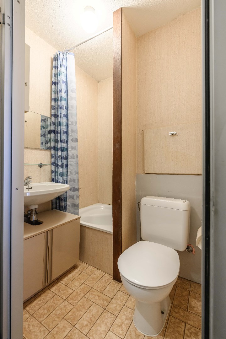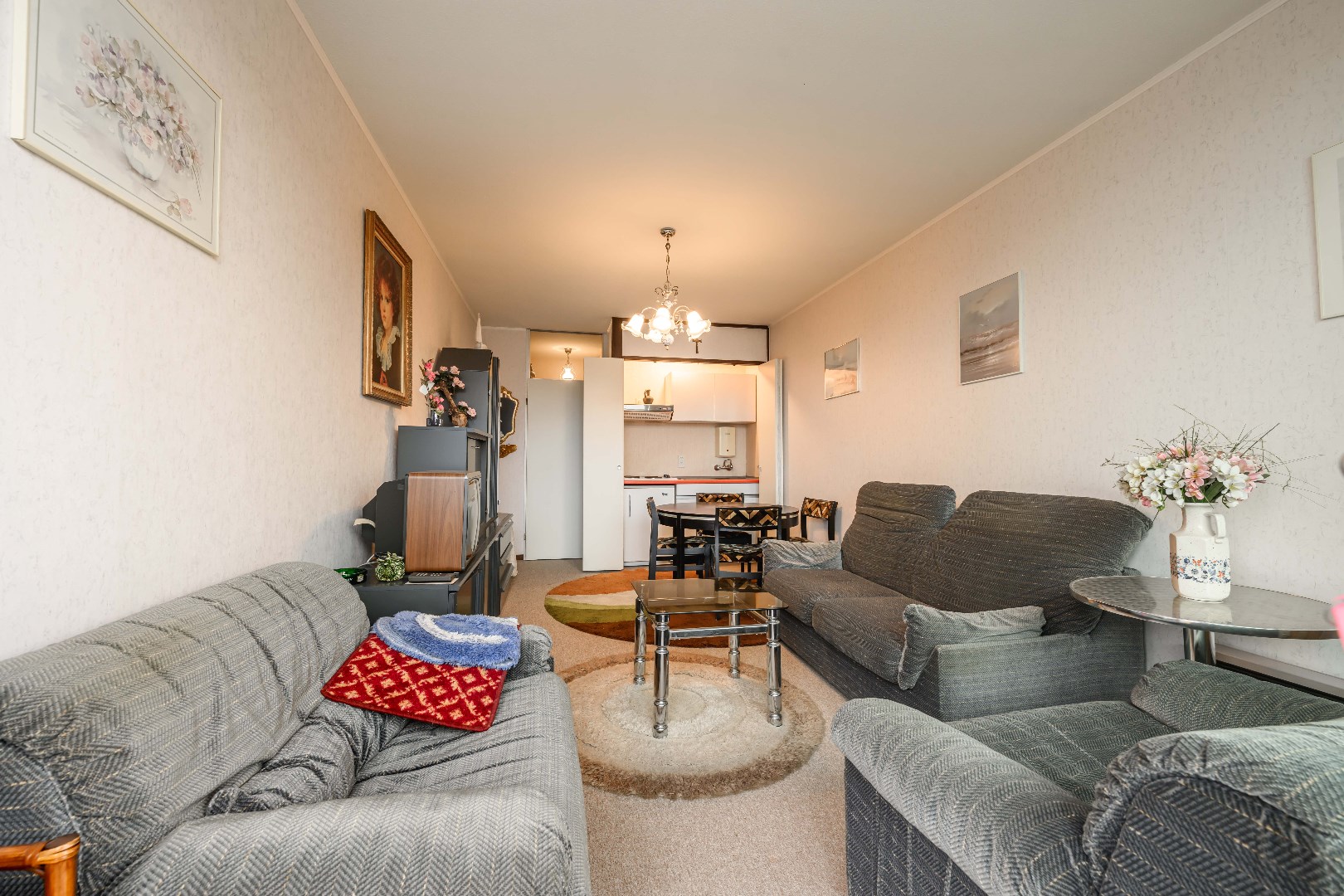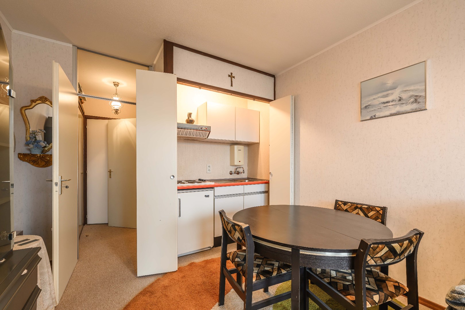 Het appartement is gelegen op het vijfde verdiep. U komt binnen in de inkomhal met badkamer (lavabo met meubel | douche | toilet) verder komt U terecht in de leefruimte met zit- en eethoek en keuken (deze bevindt zich in de kast) verder is er directe toegang tot het terras met vergezichten.
