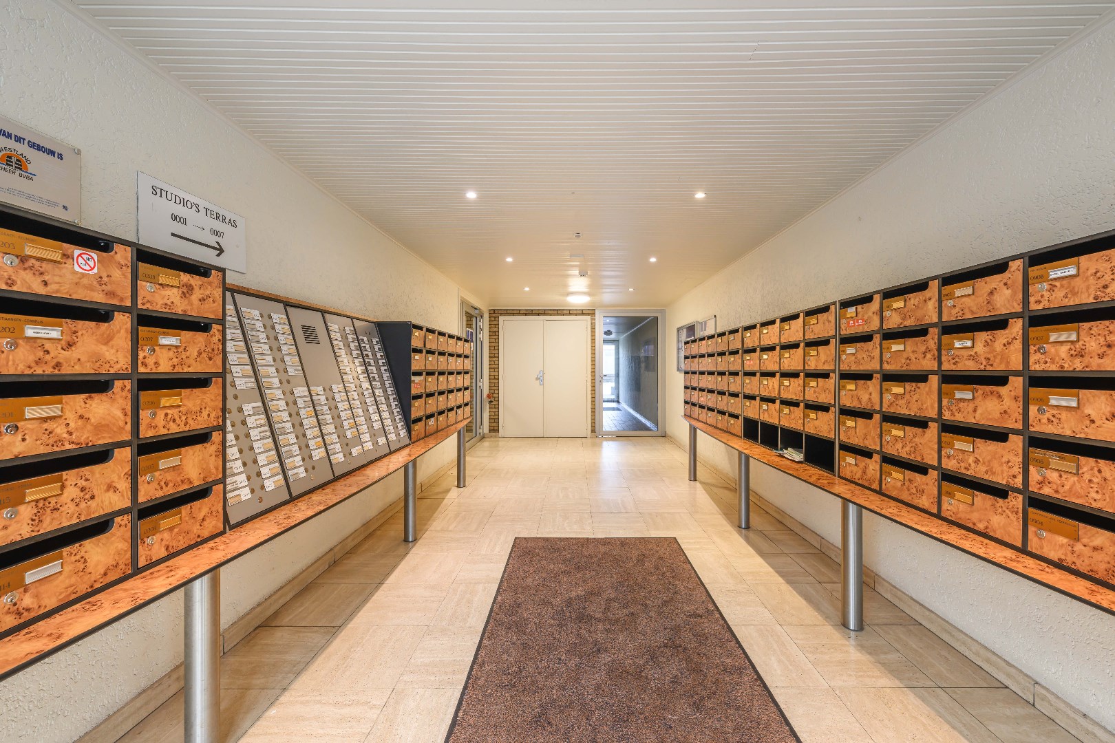 De studio is voorzien van een terras en een private ondergrondse parkeerplaats met alsook een kelderberging.
