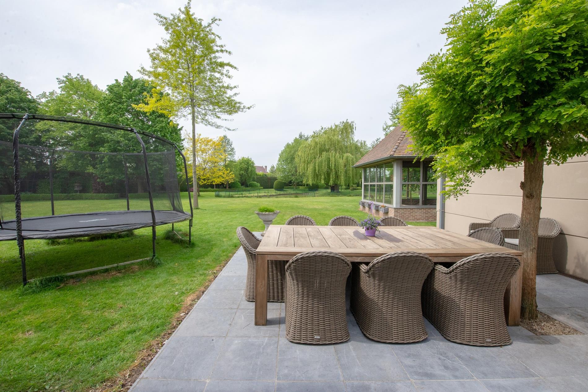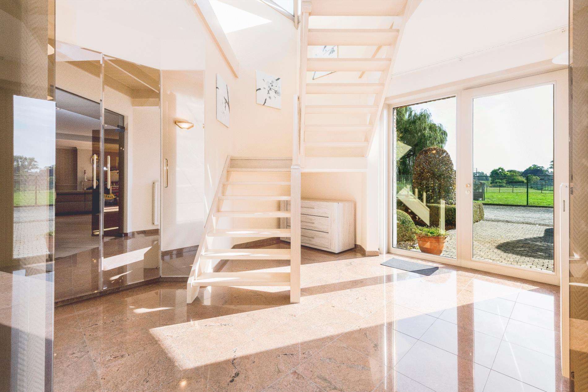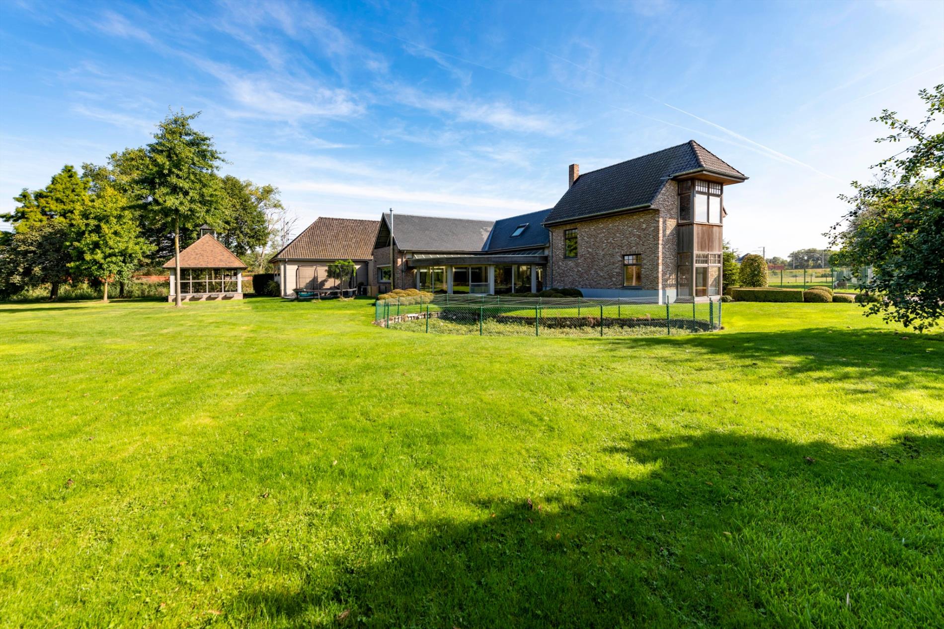 Deze eigendom beschikt over een private afgesloten oprijlaan. In de prachtige siertuin met natuurlijke vijvers kan U op elk moment van de dag genieten. Tevens is er de mogelijkheid tot aankoop van de volledig omheinde weide met stalling op 2.868 m².