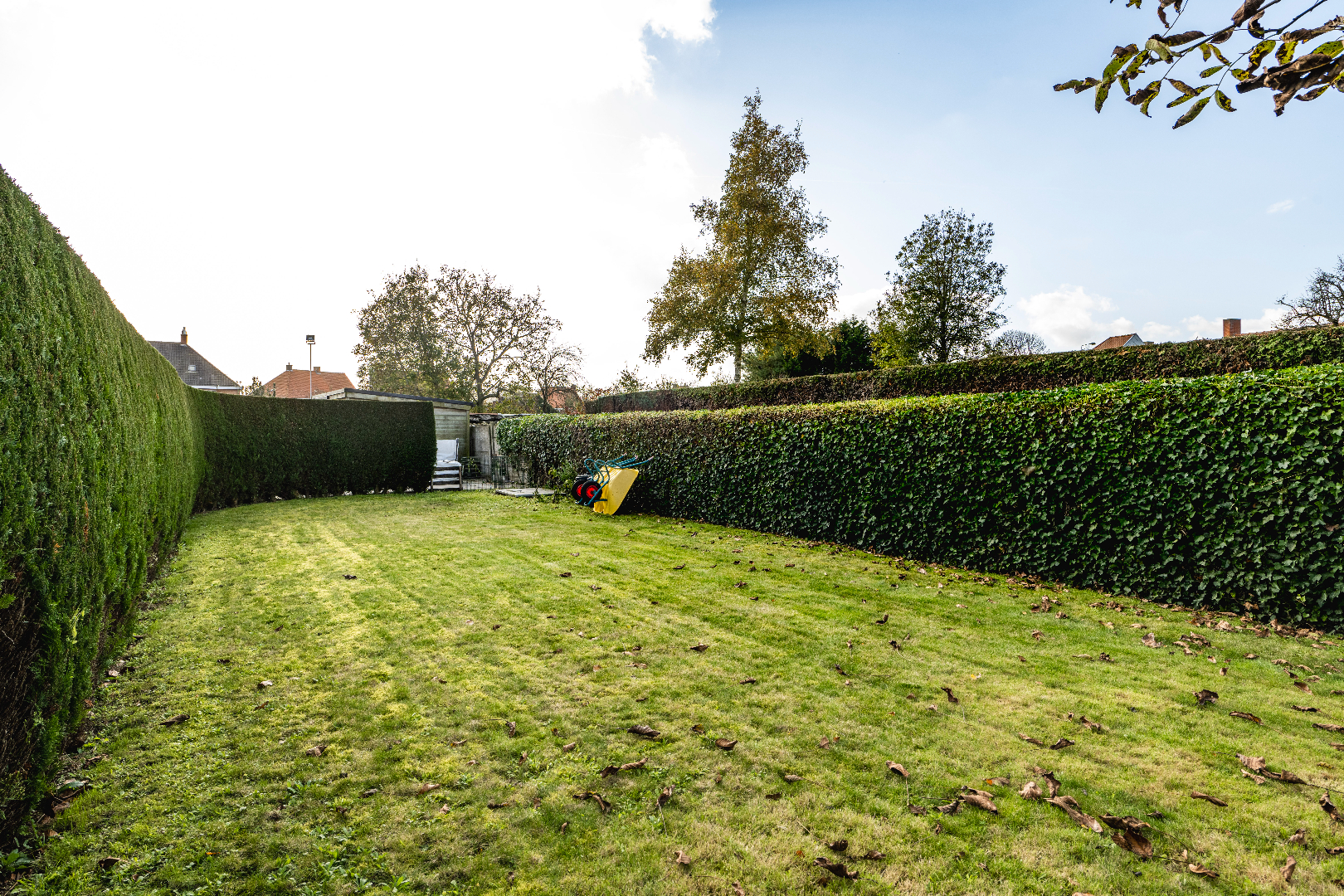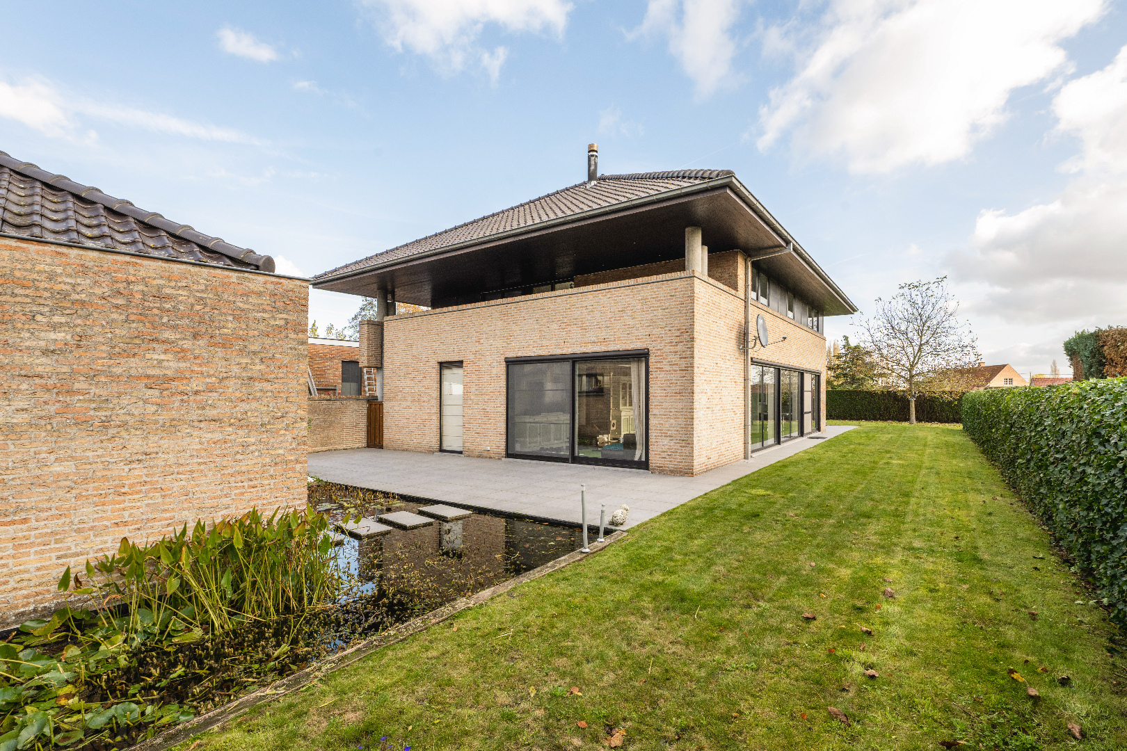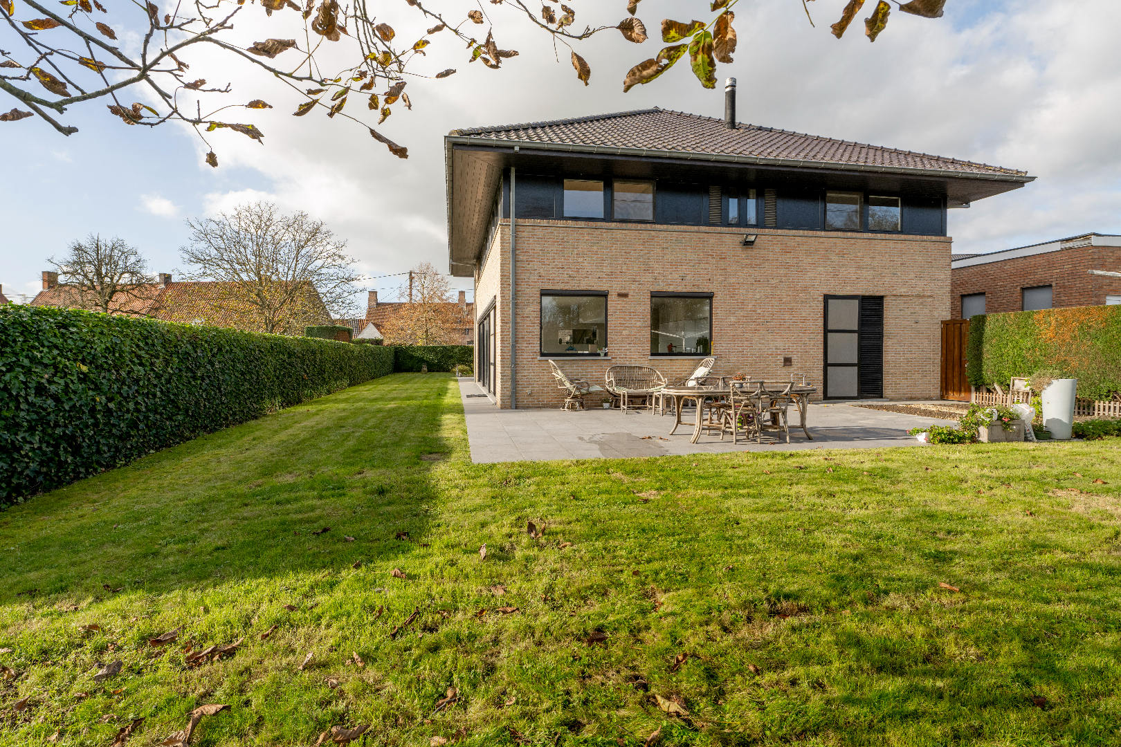 EXTERIEUR: De woning beschikt over een aangelegde tuin met diverse zongerichte terrassen, volledig afgesloten en ingevolge kindvriendelijk. Verder is er links van de eigendom een doorrit naar de achterliggende tuinberging van maar liefst 40 m².