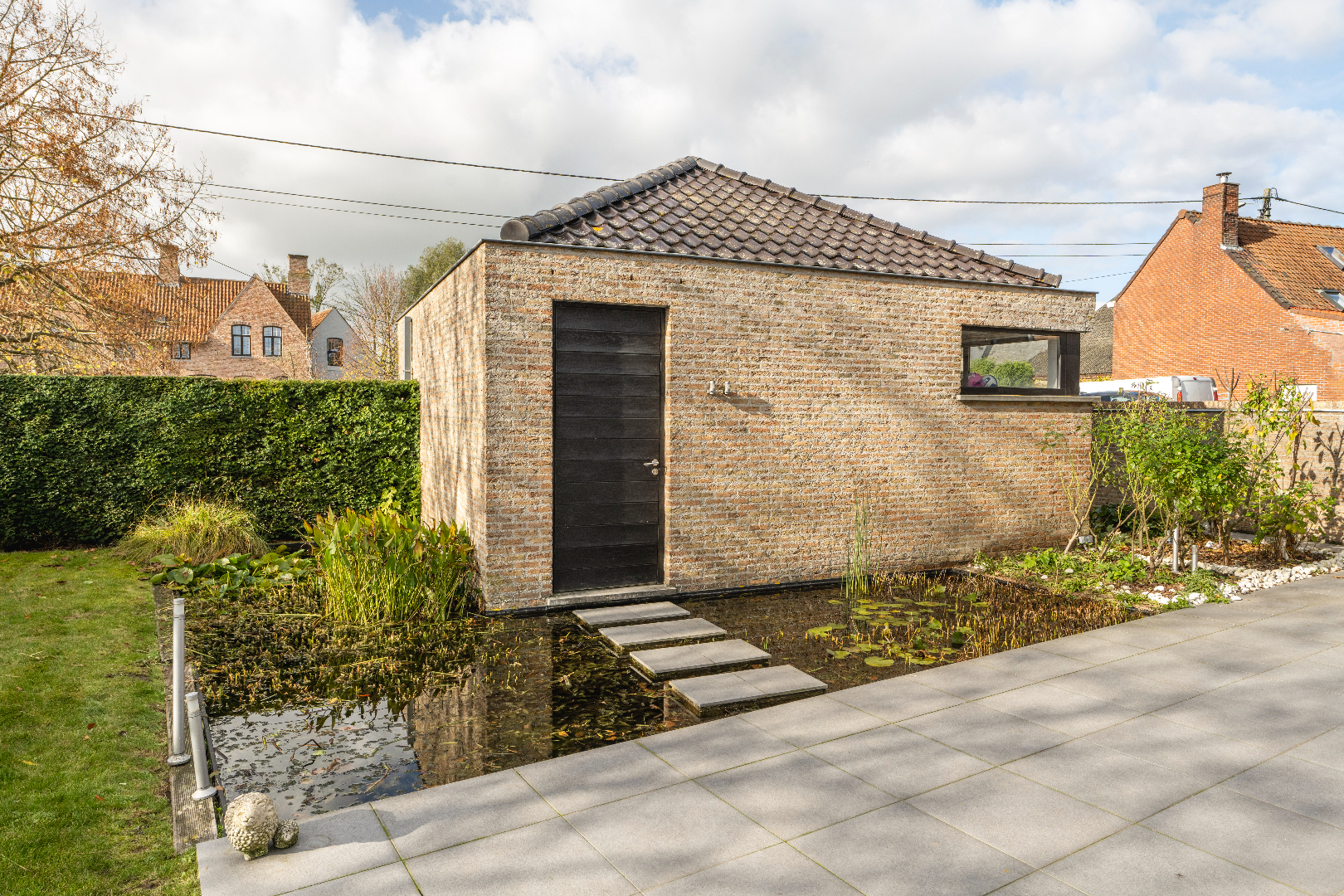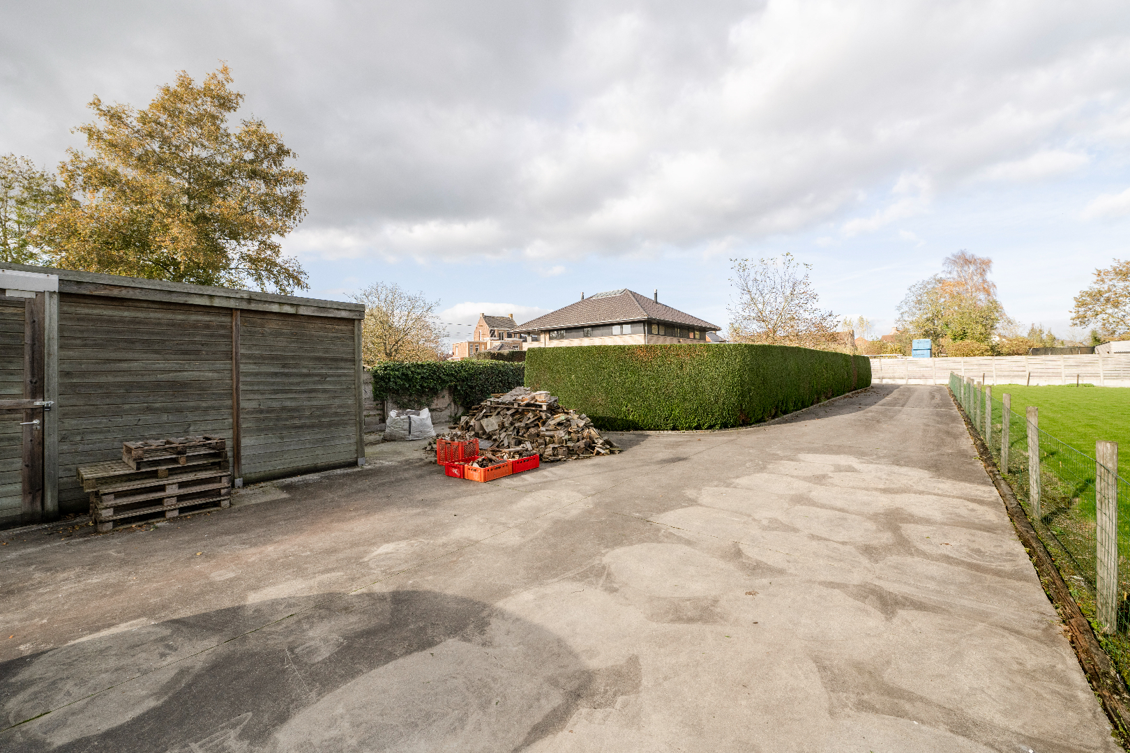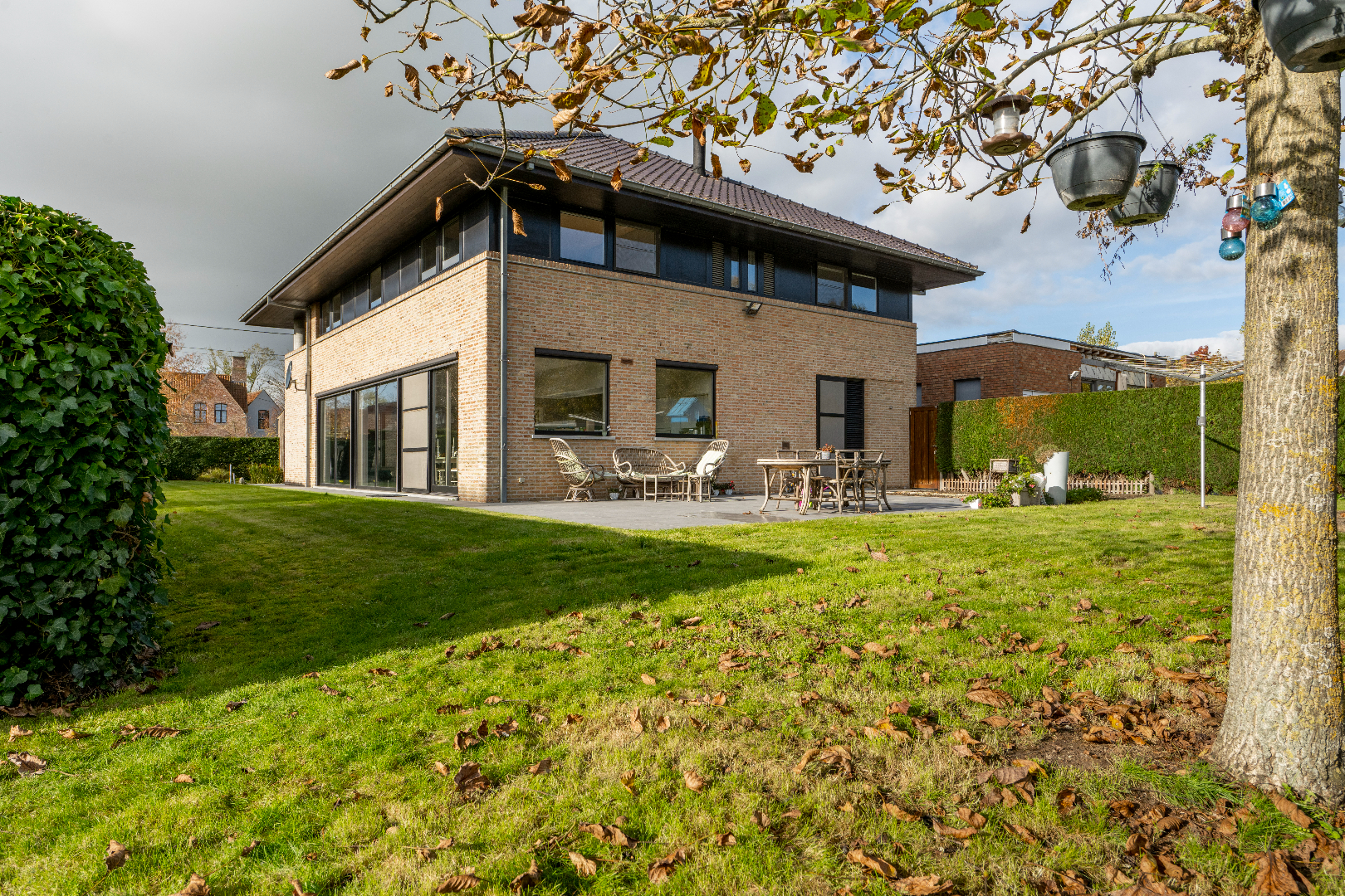 EXTERIEUR: De woning beschikt over een aangelegde tuin met diverse zongerichte terrassen, volledig afgesloten en ingevolge kindvriendelijk. Verder is er links van de eigendom een doorrit naar de achterliggende tuinberging van maar liefst 40 m².