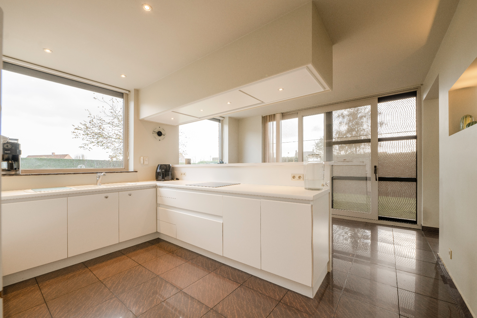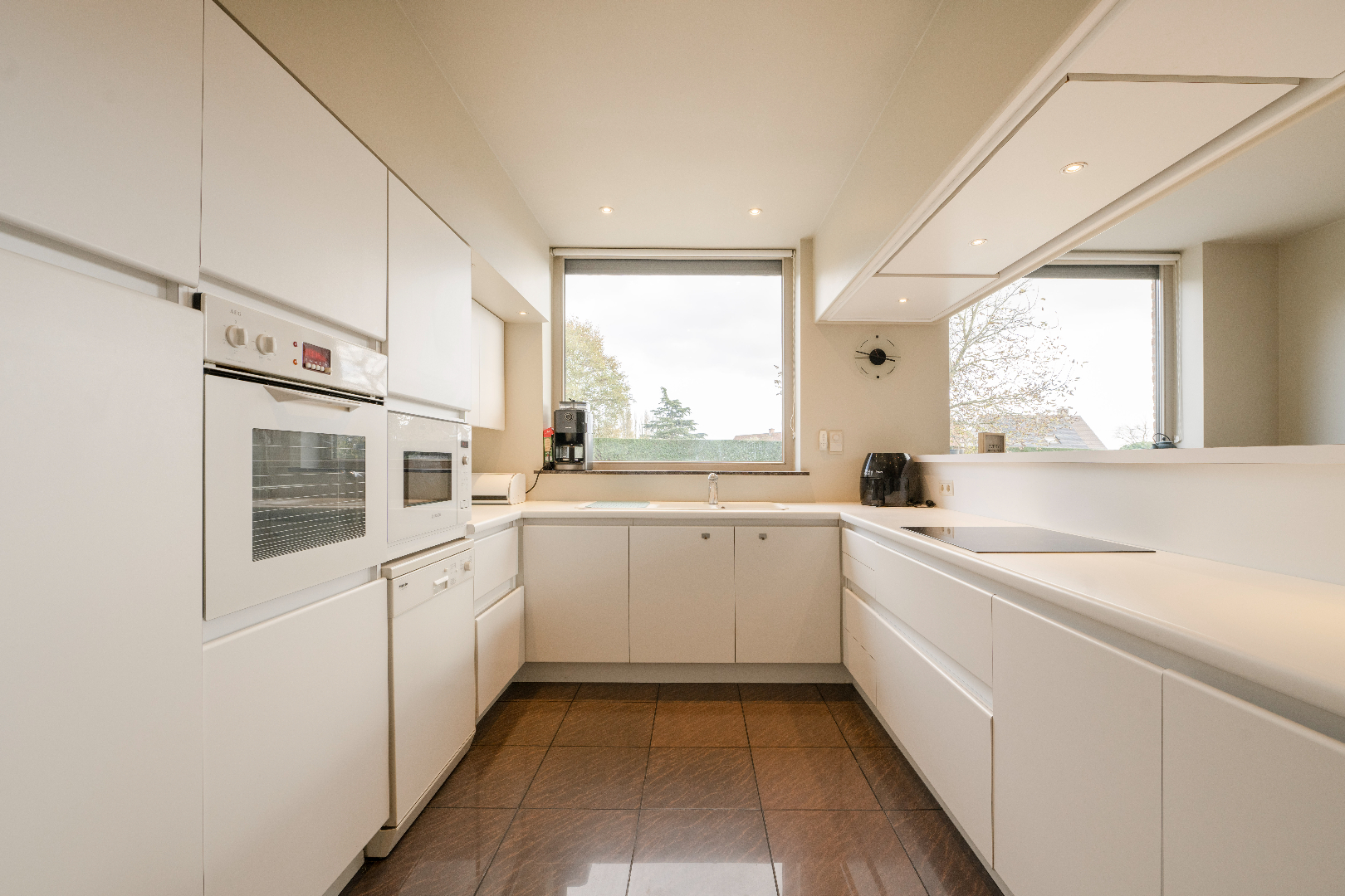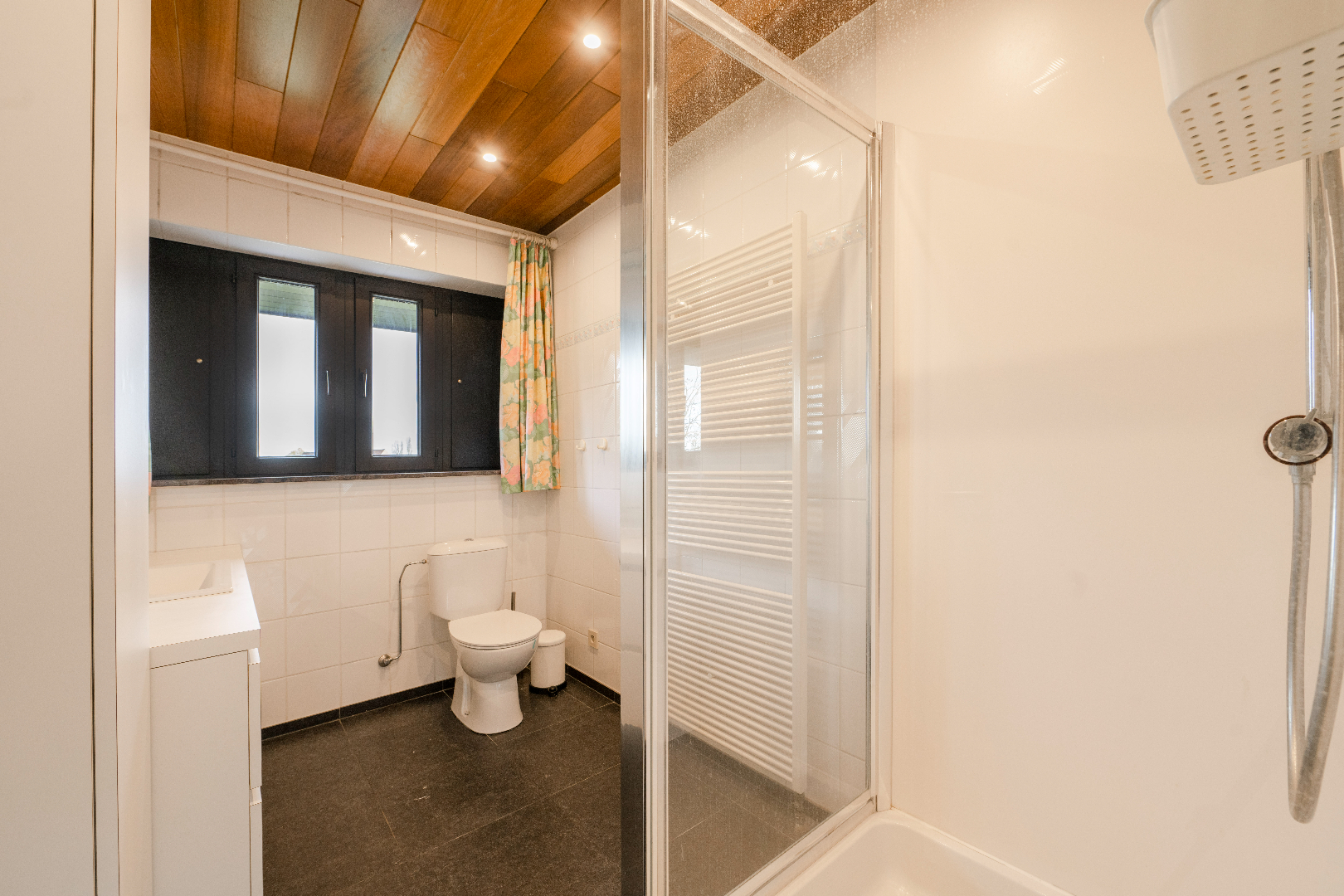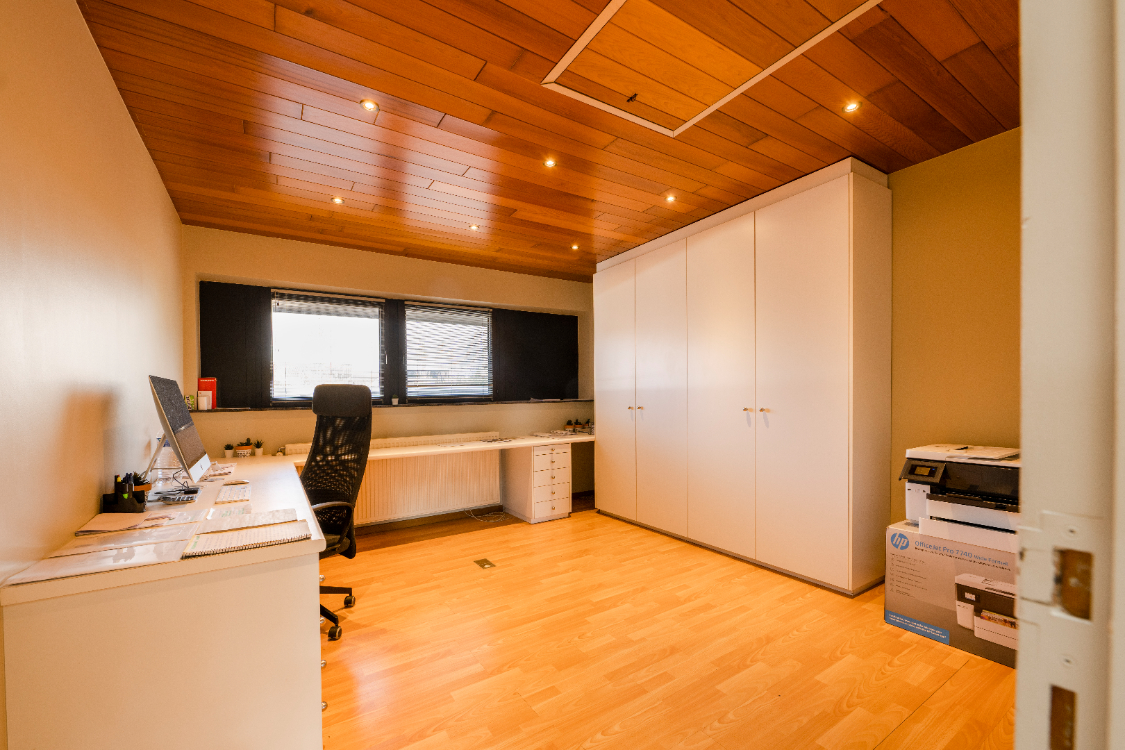 INTERIEUR: Gelijkvloers: We komen binnen in de inkomhal voorzien van vestiaire en gastentoilet. De eigendom beschikt over een ruime leefruimte (51,75 m²) met prachtige houtcassette. Vanuit de leefruimte en keuken hebben we een prachtig zicht op de onderhoudsvriendelijke tuin. De leefkeuken (20,40 m²) is volledig geïnstalleerd (vaatwasser | dubbele spoelbak | kookplaat | dampkap | oven en microgolf). Via de keuken hebben we toegang tot de ingerichte koele berging (5,45 m²) en aansluitende wasplaats met ingemaakte kastenwanden (8,98 m²). Verder op het gelijkvloers is er een slaapkamer (12 m²) met aansluitende ingebouwde dressingruimte (8,80 m²) en ingerichte badkamer (10,40 m²) voorzien van dubbele lavabo met luxe bad. Eerste verdiep: Op het 1ste verdiep zijn er 3 slaapkamers, met name 16,80 m² met ingebouwde kastenwand, nogmaals een kamer van 16,80 m² met ingebouwde kastenwand en als laatste een slaapkamer van 15,33 m² met toegang tot het overdekte terras van 24,75 m²!!! Daarnaast is er een bureel van 15,33 m² alsook een ingerichte badkamer met douche, toilet en lavabo met meubel. Via een vouwtrap is er toegang tot de geïsoleerde zolder/stapelruimte.