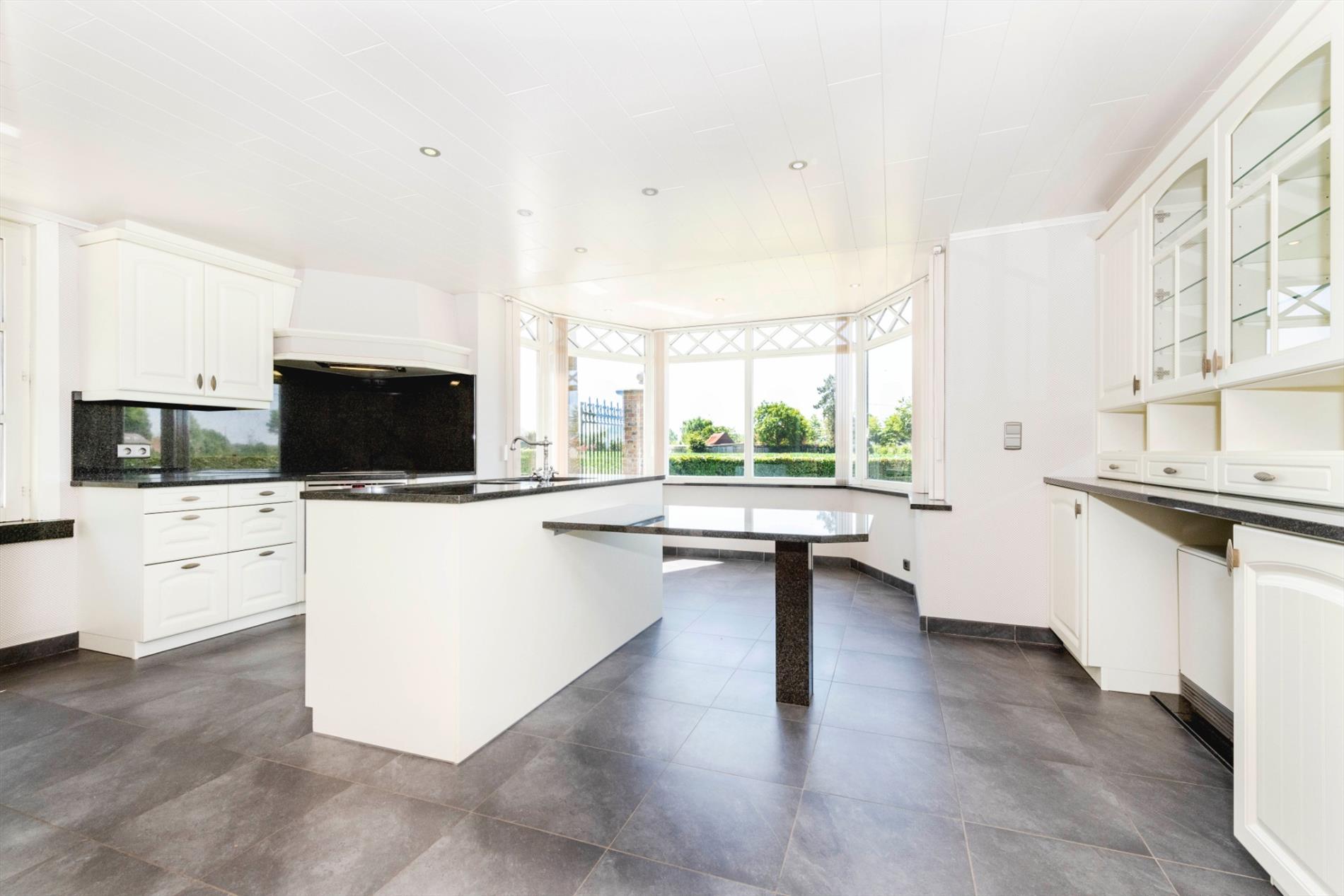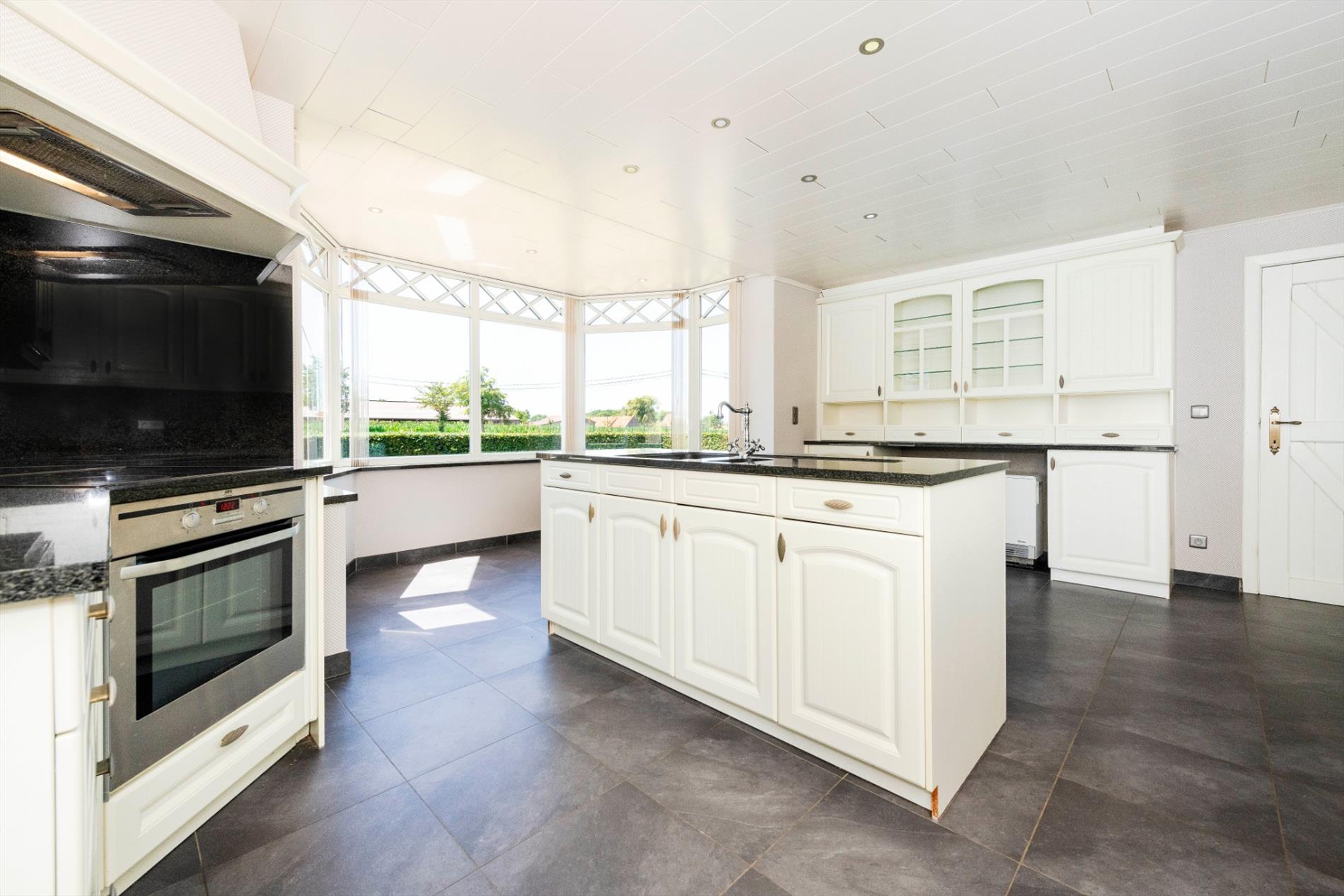 Aansluitend is er een open volledig uitgerust keuken (o.a. kookplaat, dampkap, oven en koelkast) met eiland en omvat zeer veel kastruimte.