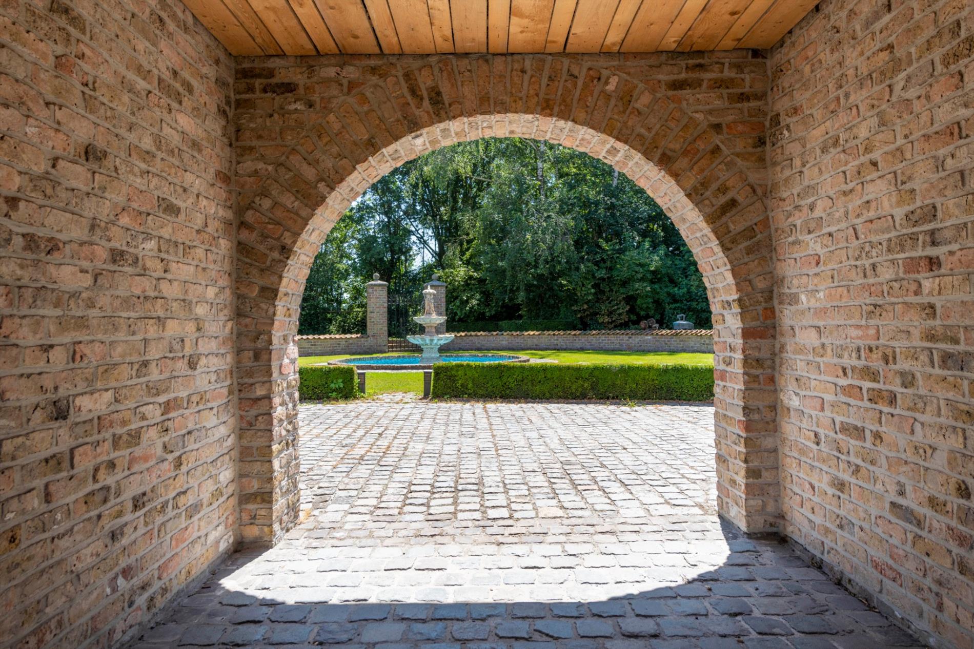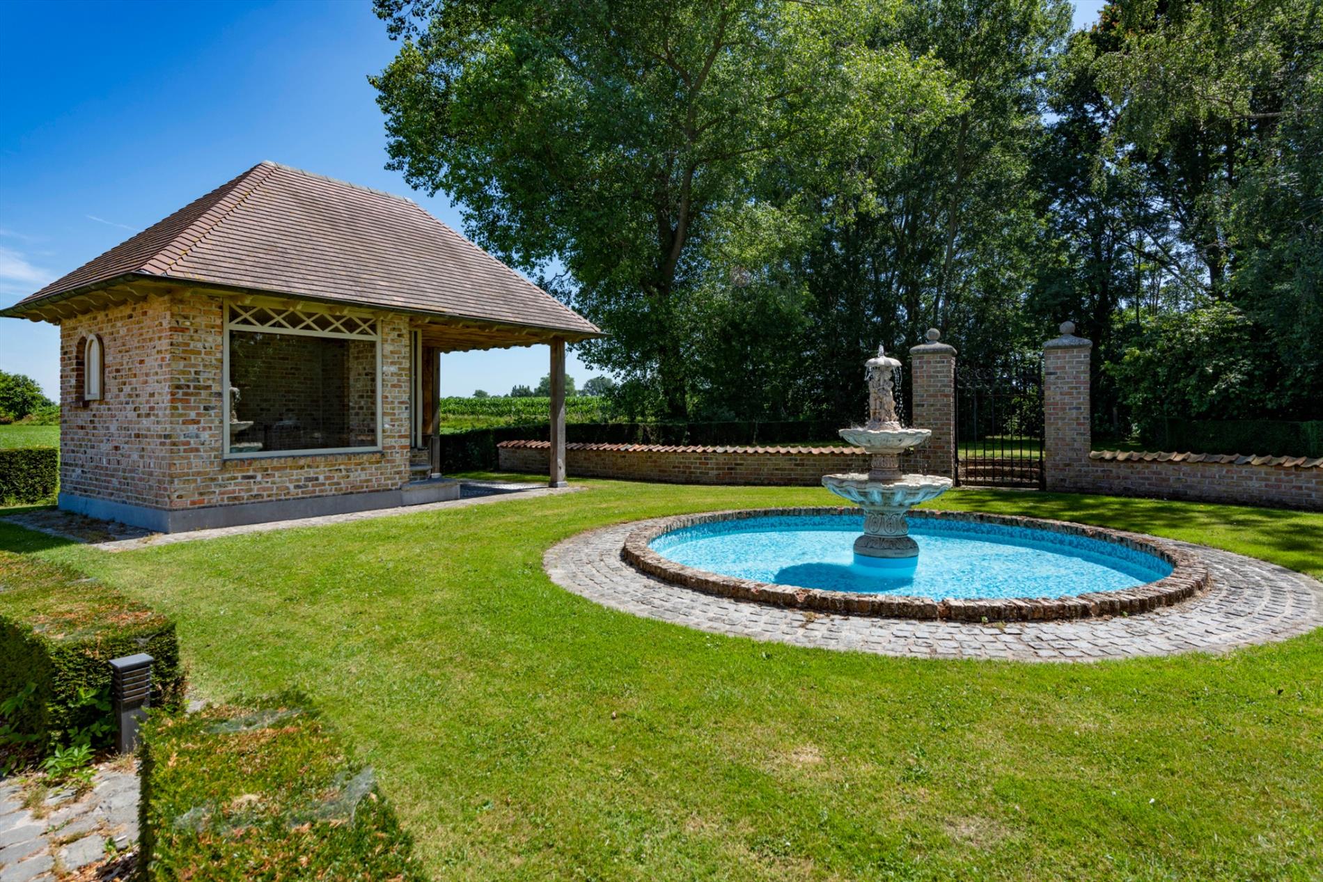 Tevens een bijgebouw met een prachtig verzicht op de fontein. De oprijlaan is volledig aangelegd in kassei wat de authenticiteit van de eigendom behoudt.