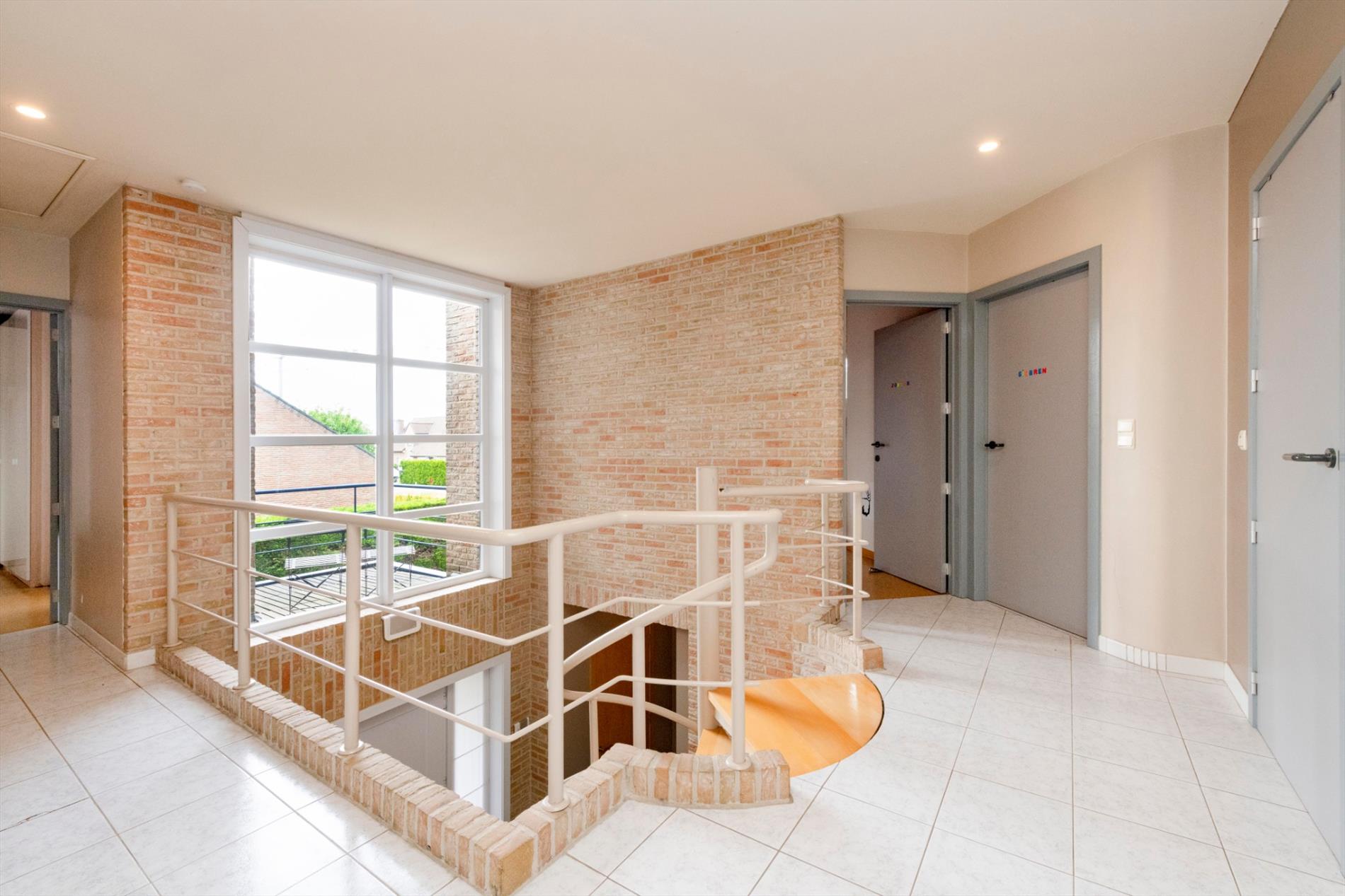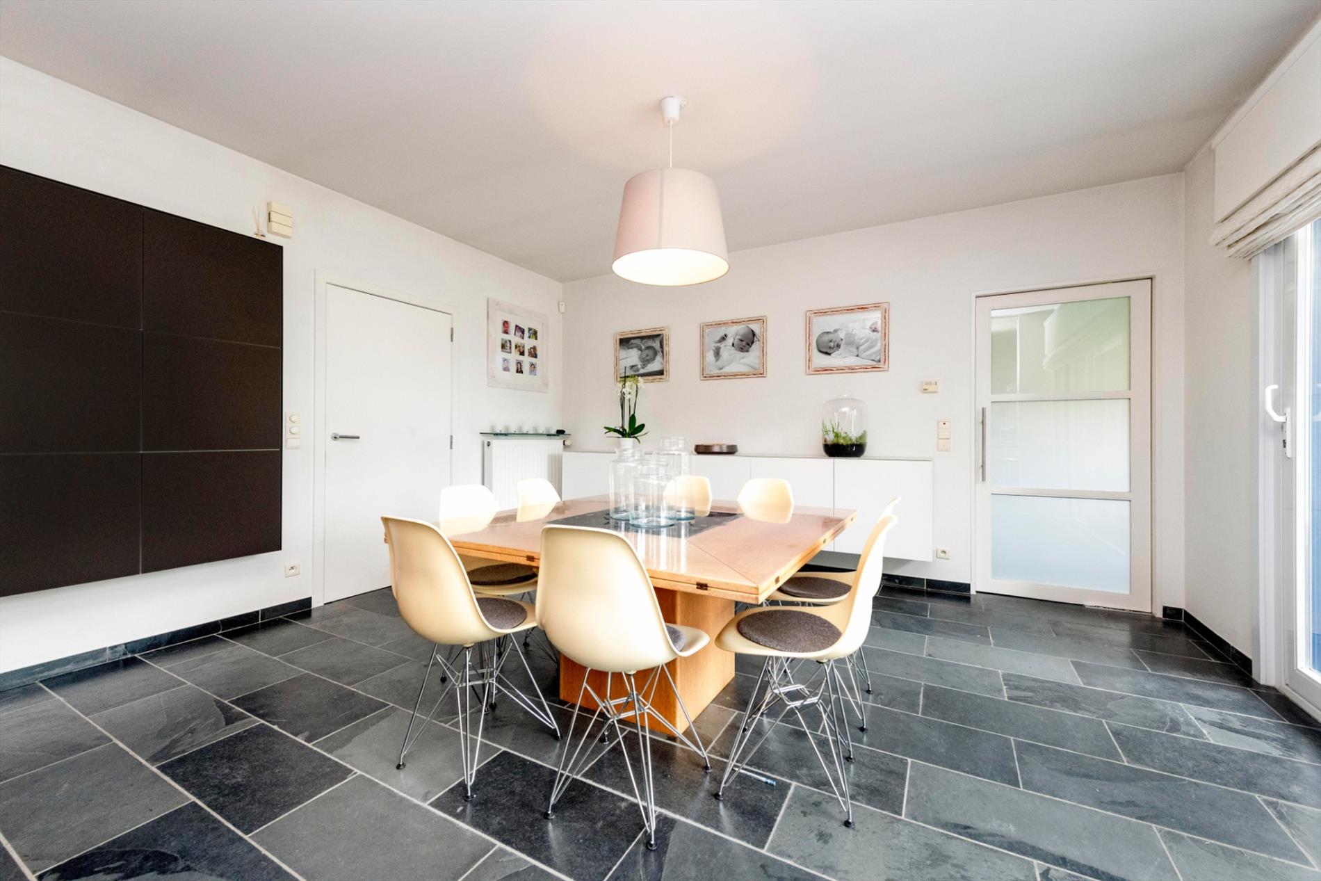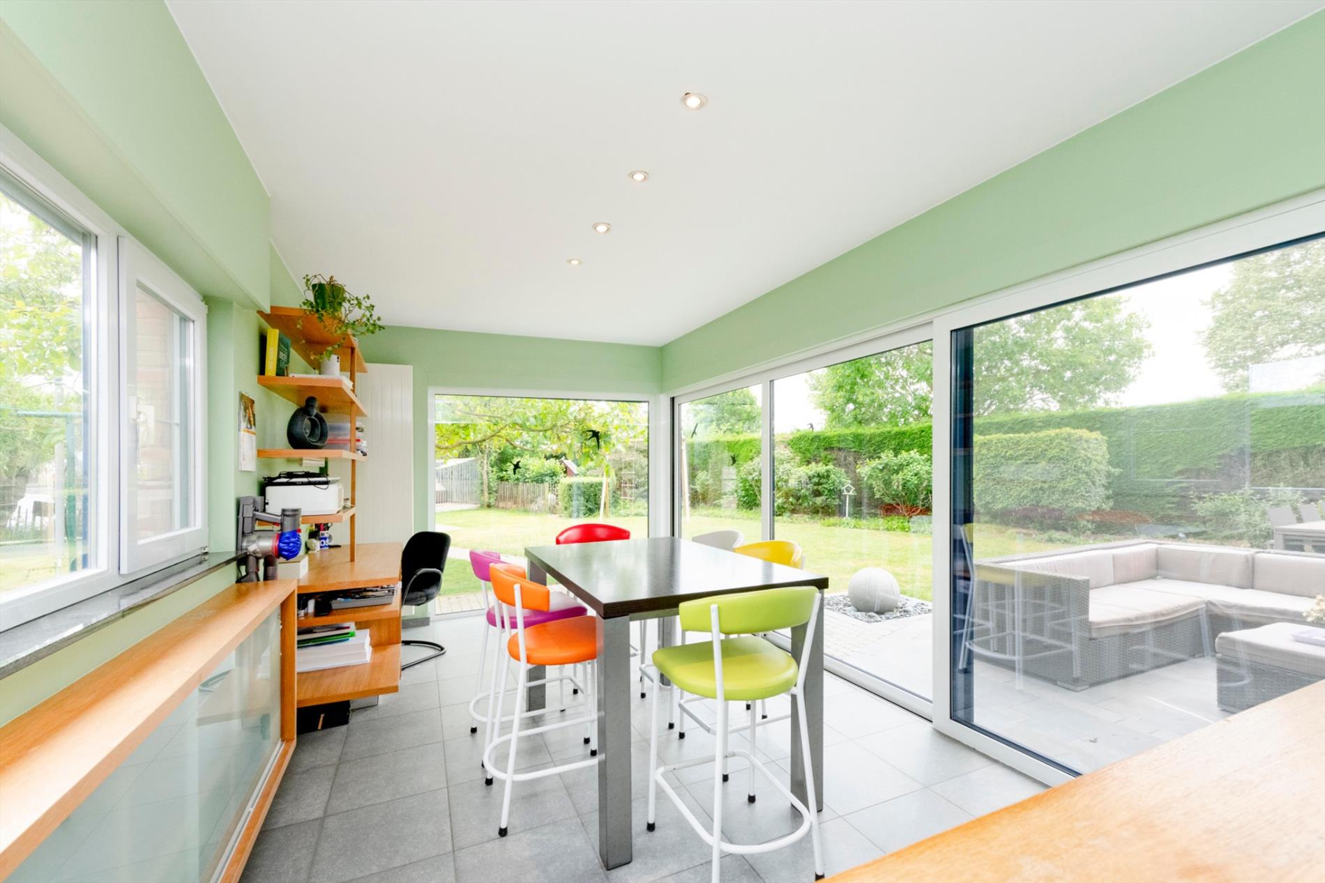 Aansluitend aan de keuken hebben we toegang tot de droge kelder, de achterinkom met vernieuwde doucheruimte alsook wasplaats, en de inpandige garage. Verder op het gelijkvloers is er een bureauruimte (9 m²).