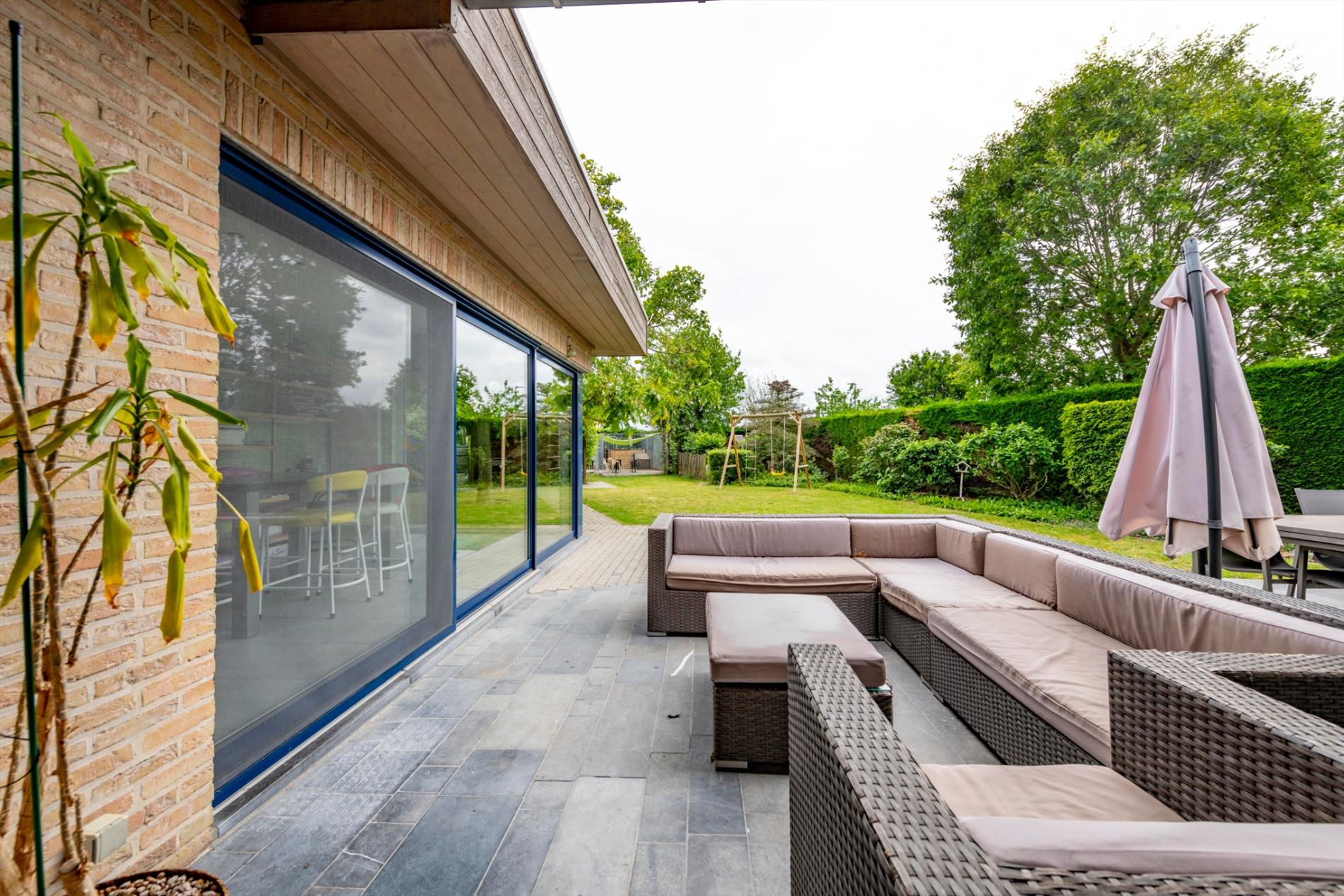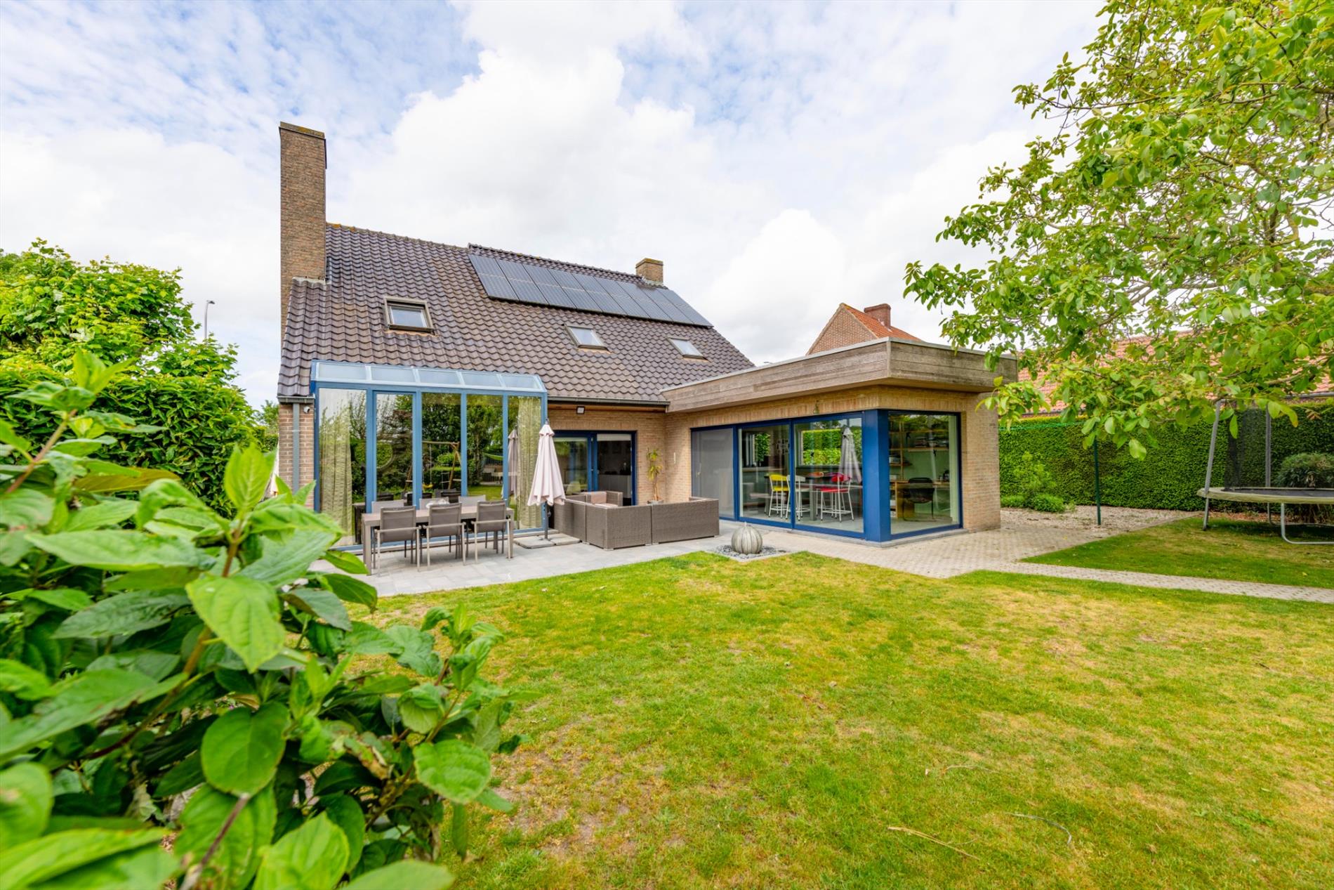 De eigendom is volledig afgesloten en ingevolge zeer kindvriendelijk. De zuidgerichte tuin beschikt over een zeer ruim terras in blauwsteen, een tuinhuis alsook 2 parkeerplaatsen (toegang via de achterliggende straat met een elektrische schuifpoort).