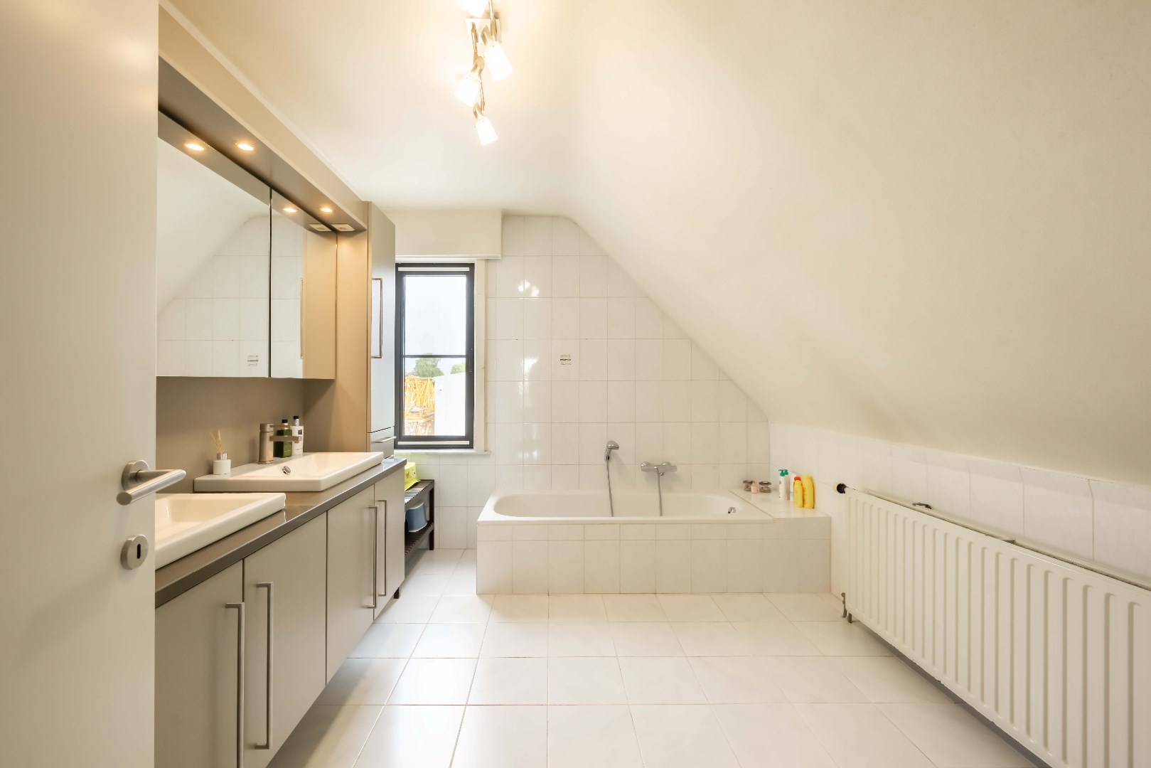 Het verdiep omvat een nachthall met ingemaakte kastenwand alsook 4 ruime slaapkamers alsook de ingerichte badkamer (ligbad, dubbele lavabo met meubel en toilet).