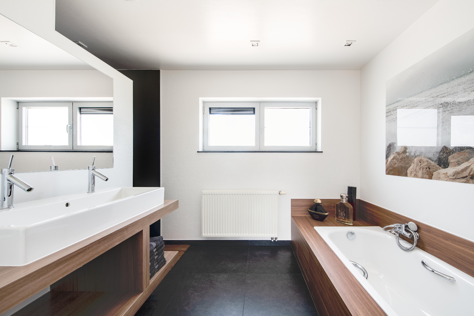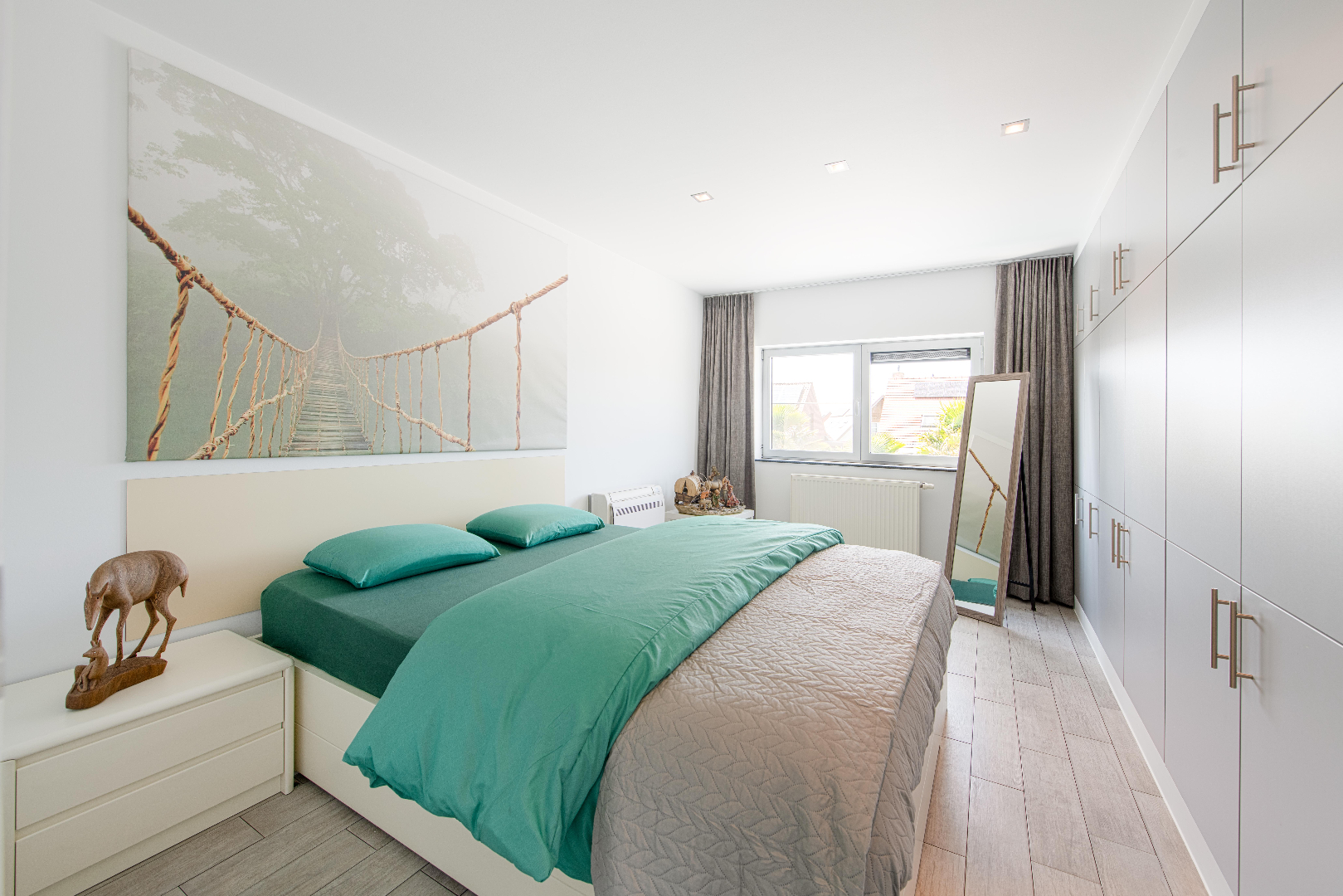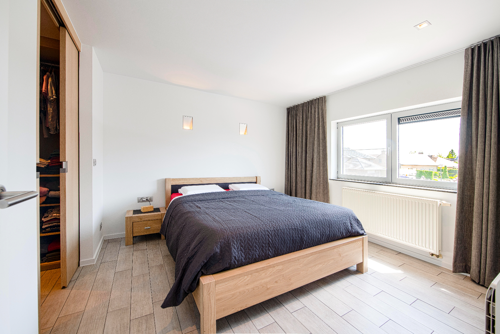Het verdiep omvat een apart toilet en luxueuze badkamer (ruim ligbad, dubbele lavabo met meubel en inloopdouche). Tevens beschikt U over 3 slaapkamer, met name 1 slaapkamer met ingemaakte kasten en lavabo met meubel (15,70 m²), 1 slaapkamer met ingemaakte kastenwand (11,20 m²) en de master bedroom van 12 m² met aansluitende dressingruimte van 7 m². En tot slot een bureauruimte van 5,30 m².