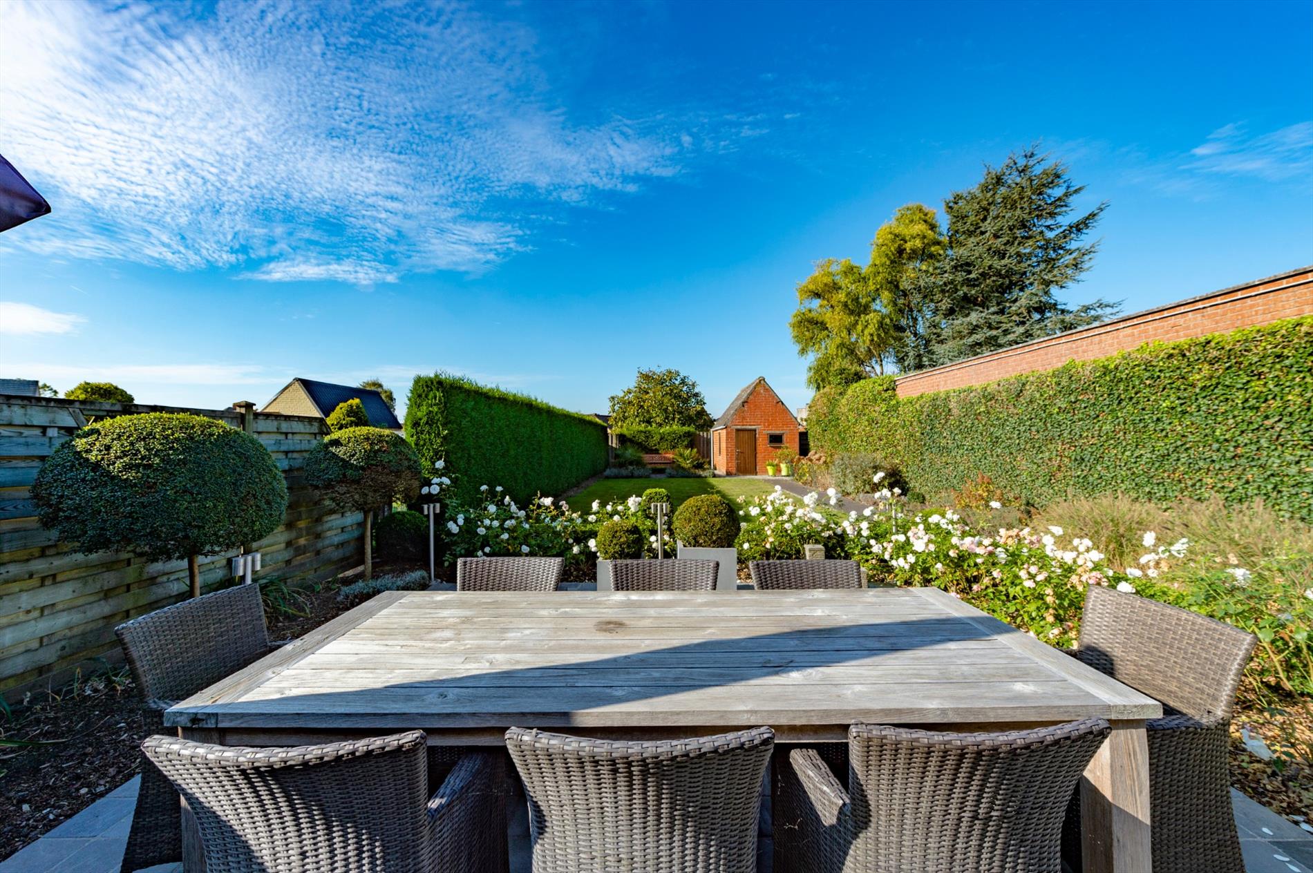 Tuin: U beschikt over een volledig aangelegde tuin. De voortuin is volledig vernieuwd alsook voorzien van een nieuwe oprit. De achtertuin gelegen in het westen is voorzien van een nieuw terras met wandelpad naar het tuinhuis en is tevens volledig afgesloten en ingevolge zeer kindvriendelijk!