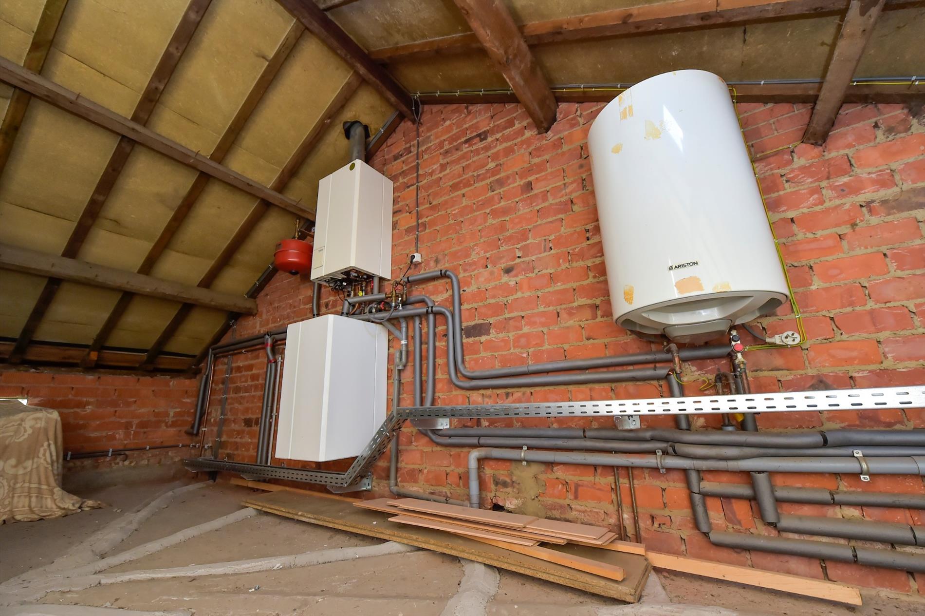 Zolder: Tot slot is er nog een bergzolder boven de woning die te bereiken is via een uitschuiftrap alsook een zolder boven de garage waarin alle NIEUWE LEIDINGEN EN TEVENS HOOGRENDEMENTSKETEL GEÏNSTALLEERD ZIJN.