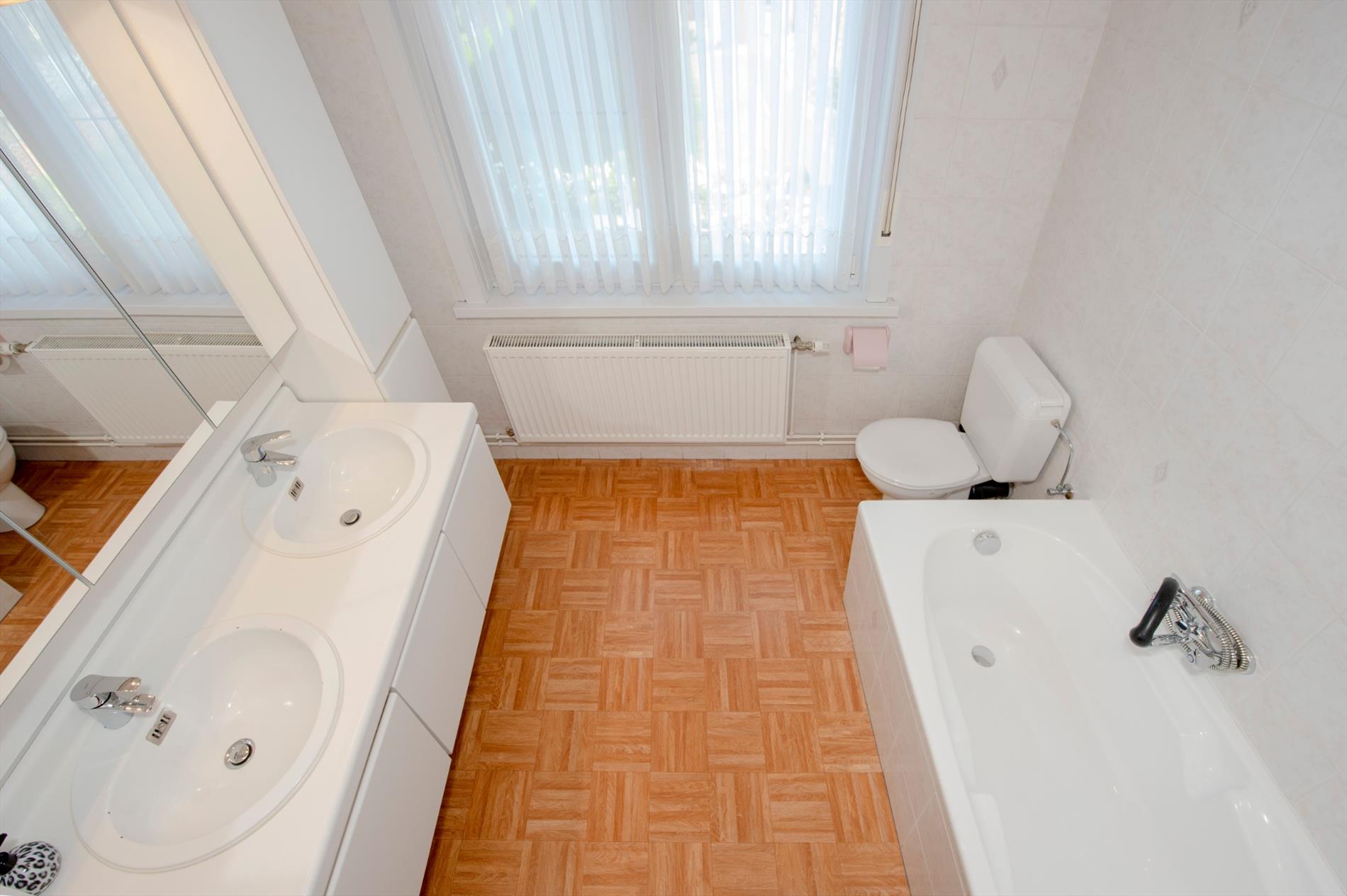 Verdiep: Het verdiep beschikt over een ruime nachthall met berging. Tevens zijn er twee ruime slaapkamers (twee persoons) alsook een badkamer met dubbele lavabo met meubilair, toilet en ligbad.