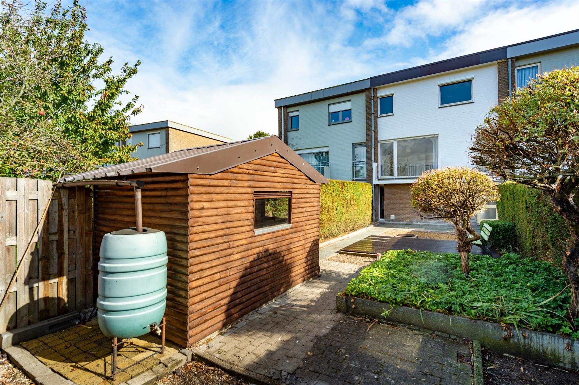 De achtertuin is voorzien van een tuinberging, terras.