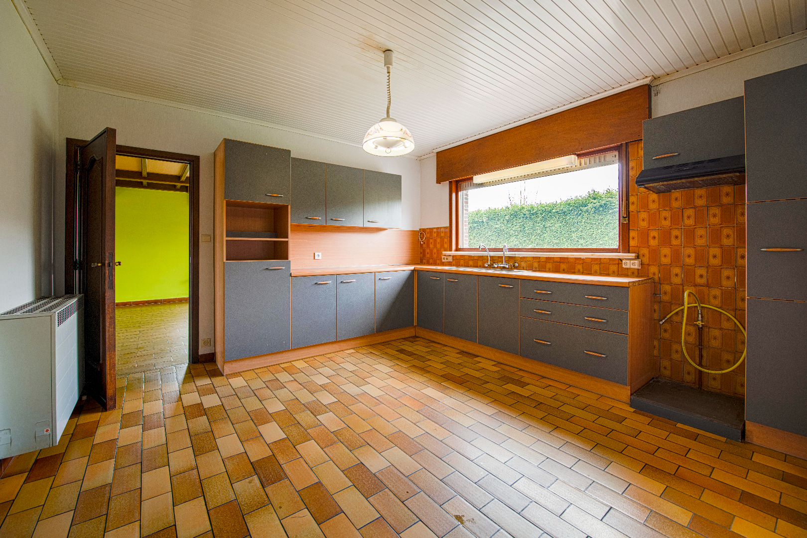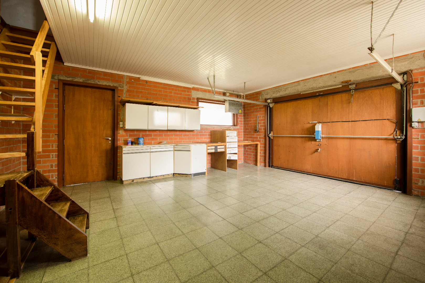 U komt de woning binnen via de ruime inkomhal (ruimte voldoende om vaste trap naar eerste verdiep te plaatsen) deze biedt U toegang tot de woonkamer van maar liefst 47 m² met zowel eet- als zithoek. Vervolgens komt U terecht in de keuken (16 m²) voorzien van spoelbak | frigo | dampkap. Handig is aansluitend de ruime droge kelder van 15 m². De achterinkom beschikt over een apart toilet, ruimte voor wasmachine en droogkast. Vervolgens komt u terecht in de nachthal deze biedt toegang tot 2 slaapkamers (10 m² | 15,5 m²) alsook de badkamer (toilet | ligbad | dubbele lavabo). Als laatste is er de ruime garage 37 m² (geautomatiseerde poort) met een vaste trap naar de zolderverdieping. Deze omvat 2 slaapkamers alsook een polyvalente ruimte die U nog naar believe kan inrichten.