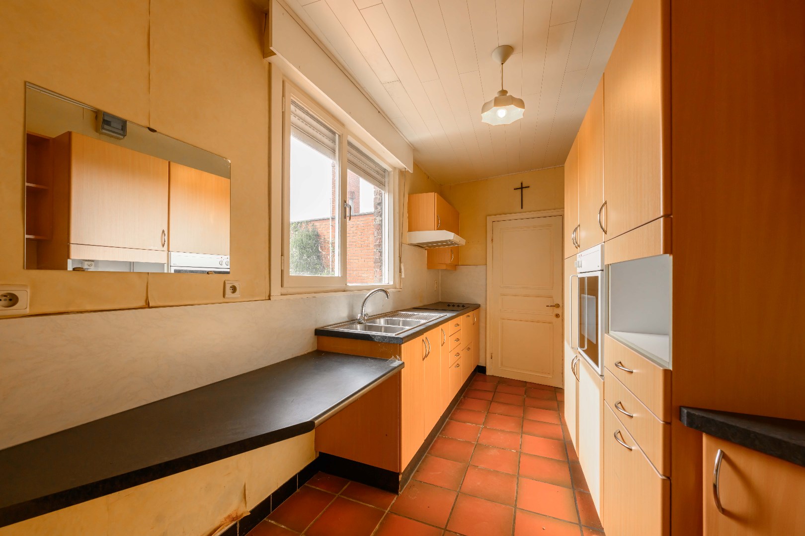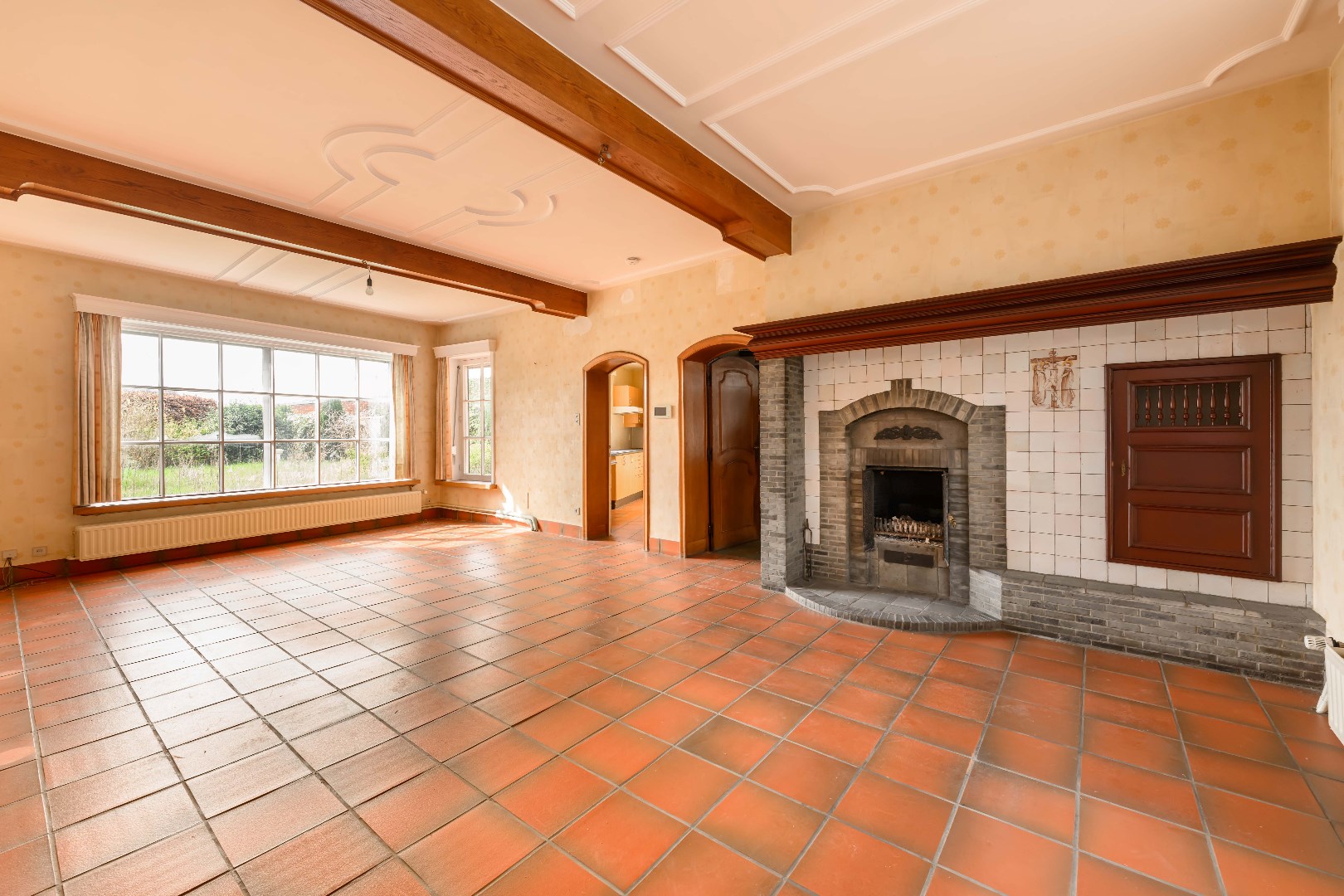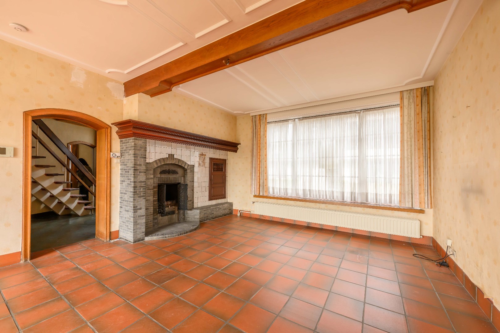 U komt de woning binnen in de statige inkomhall met rechts een bureauruimte/gelijkvloerse slaapkamer en links de authentieke zitruimte/eetkamer met authentieke schouw. Aansluitend is er de gesloten ingerichte keuken met directe toegang tot de tuin.