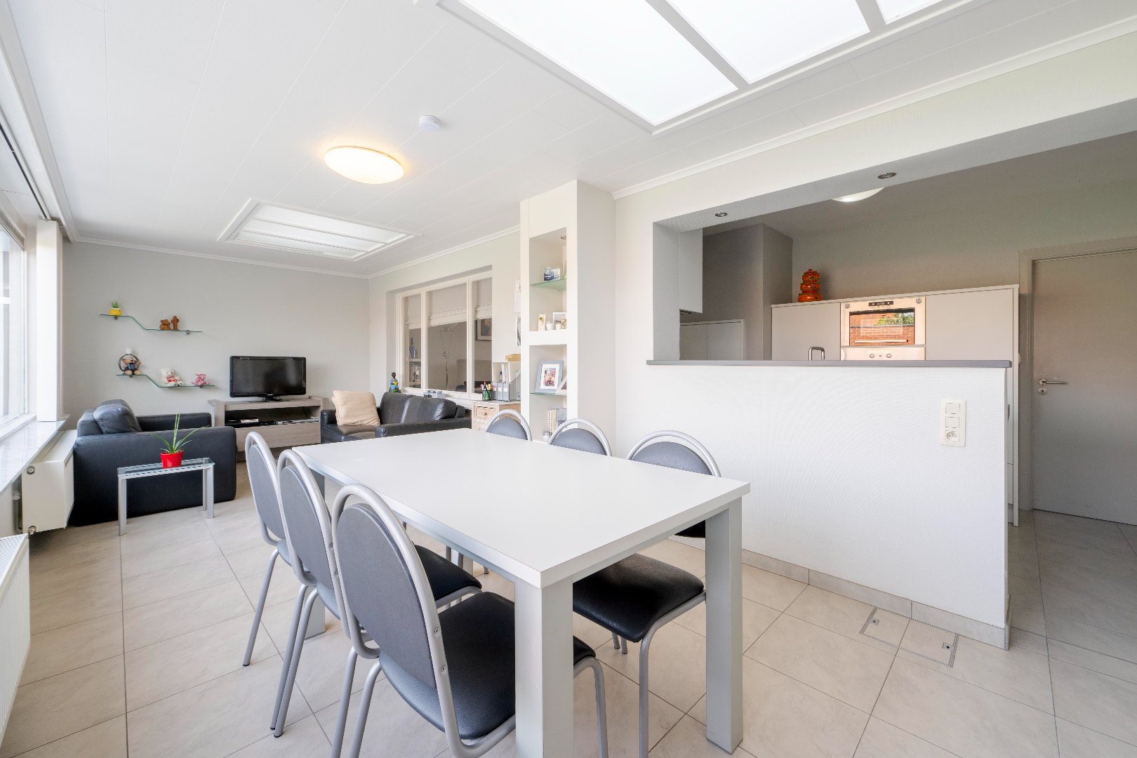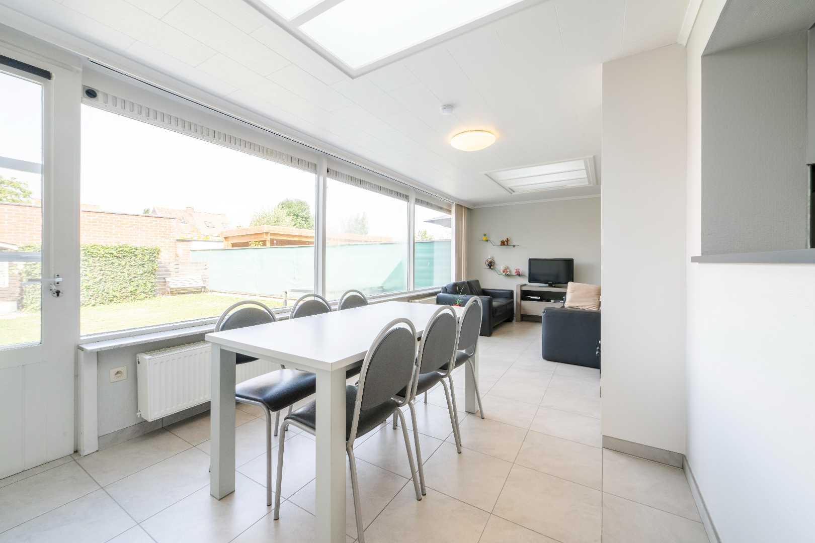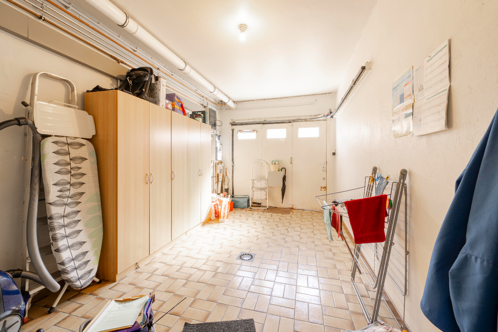 Deze ruimte biedt directe toegang tot de tuin. Op het gelijkvloers is ook nog een inpandige garage aanwezig alsook berging.