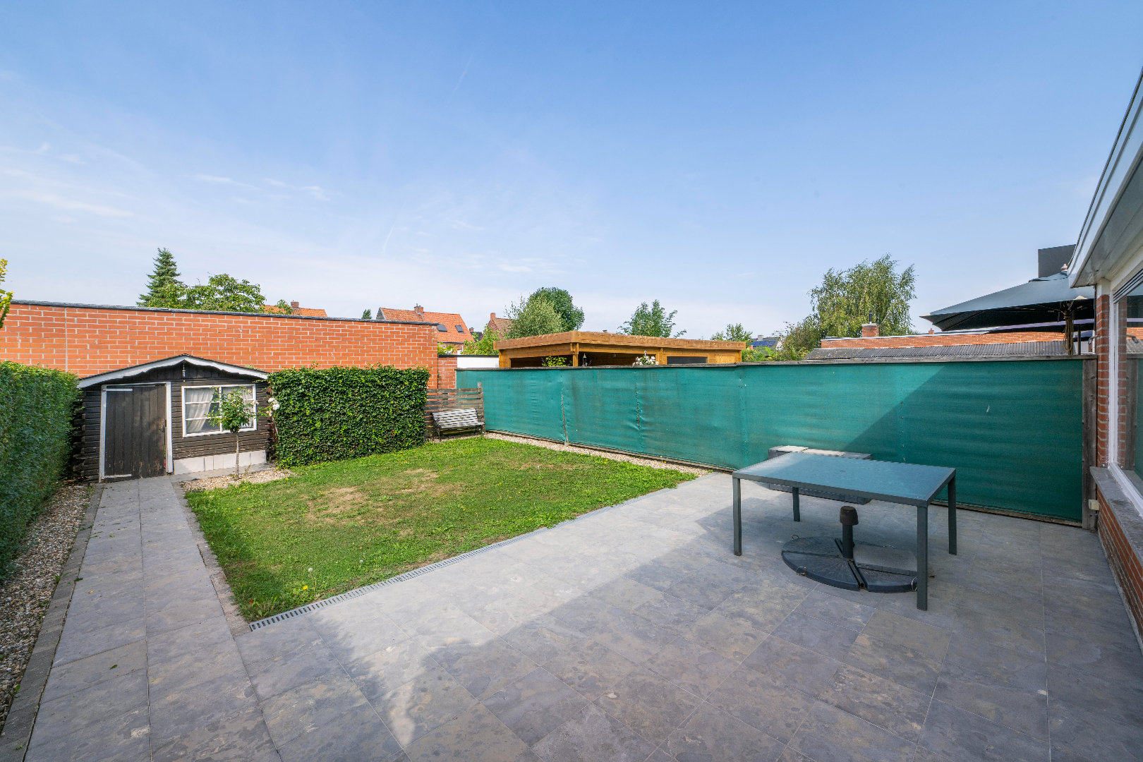 De woning is voorzien van een zonnige stadstuin 100 m² met een gezellig terras verniuewd terras in bauwsteen. Verder is de tuin volledig afgesloten in ingevolge kindvriendelijk en is er een tuinberging aanwezig.