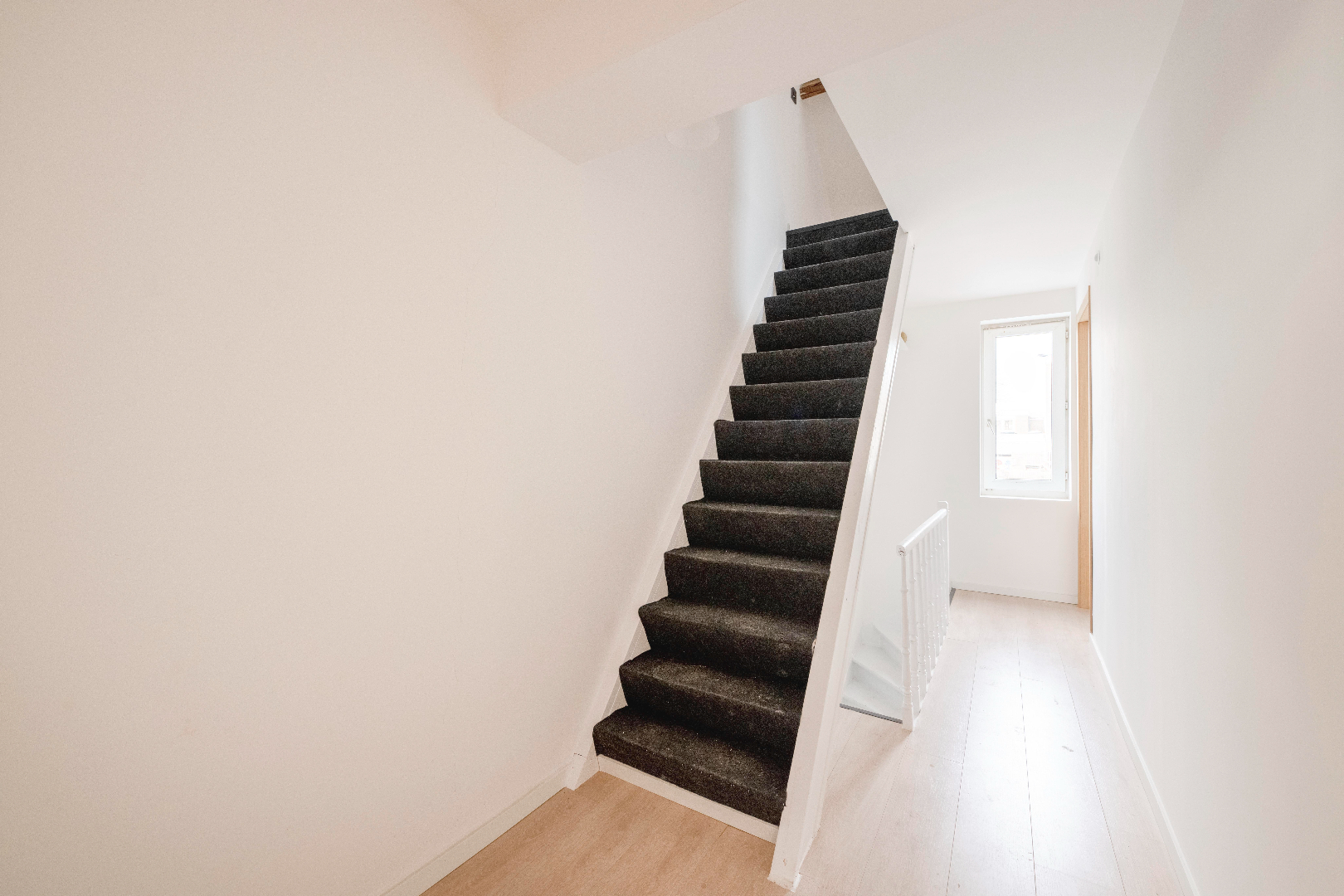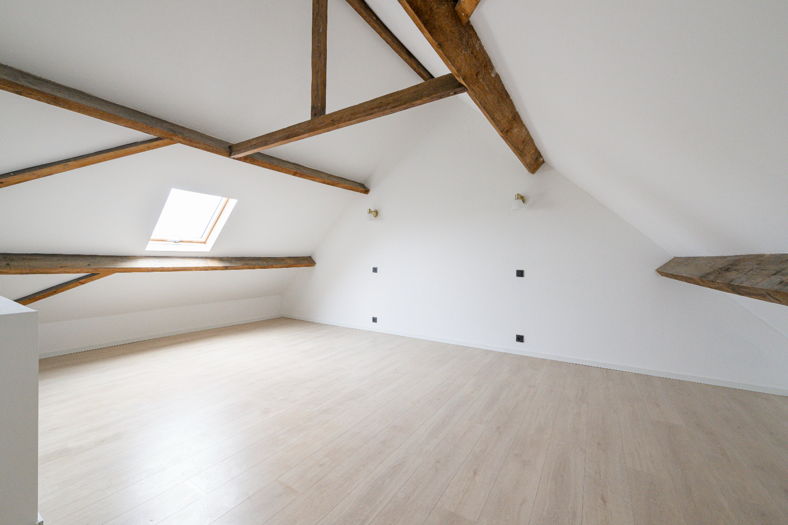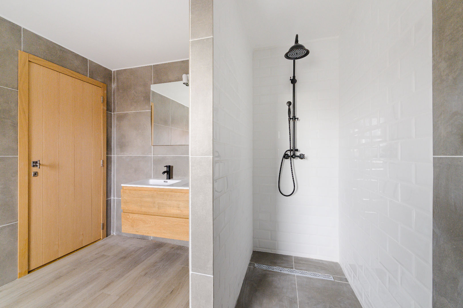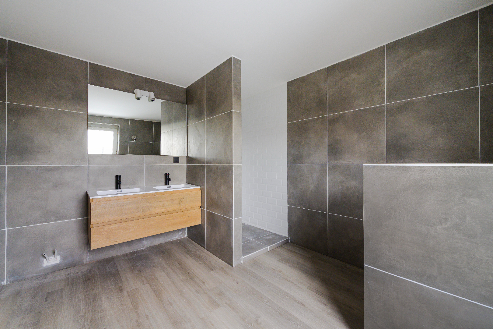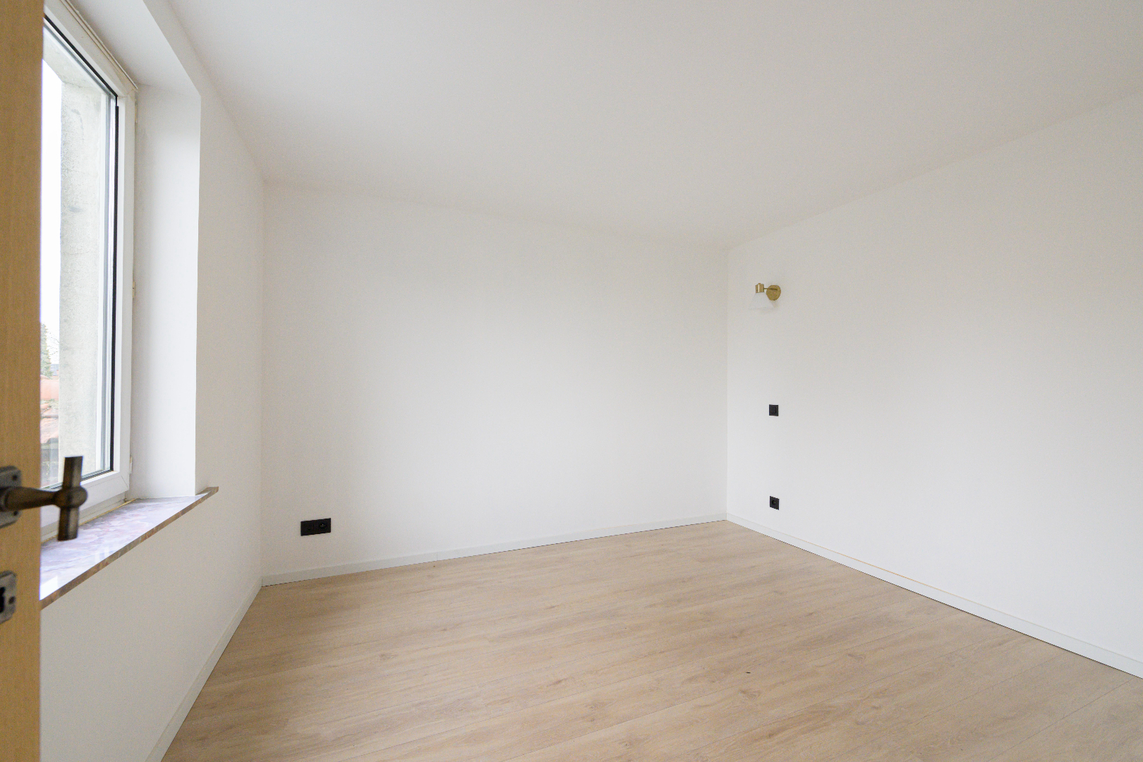 Het eerste verdiep omvat de badkamer (toilet | dubbele lavabo met meubel | inloopdouche en aansluitingen wasmachine en droogkast) en twee kamers (7 m² en 11 m²) waarbij de kleinste gebruikt kan worden als dressing of bureel. Tot slot op het tweede bevind zich op de tweede verdieping de master bedroom (28 m²).