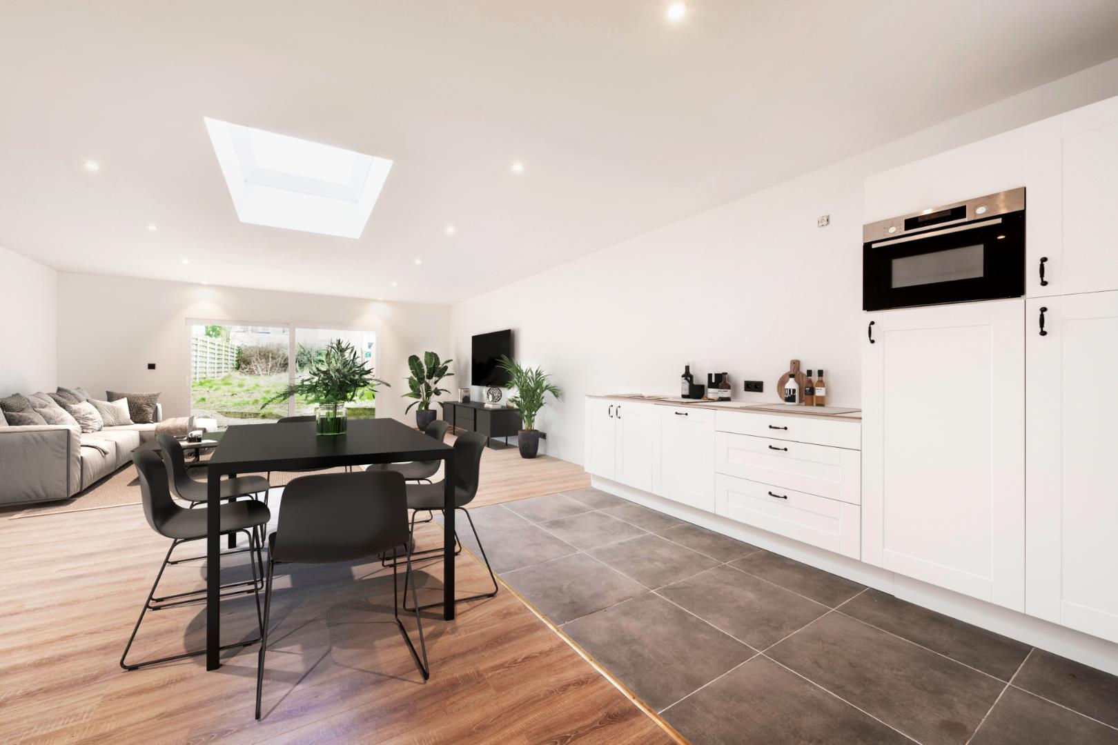 U komt de woning binnen met aan de rechter kant de eerste slaapkamer/bureauruimte. Verder is er de polyvalente ruimte met aansluitend de lichtrijke leefruimte (45 m²) met open en volledig ingerichte keuken (kookplaat | dampkap | oven | spoelbak | frigo) door de raampartijen is er zowel prachtige lichtinval alsook directe toegang tot de tuin. Verder is er nog een apart gastentoilet.