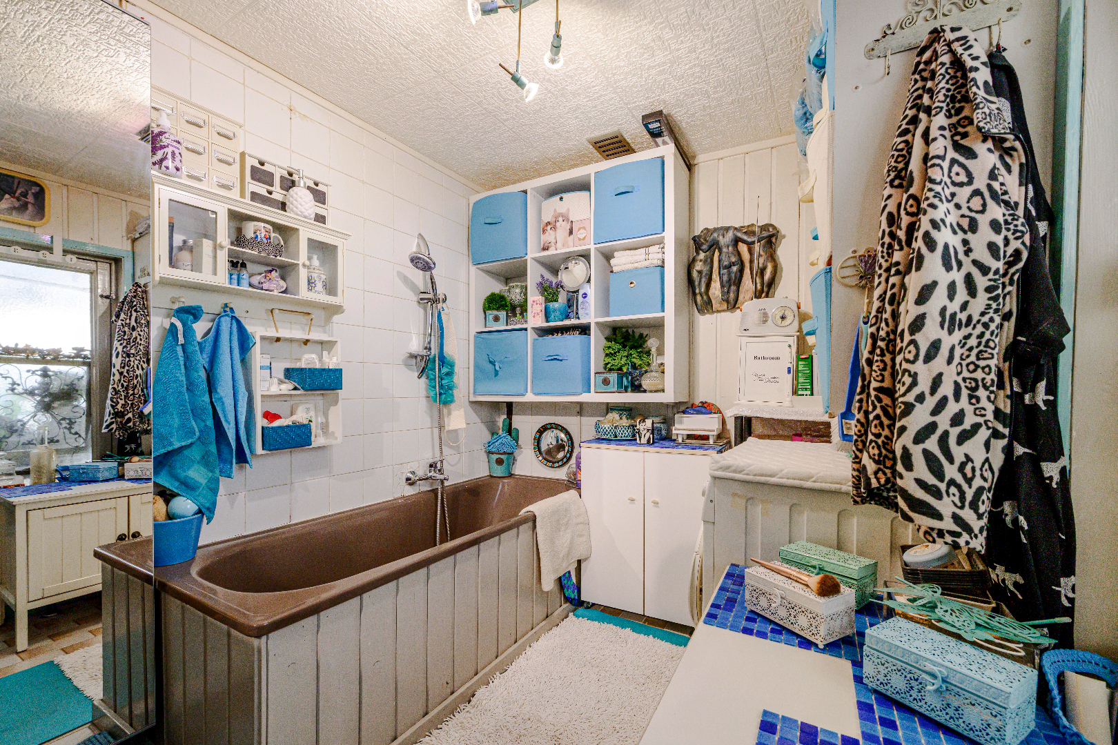 Er is tevens een praktische kelder berging (12 m²). Vervolgens komt U terecht in de gesloten keuken 7,50 m², een apart toilet, een achterinkom/bijkeuken en badkamer (ligbad/dubbele lavabo).