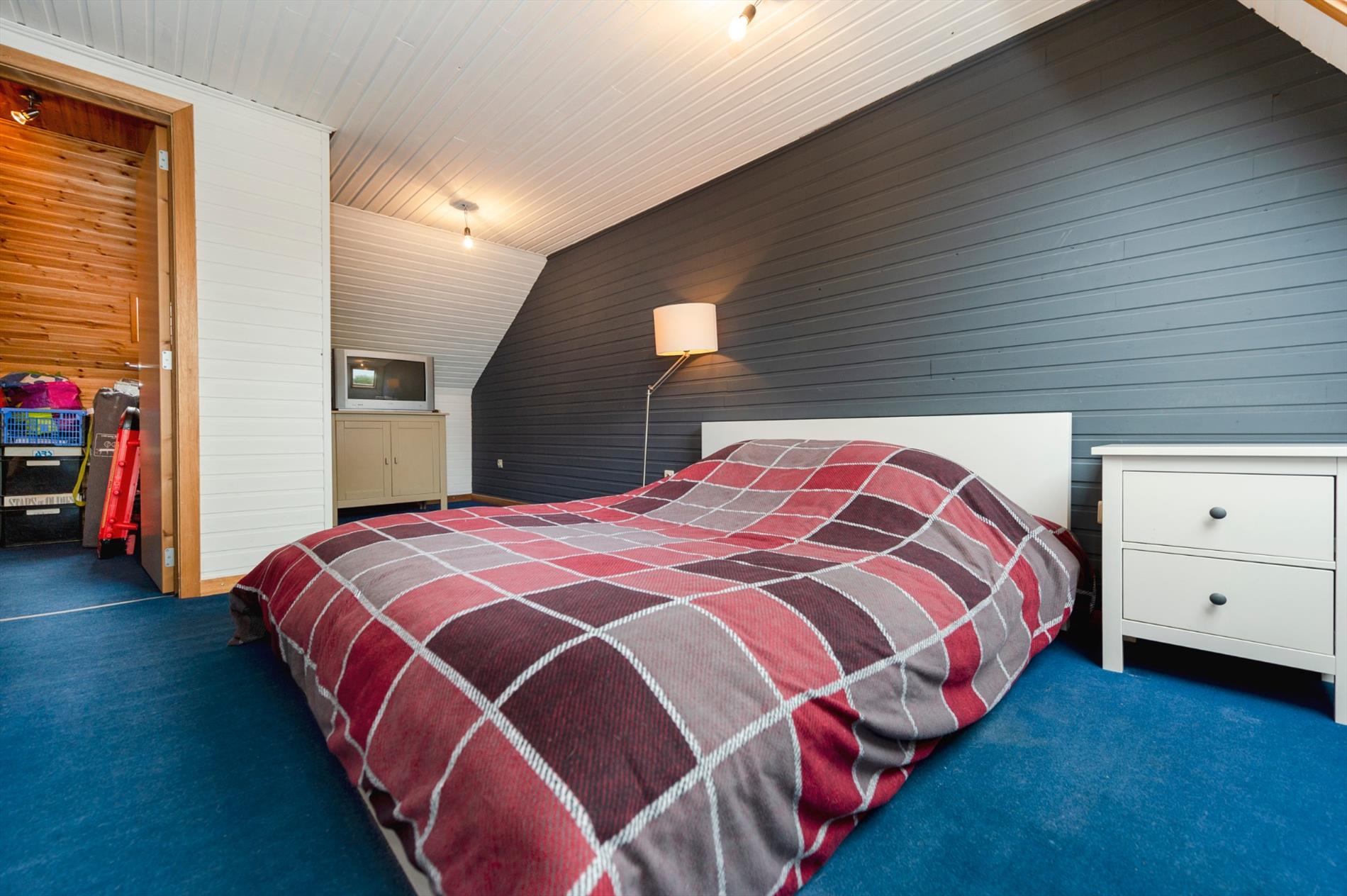Aansluitend is een ruime berging met sanitaire voorziening (douche met lavabo) alsook aansluiting voor wasmachine en droogkast.