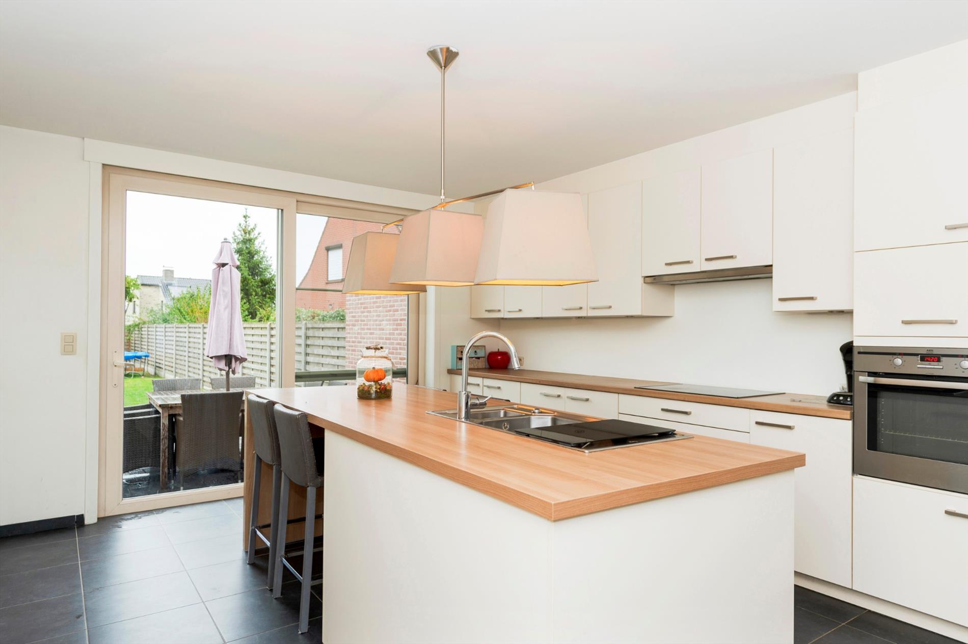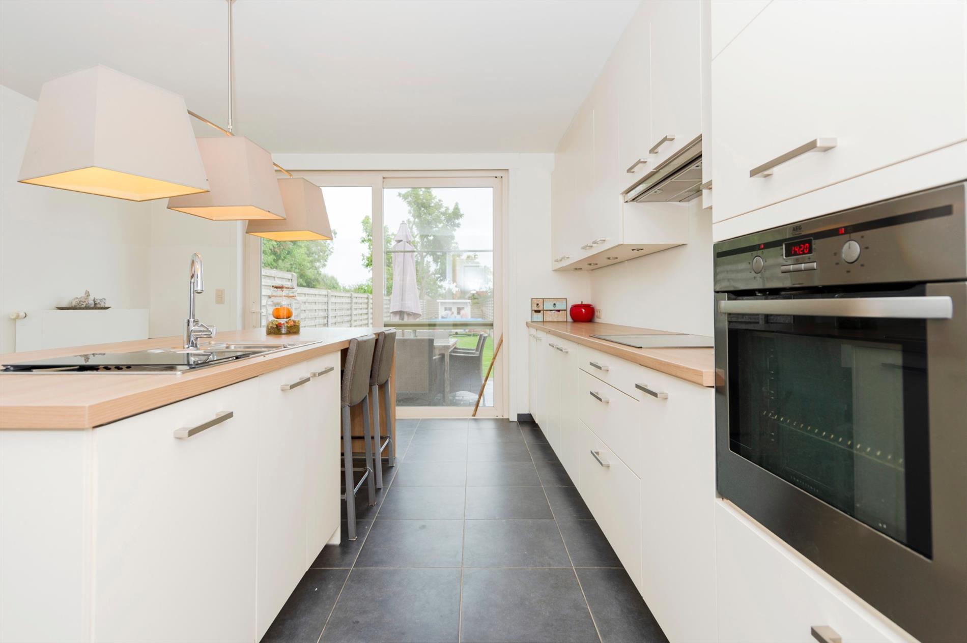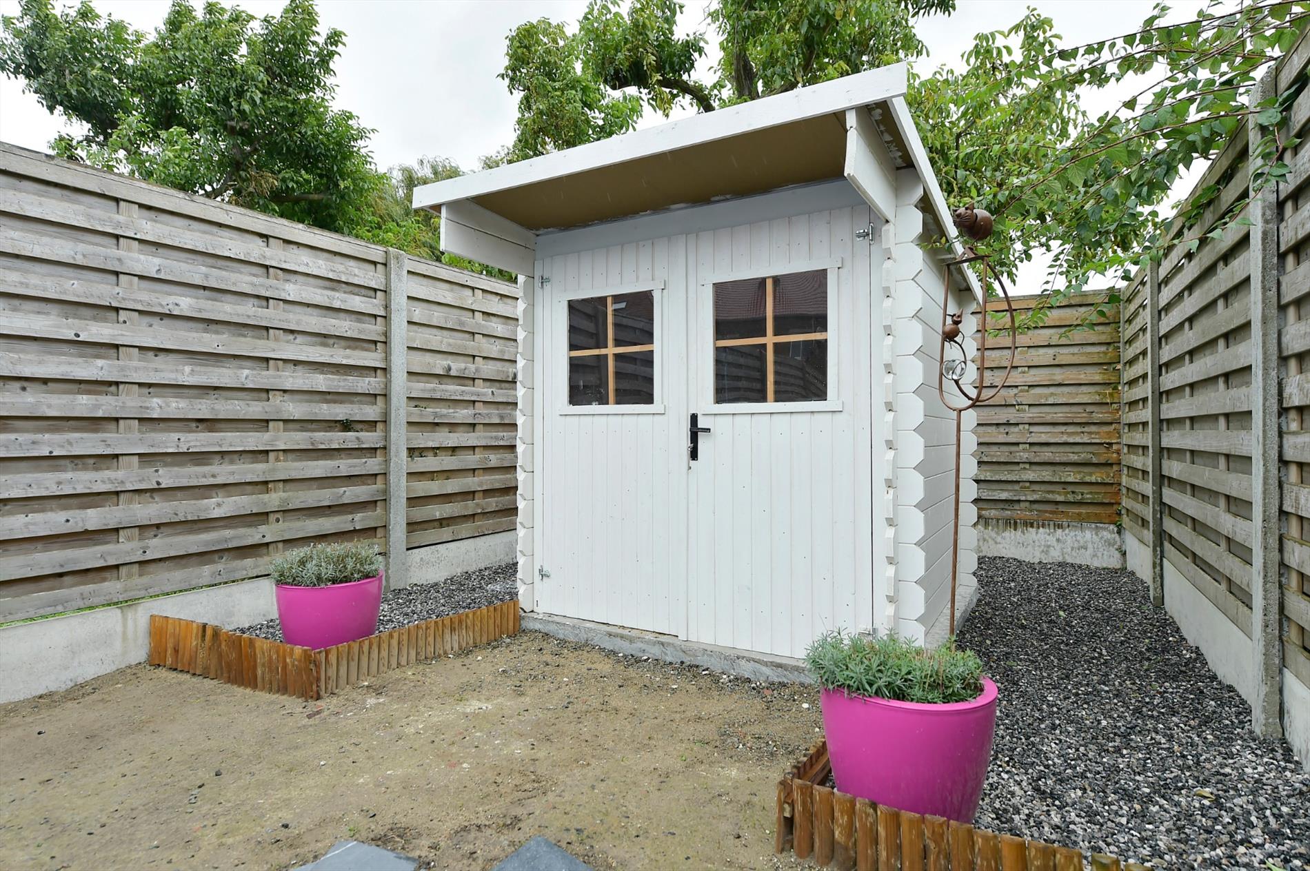 Tuin: achteraan de woning vinden we de onderhoudsvriendelijke tuin met aangelegd terras en die volledig omheind is, wat zorgt dat alles zeer veilig is voor kinderen. Tevens is er nog een extra bergruimte.