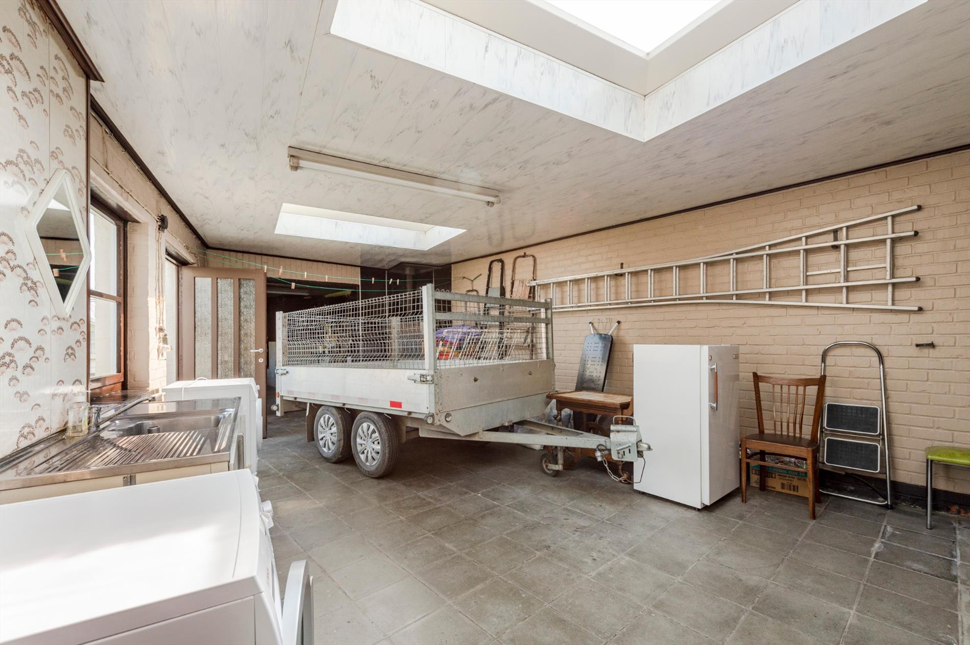 Vanuit de woning is er ook directe toegang tot de ruime garage met voorziening voor wasmachine en droogkast met rechtstreekse toegang tot de tuin en de werkplaats die voorzien is van een afzonderlijk toilet.