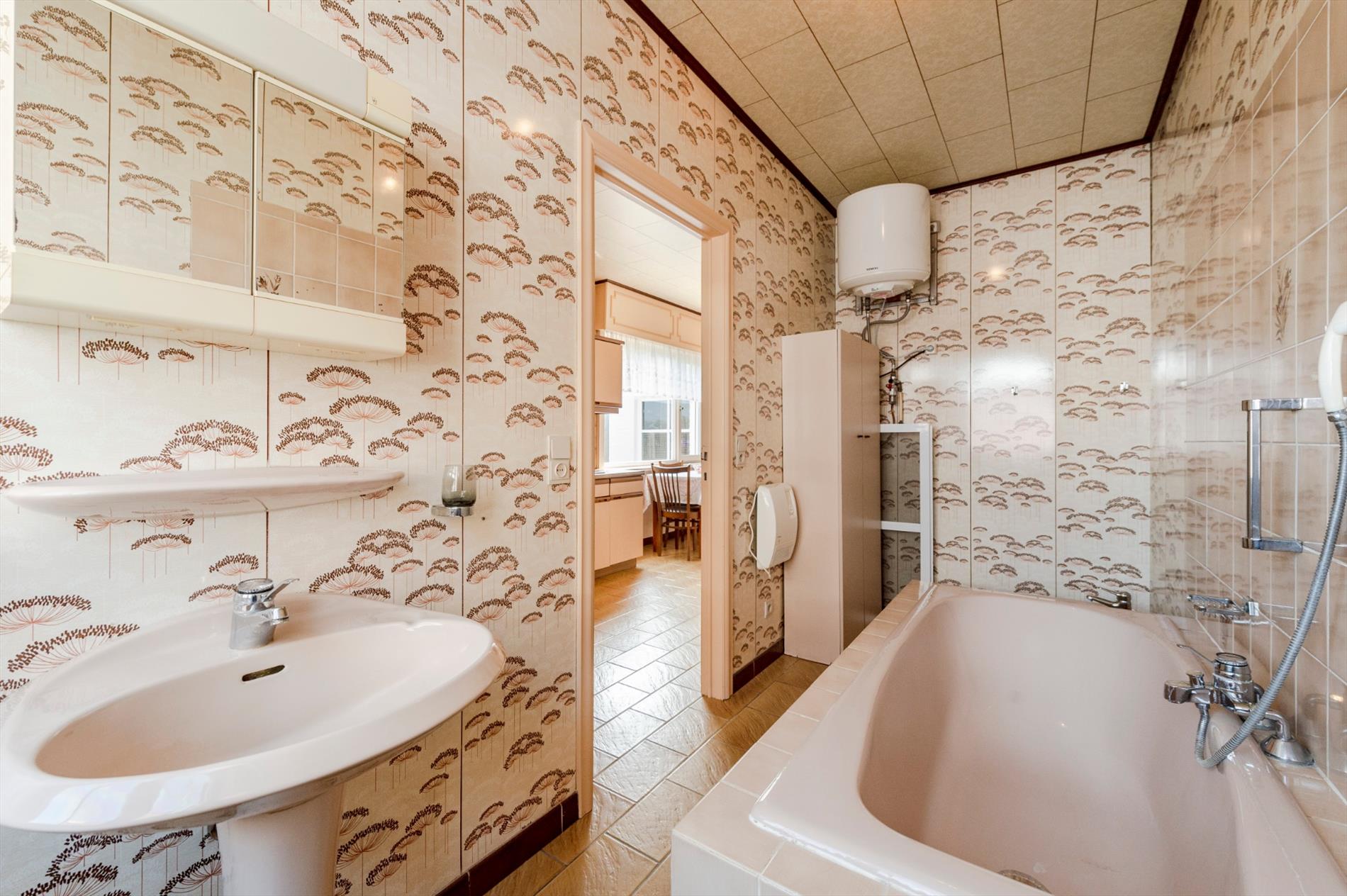 Vanuit de keuken is er ook toegang tot bergruimte alsook tot de badkamer met toilet, bidet, ligbad en lavabo. Tevens is op het gelijkvloers een ruime slaapkamer aanwezig.