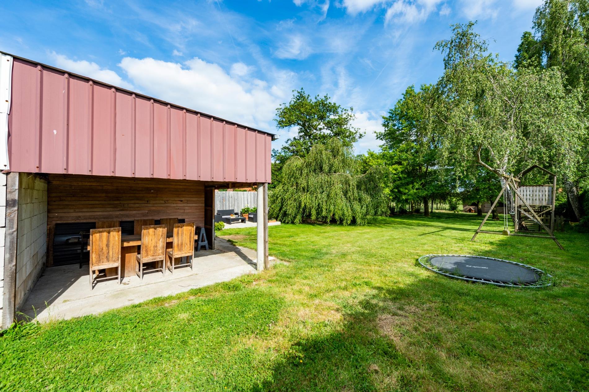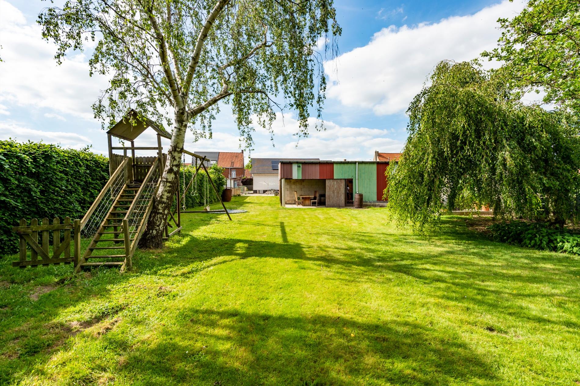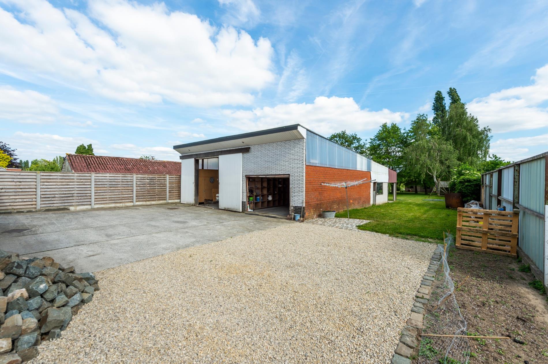 Het bijgebouw heeft een oppervlakte van 115 m² en is voorzien van elektriciteit en water. Inpandig is een garage met kantelpoort.