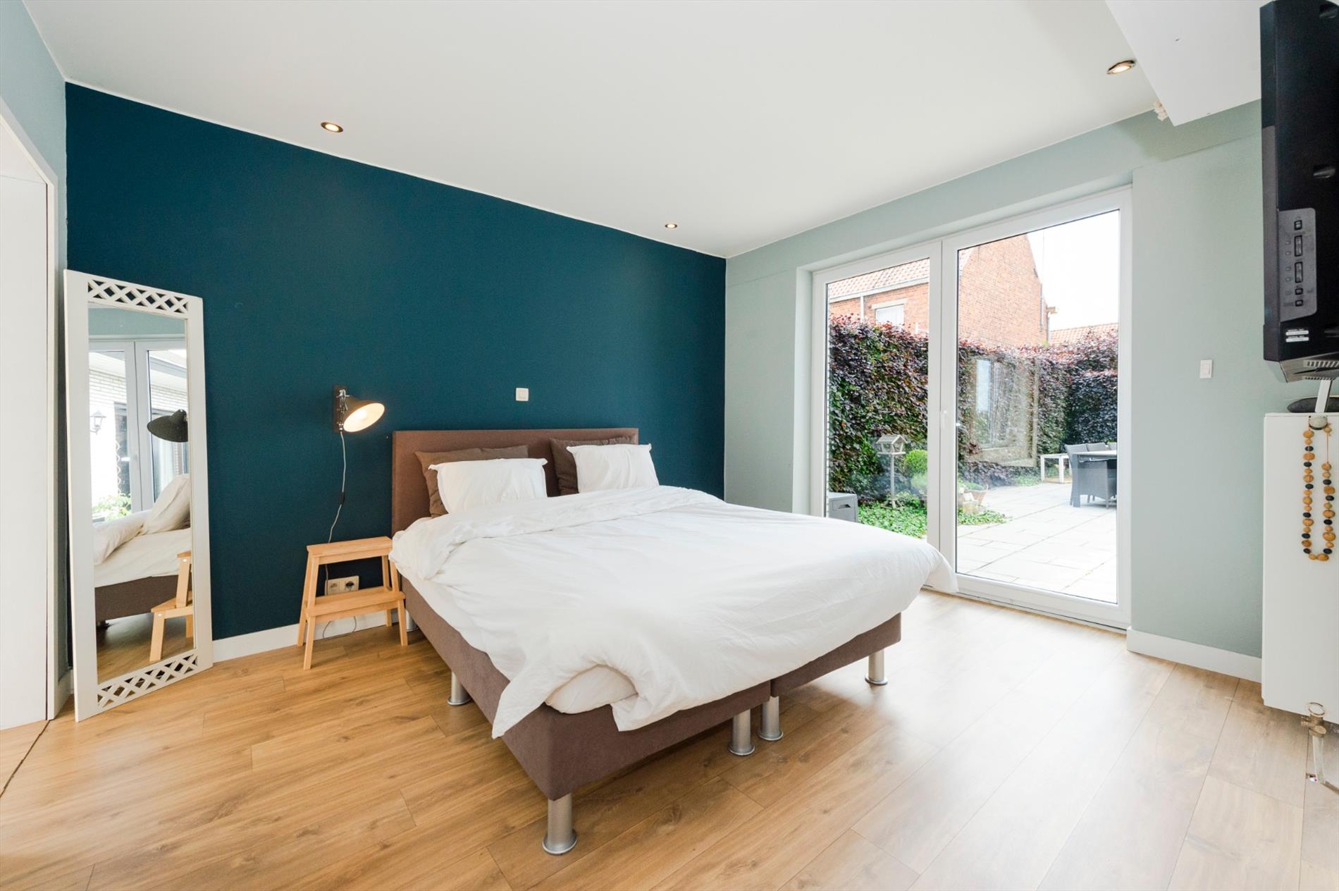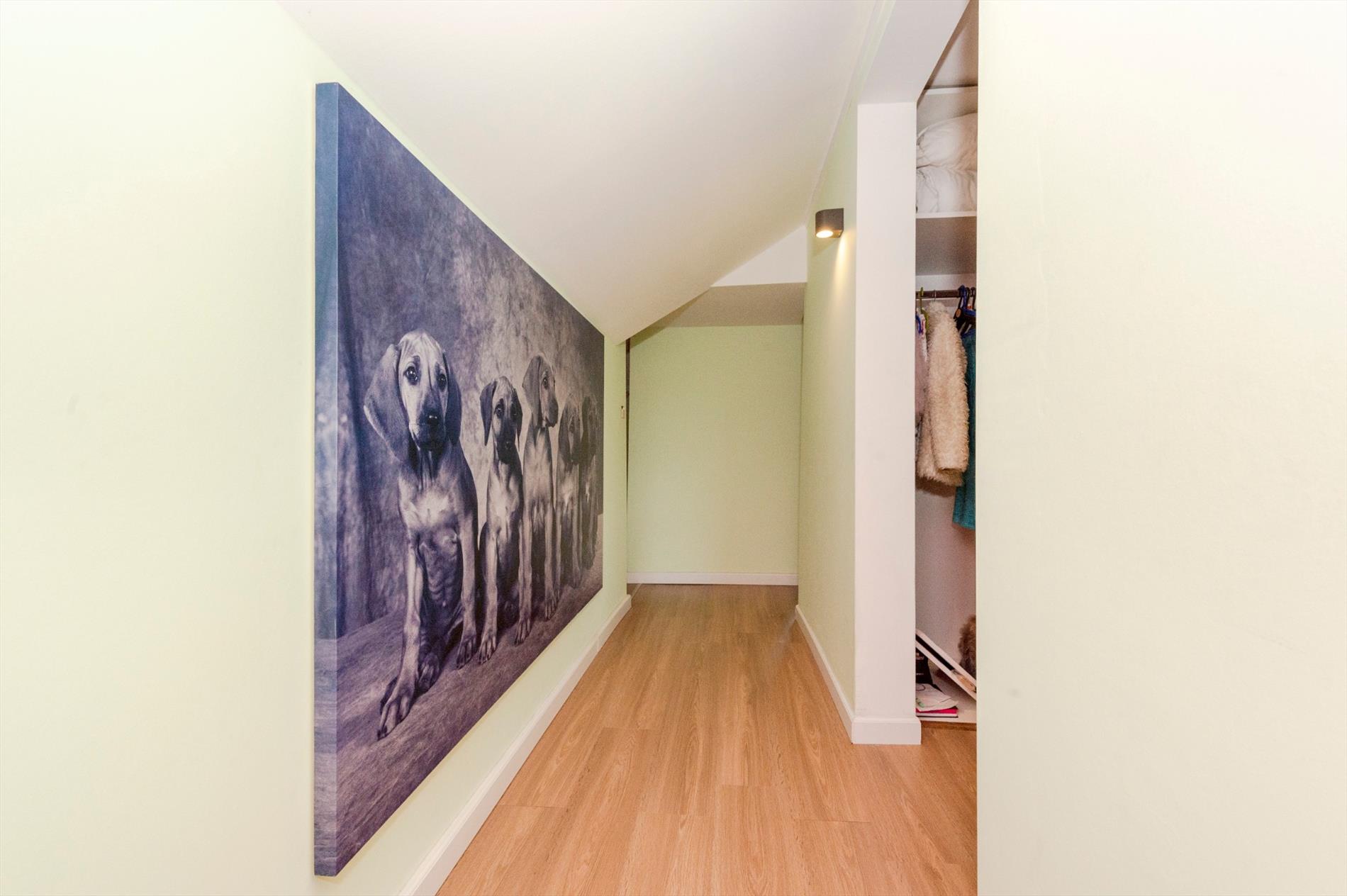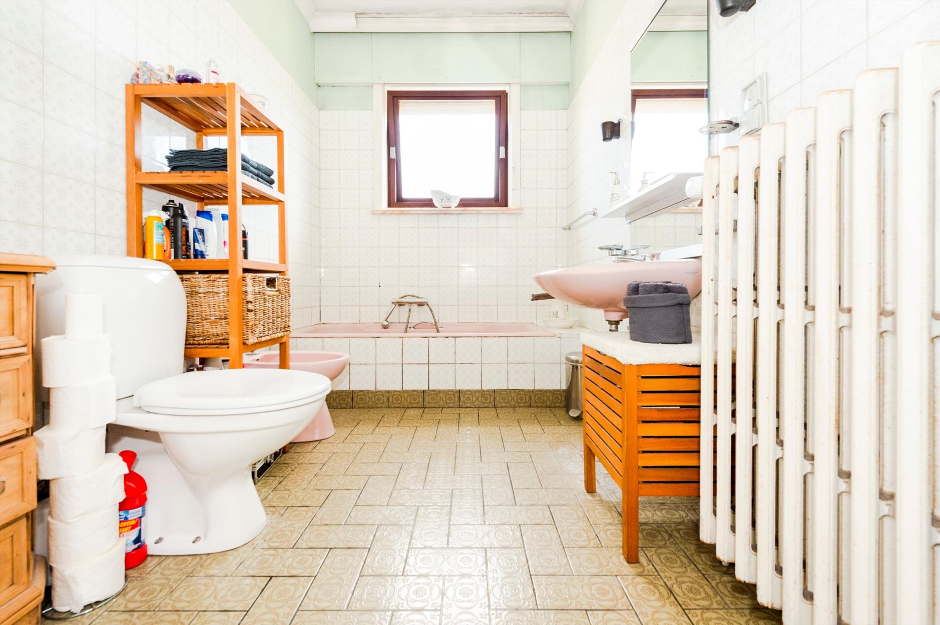 Via de achterinkom met ingemaakte kasten hebt U toegang tot de wasruimte, 2 zeer ruime slaapkamers, een dressingruimte alsook de te renoveren badkamer. Het verdiep omvat een nachthall met tevens 2 ruime slaapkamers en een dressingruimte. Dit verdiep is recent volledig vernieuwd.