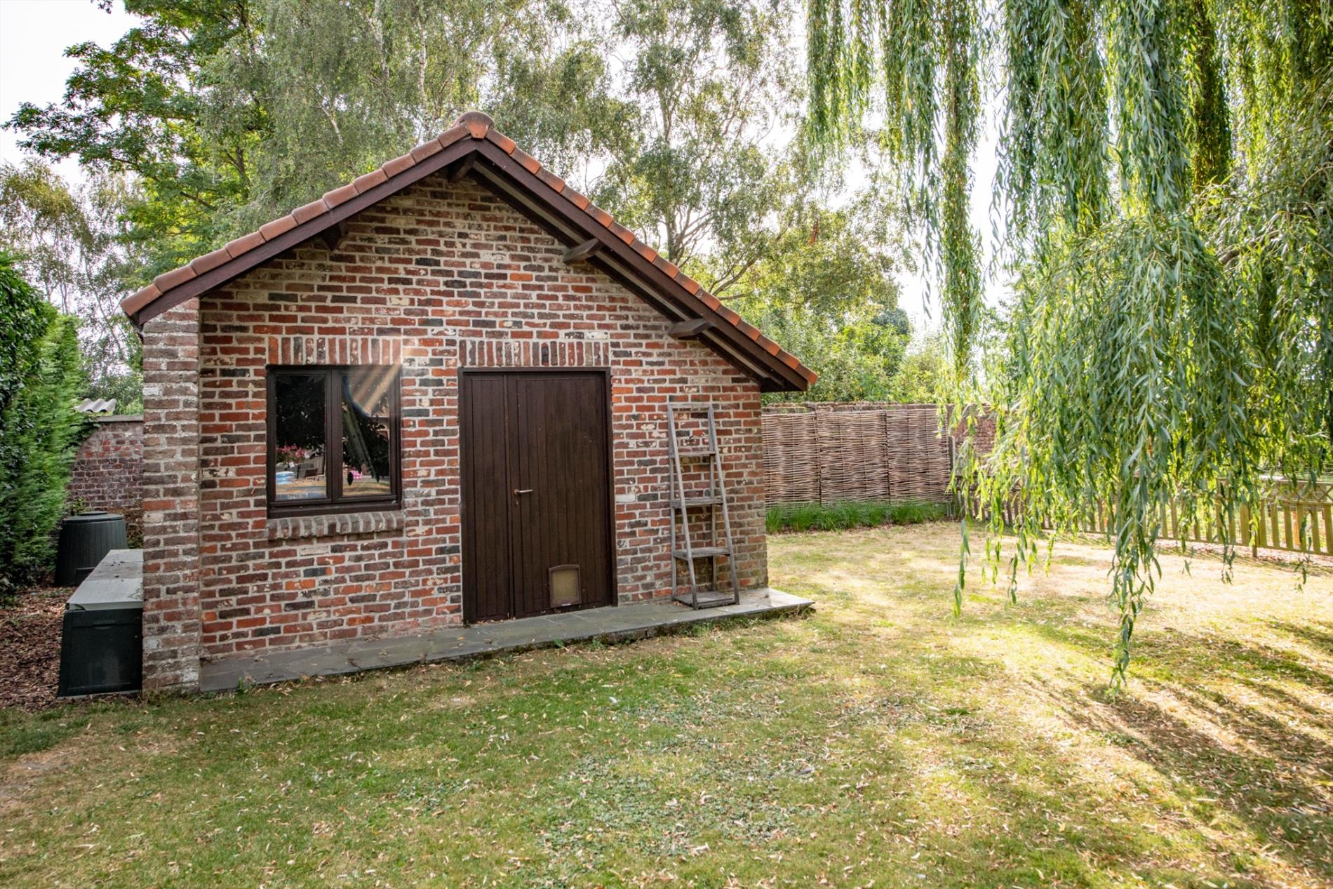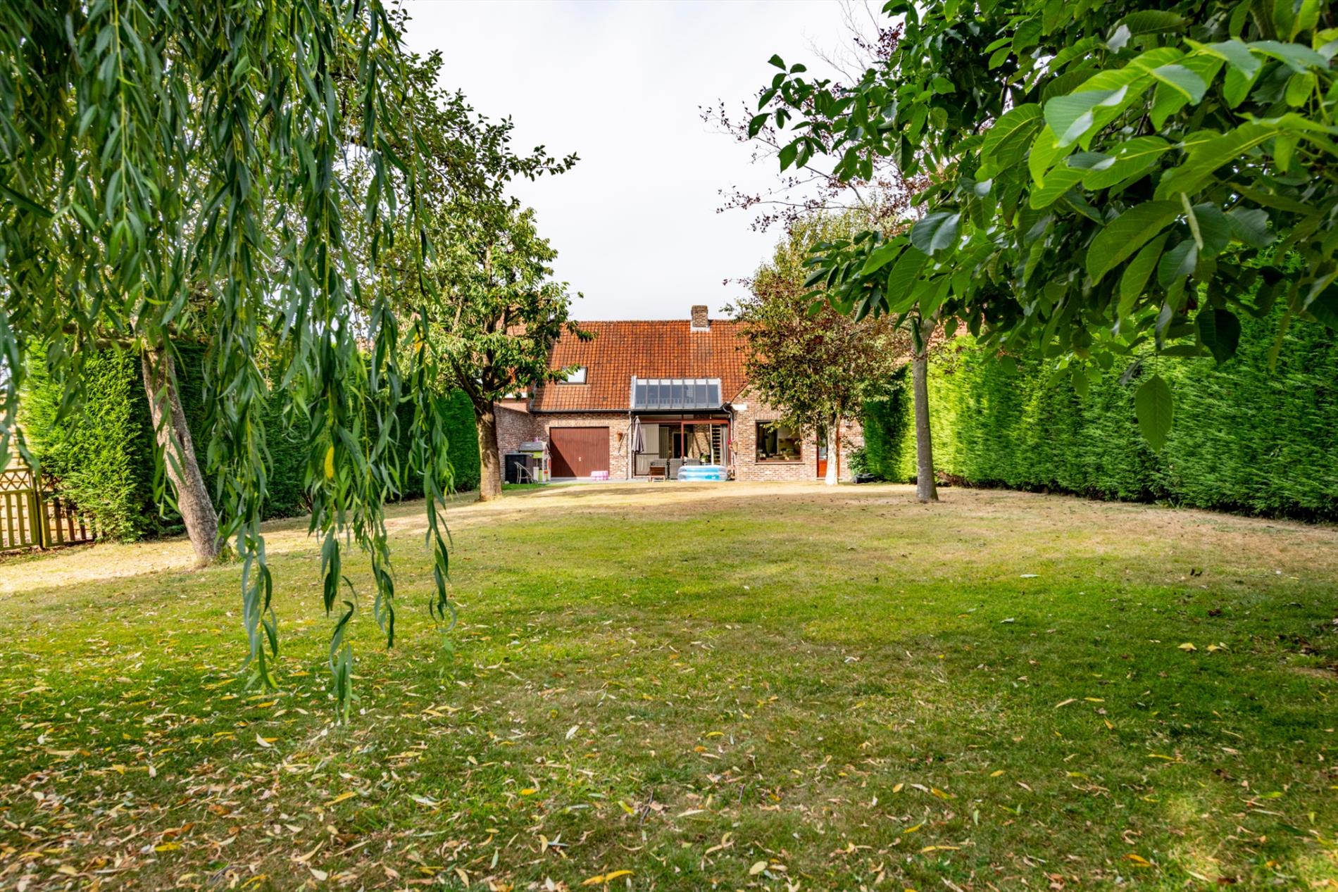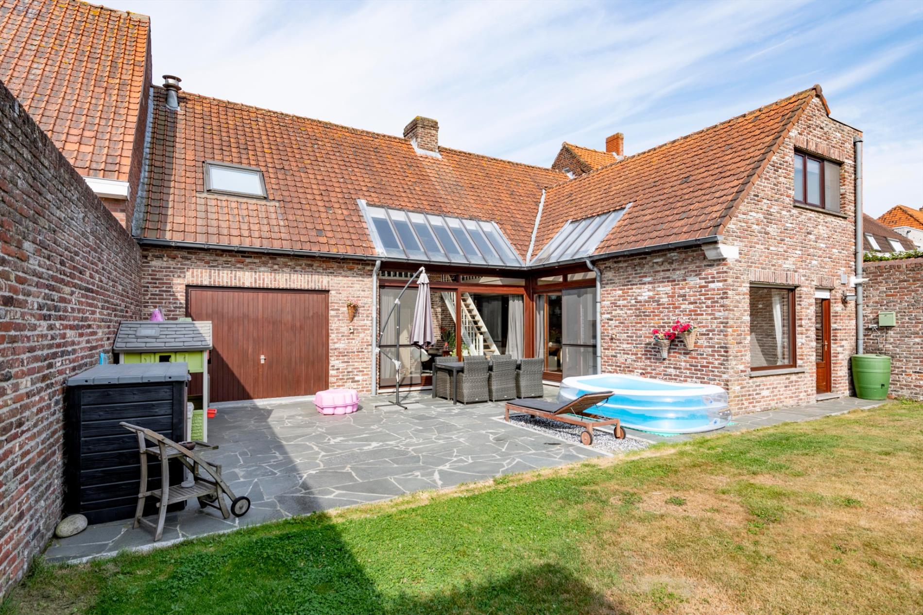 Zeer handig is de garage (32 m²) rechts van de woning met 2 poorten zodoende U meerdere wagens op privé terrein kan plaatsen indien gewenst.