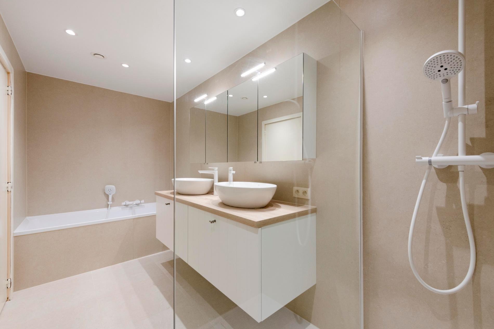 Als laatste is er de VOLLEDIG NIEUWE badkamer van 2020 met een ligbad, dubbele lavabo met bergruimte en spiegelkast alsook een inloopdouche.