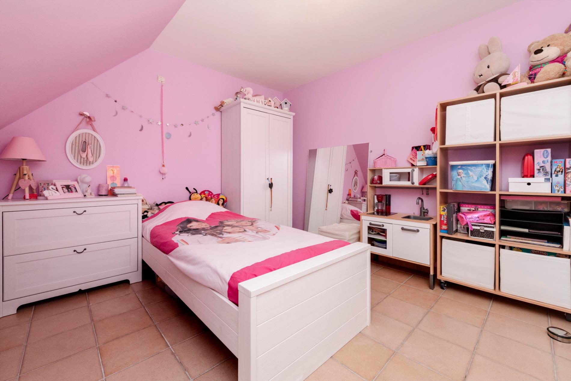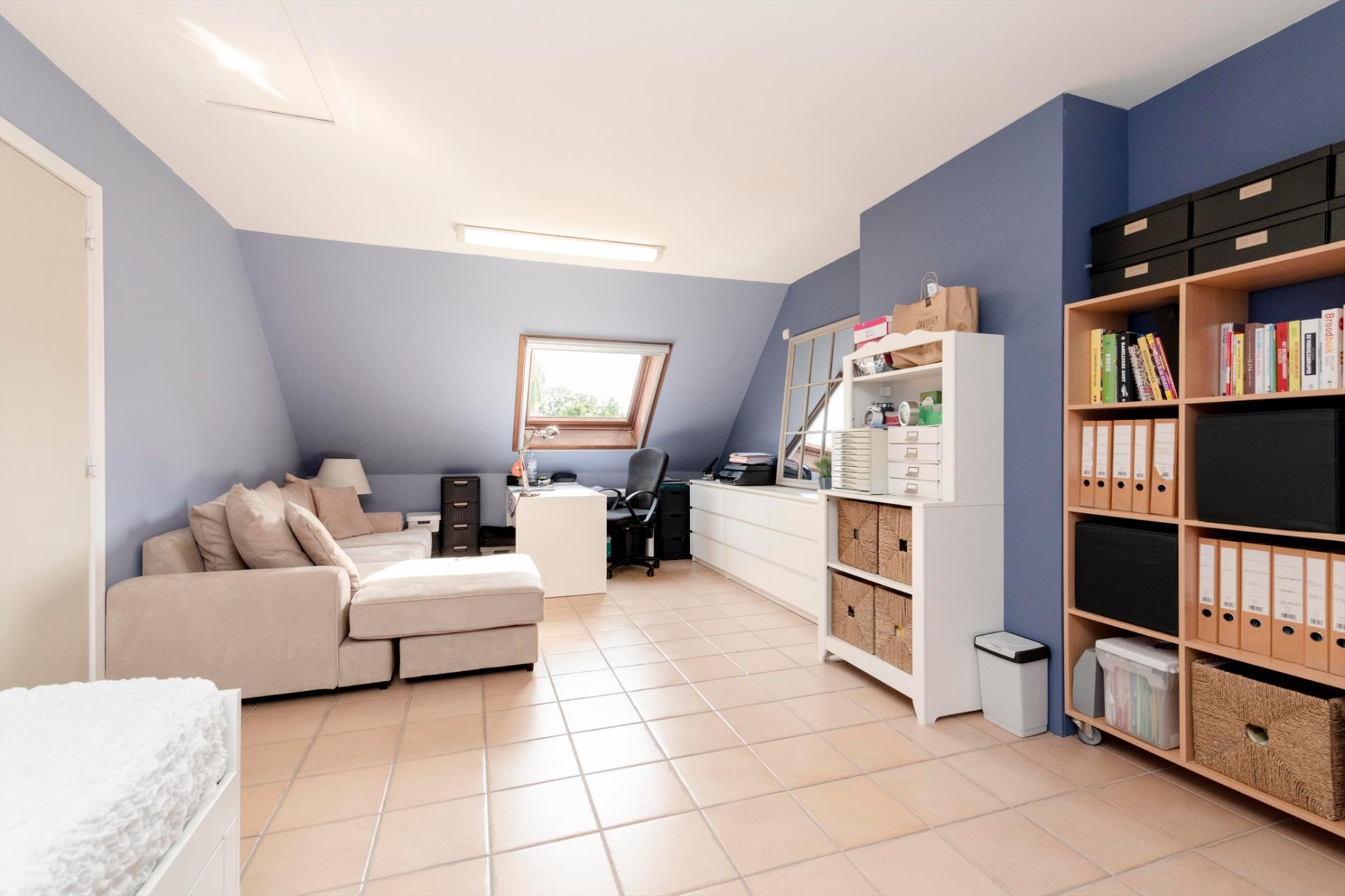 De hoofdslaapkamer geniet van een eigen nachthall met berging en ingemaakte kasten. Tevens is er een apart toilet op dit verdiep.
