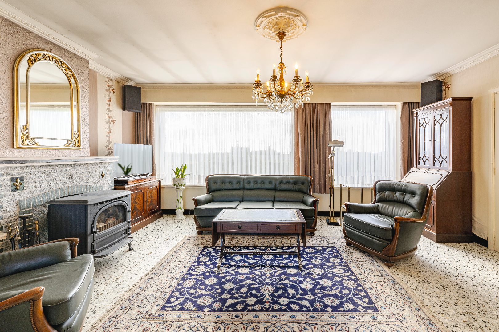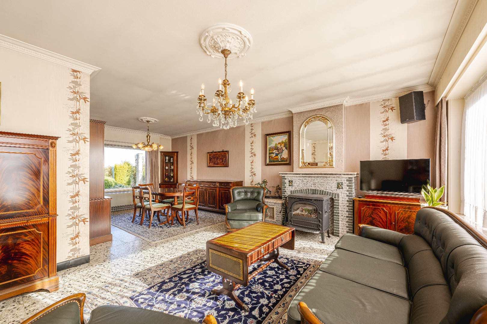 U komt binnen via de inkomhal met apart gastentoilet. Rechts komt U de lichtrijke leefruimte binnen met zit- en eethoek (30 m²) met zicht op de tuin. U geniet tevens van een gezellige houtkachel.