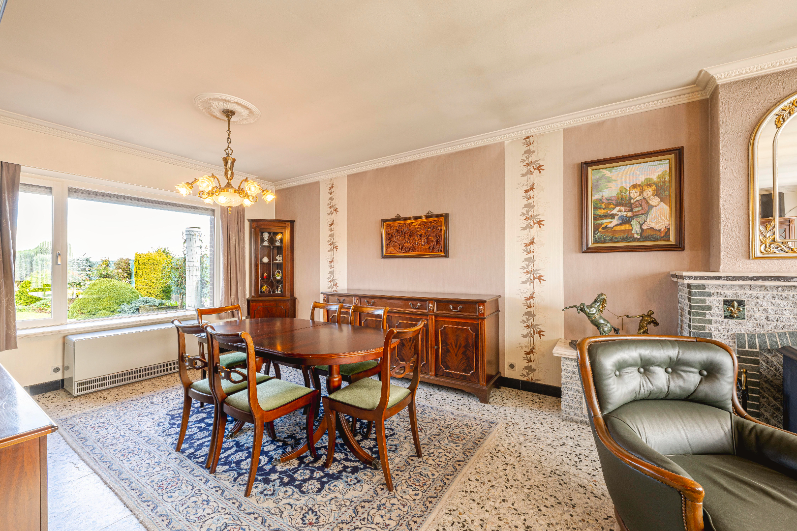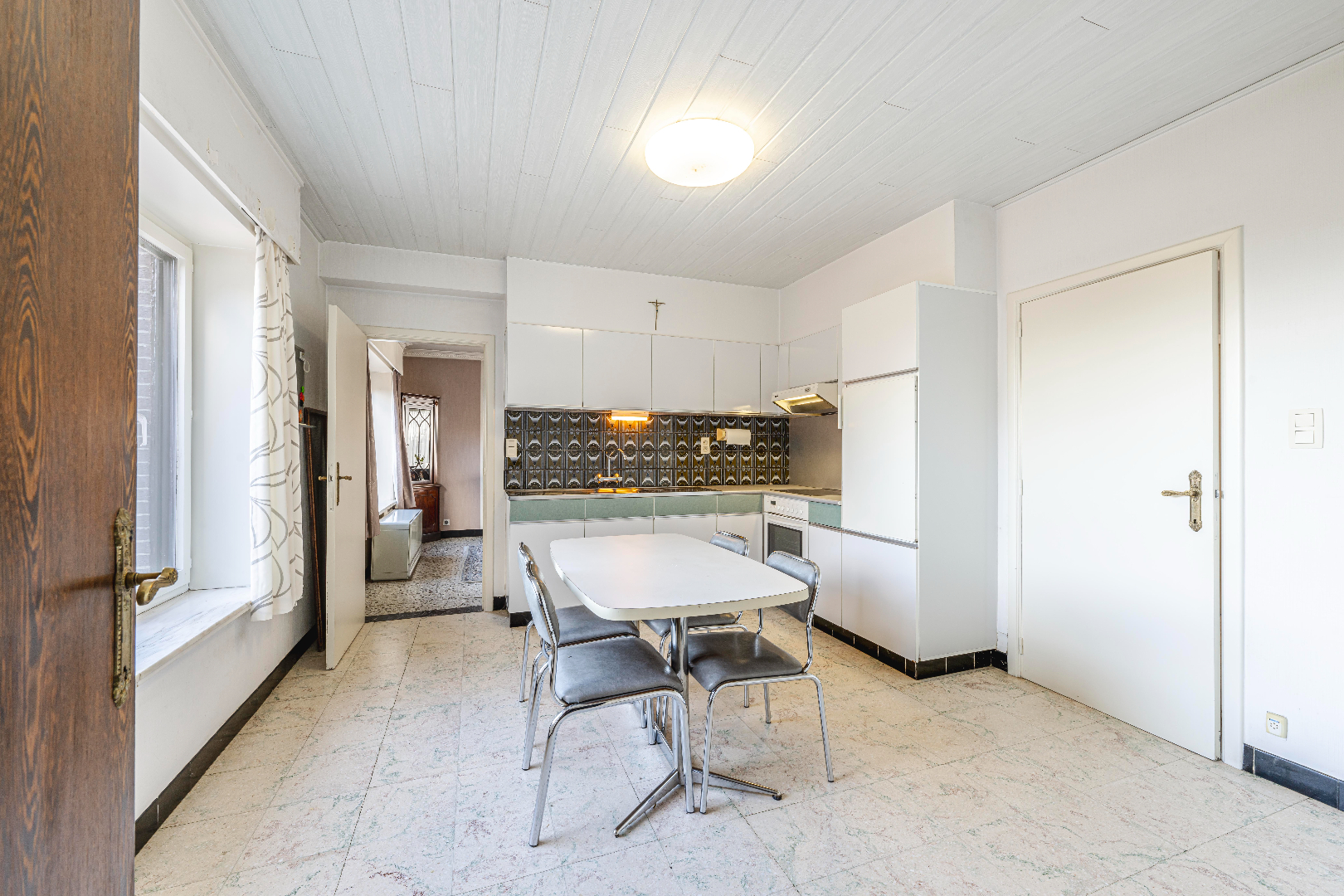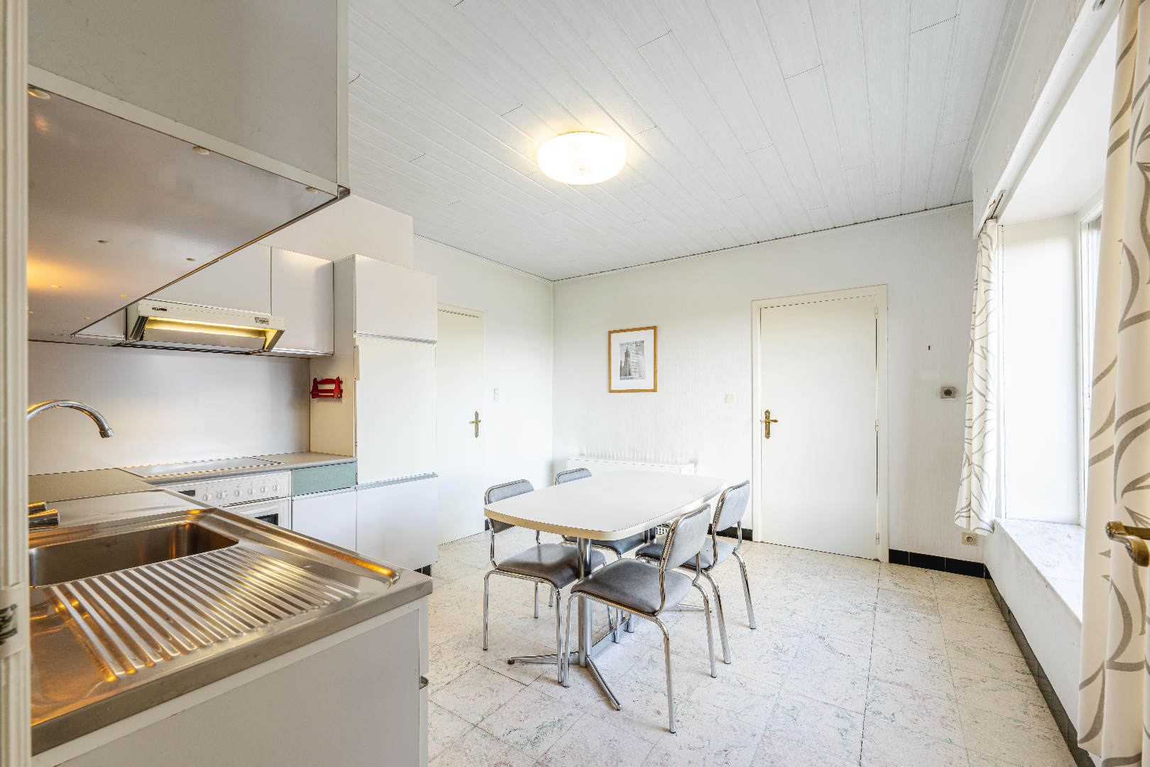 Aansluitend is er de keuken 15 m² (kookplaat | dampkap | spoelbak | oven | frigo) met toegang tot de inpandige garage (23,50 m²) voorzien van een geautomatiseerde poort. Verder is er een tussenruimte/berging met spoelbak en directe toegang tot de tuin met terras.