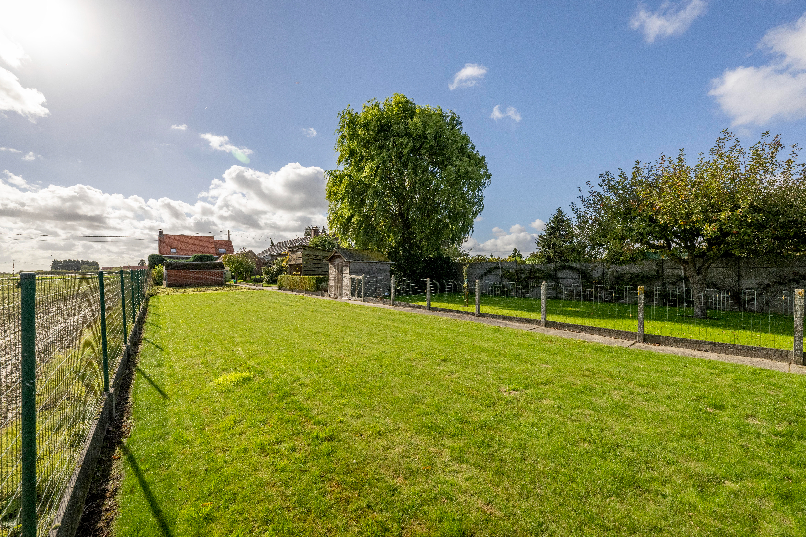 De woning is voorzien van een zeer ruime achtertuin 1.025 m² met voldoende diverse bergruimtes 80 m². De tuin is volledig afgesloten en ingevolge kindvriendelijk met HANDIGE ZIJTOEGANG!! Gezien de diepte van het perceel kan U op elk moment van de dag genieten van de zon!