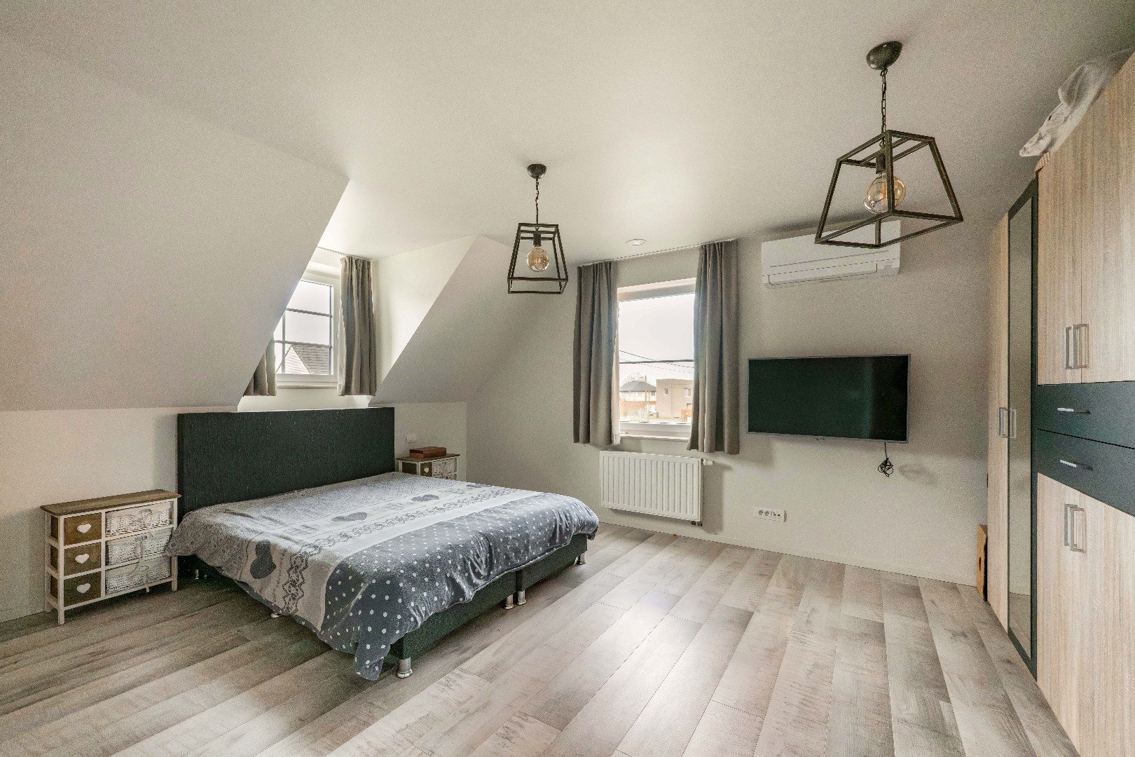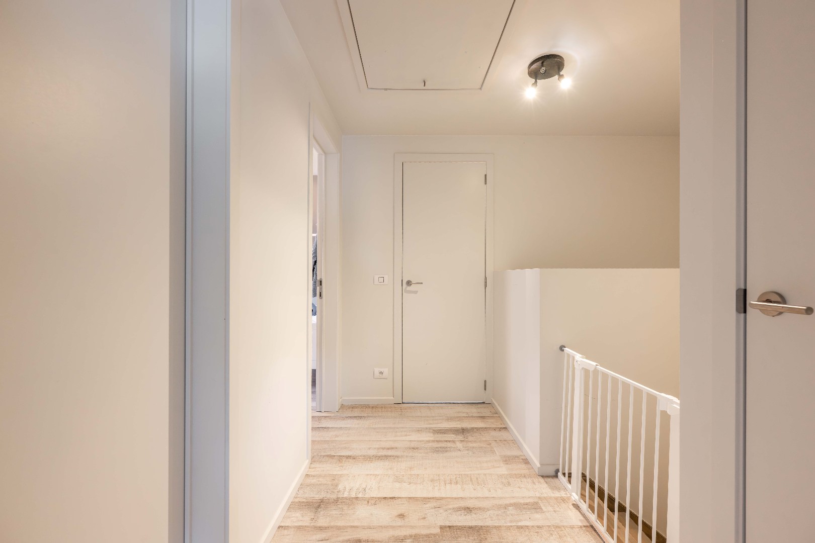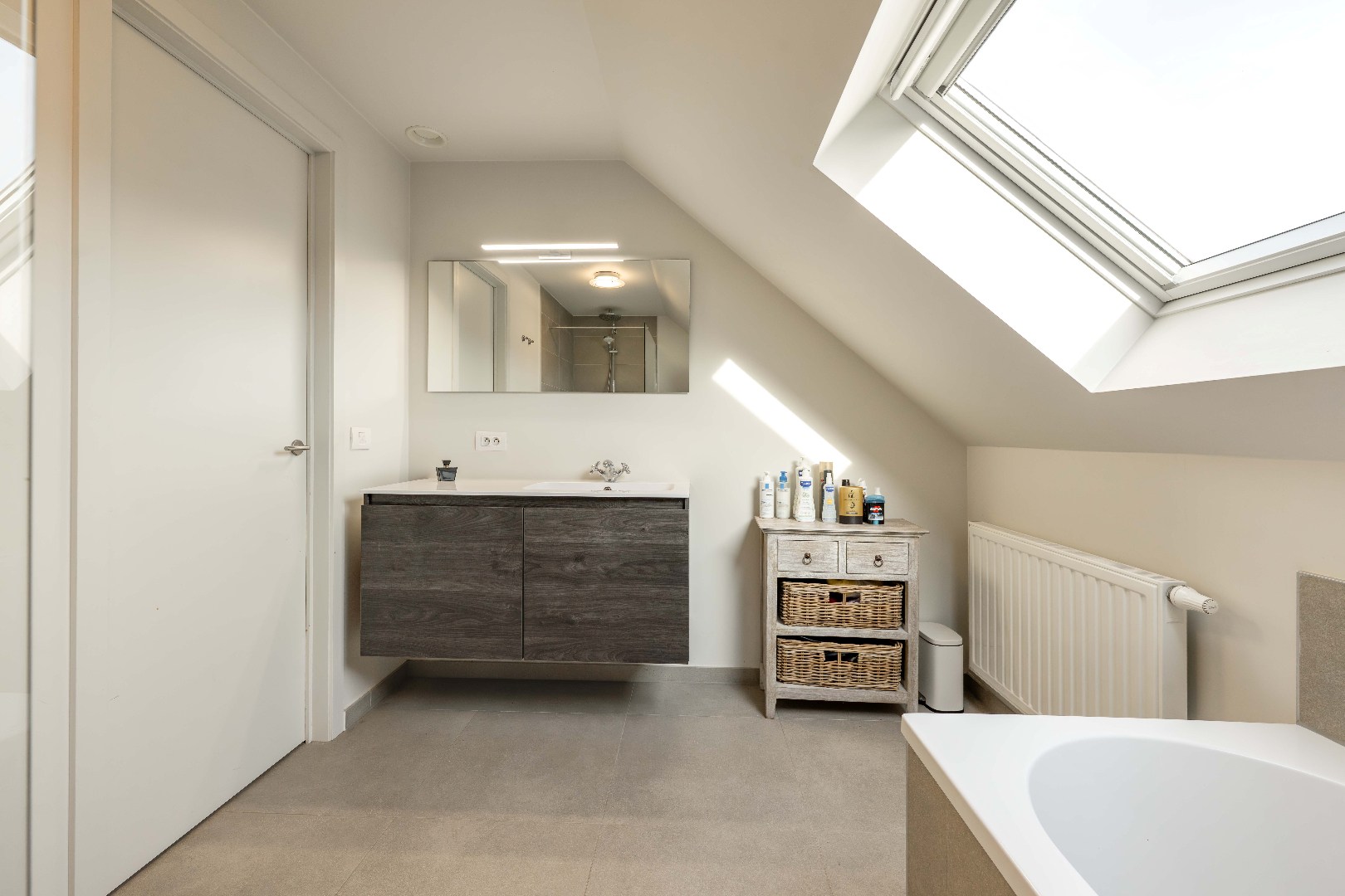 De verdieping omvat 3 volwaardige slaapkamers, een moderne badkamer met ligbad, inloopdouche en dubbele lavabo, evenals een apart toilet.