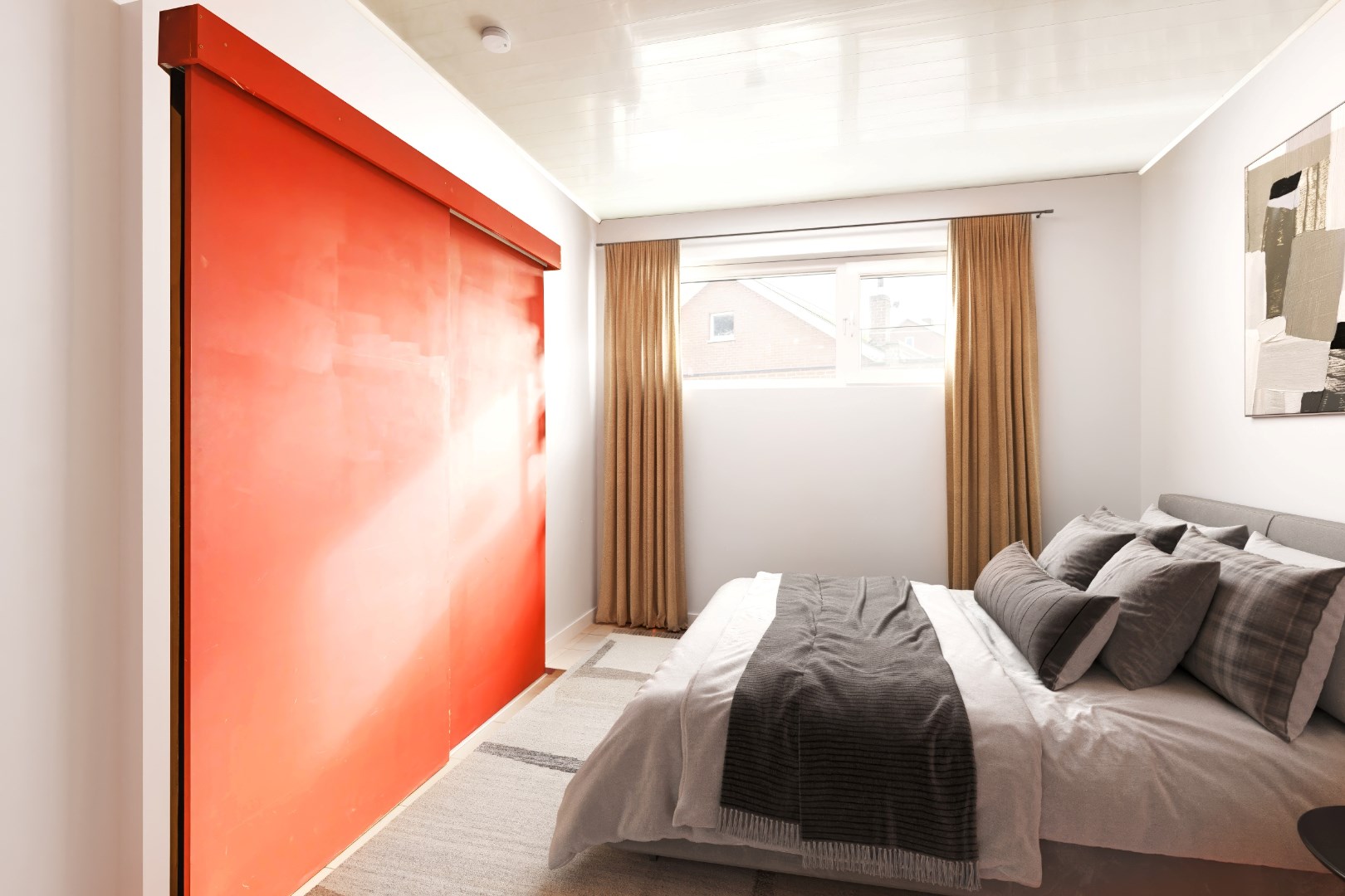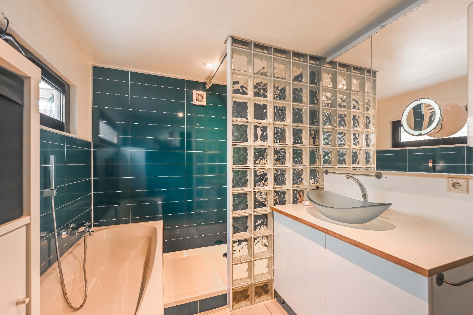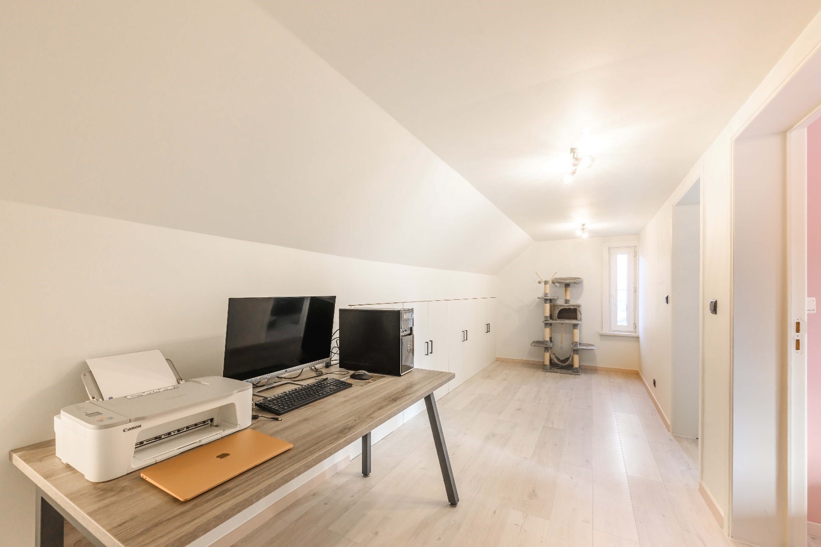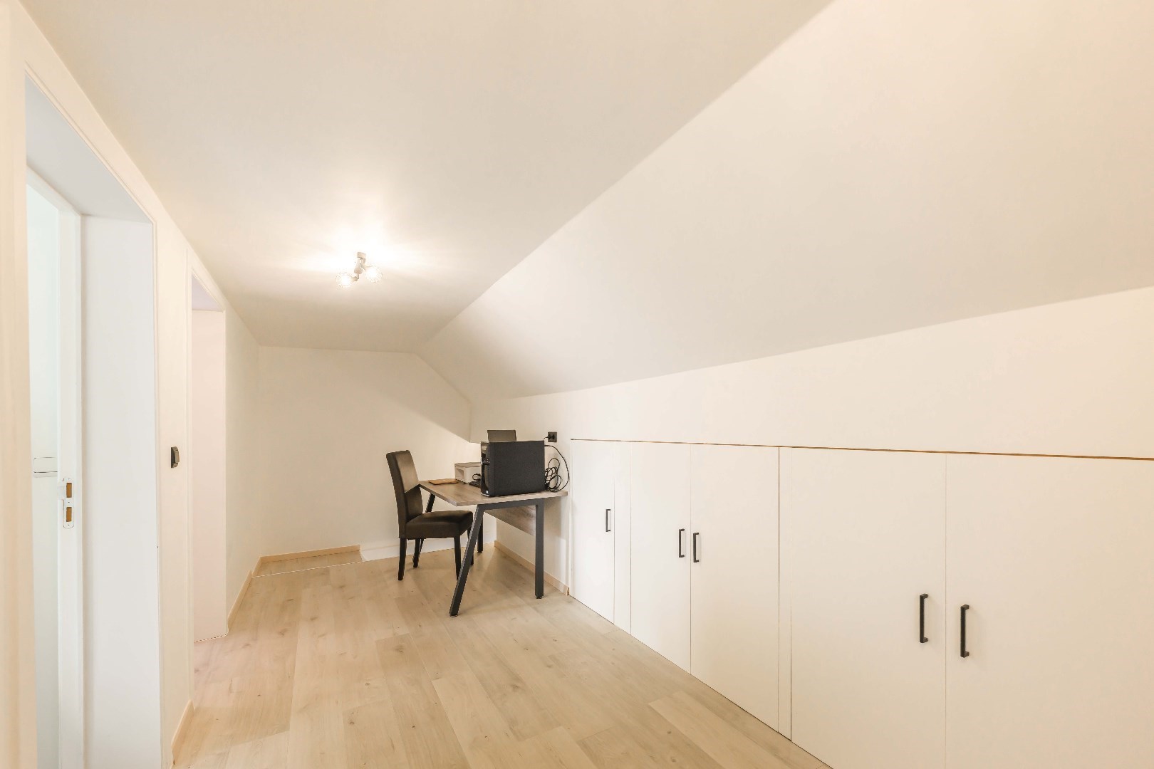 Het verdiep omvat 2 ruime vernieuwde slaapkamers en ruime nachthall met ingemaakte kastenwand en bureel.