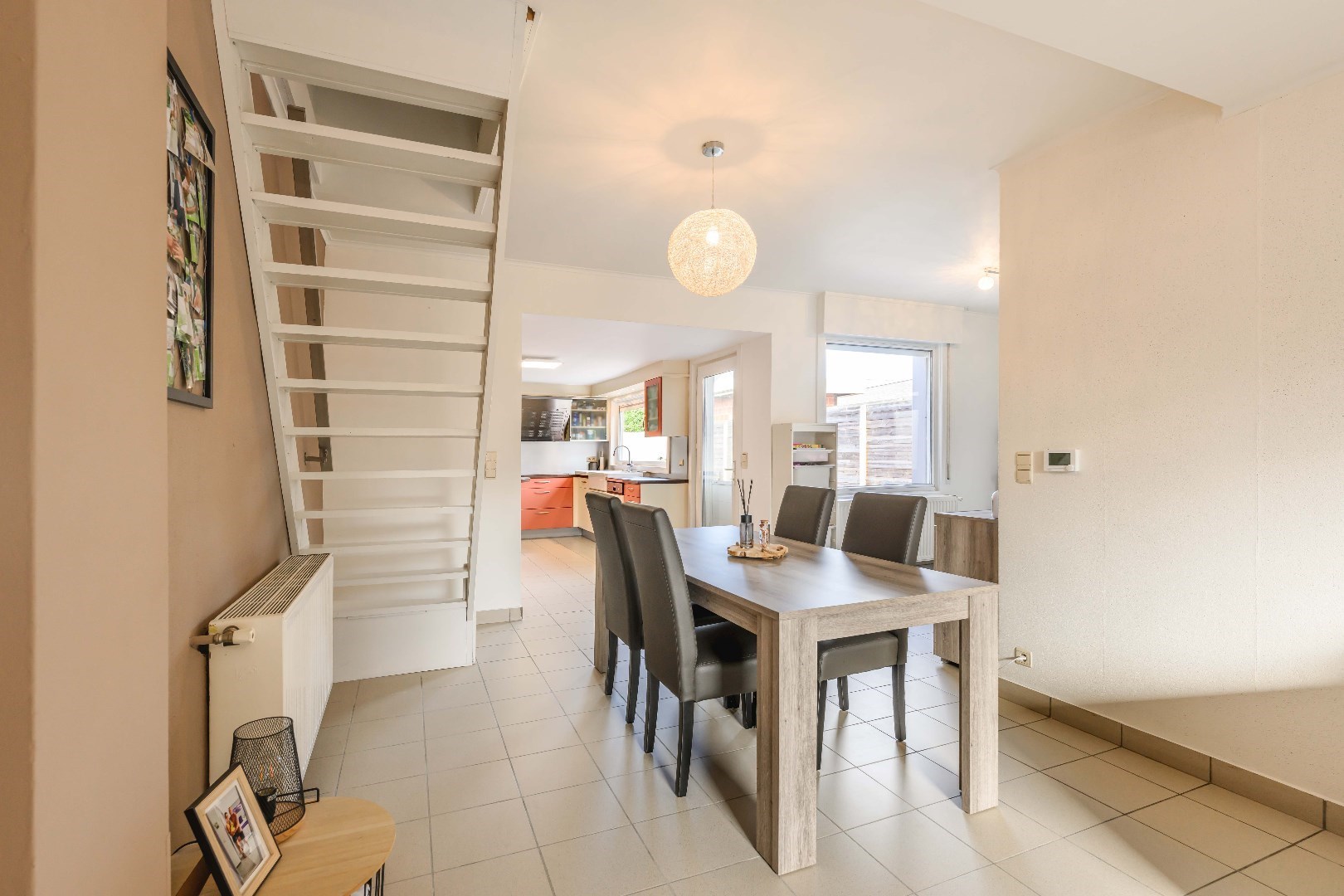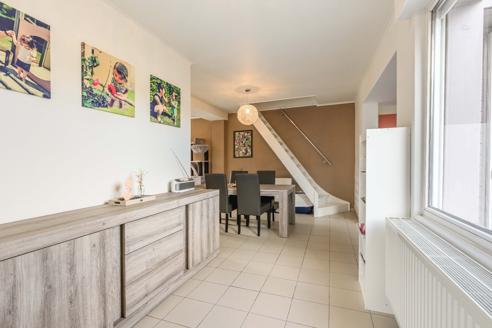 U komt de woning binnen en U bevindt zich in de lichtrijke leefruimte met zit- en eethoek. Vervolgens is er de ruime open ingerichte keuken (kookplaat | dampkap | spoelbak | frigo | oven | vaatwasser). Op het gelijkvloers bevindt zich de gelijkvloerse slaapkamer en ook nog de ingerichte badkamer (ligbad | douche | lavabo met meubel | toilet). Op de linkerkant naast de inkom is er toegang tot de technische ruimte (vernieuwde elektriciteit | zonneboiler 300 liter | omvormer zonnepanelen 18 x 250 WP).