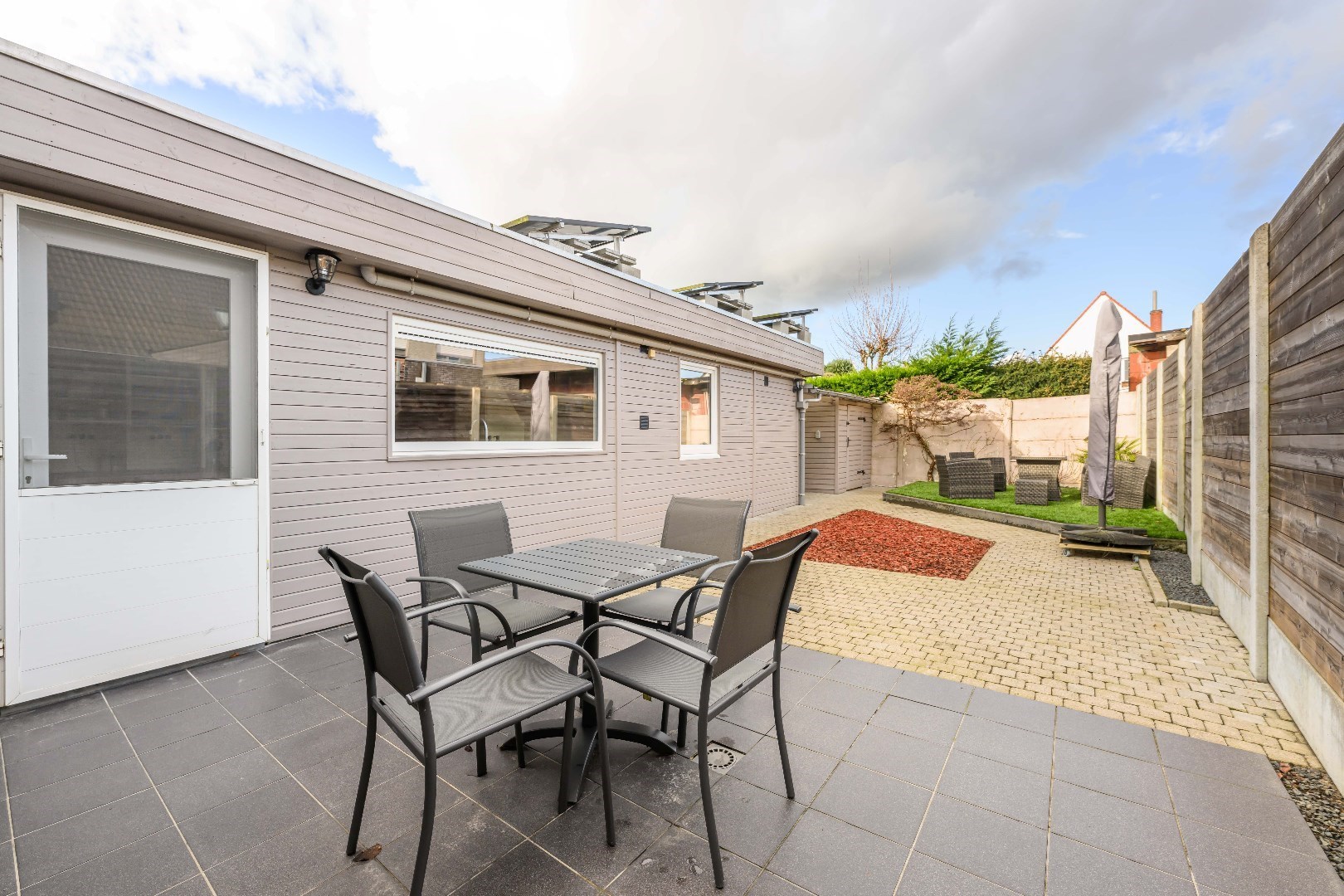 De woning is voorzien van een aangelegde tuin/terras met praktische bergruimte. Deze is volledig afgesloten en ingevolge kindvriendelijk.