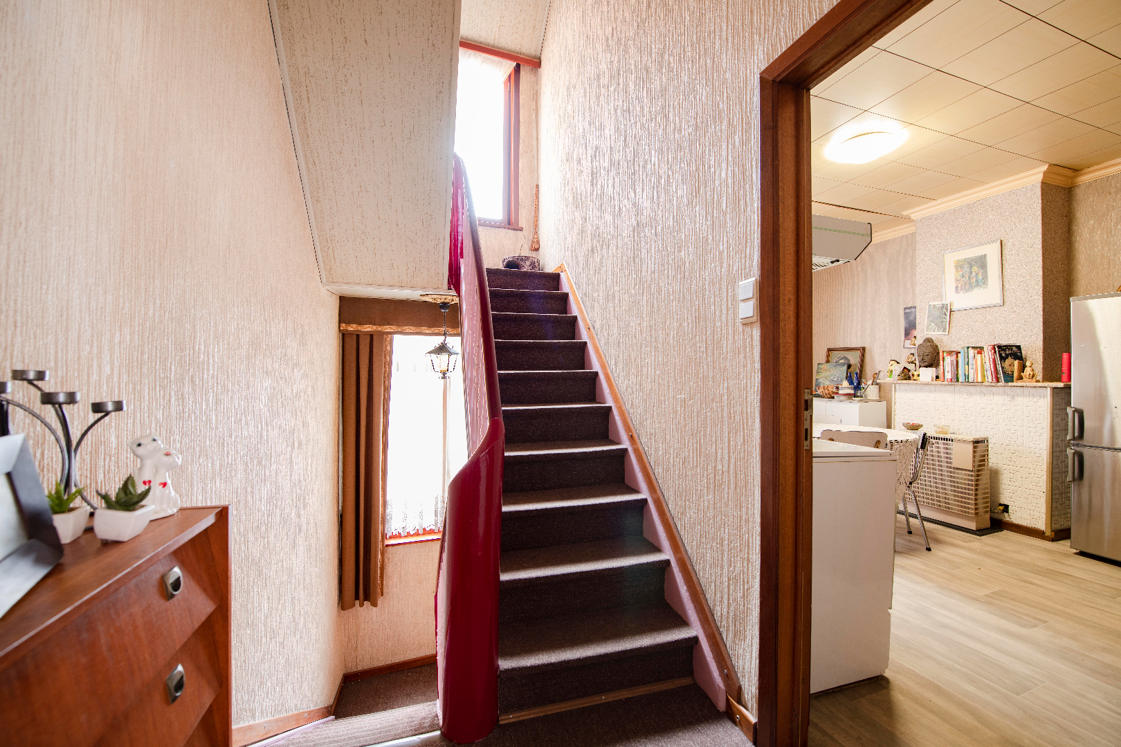 U betreedt de woning via de inkomhall met vaste trap naar het eerste verdiep. Daar is er de ruime leefruimte met een aparte ingerichte keuken en een badkamer (douche | toilet | lavabo).