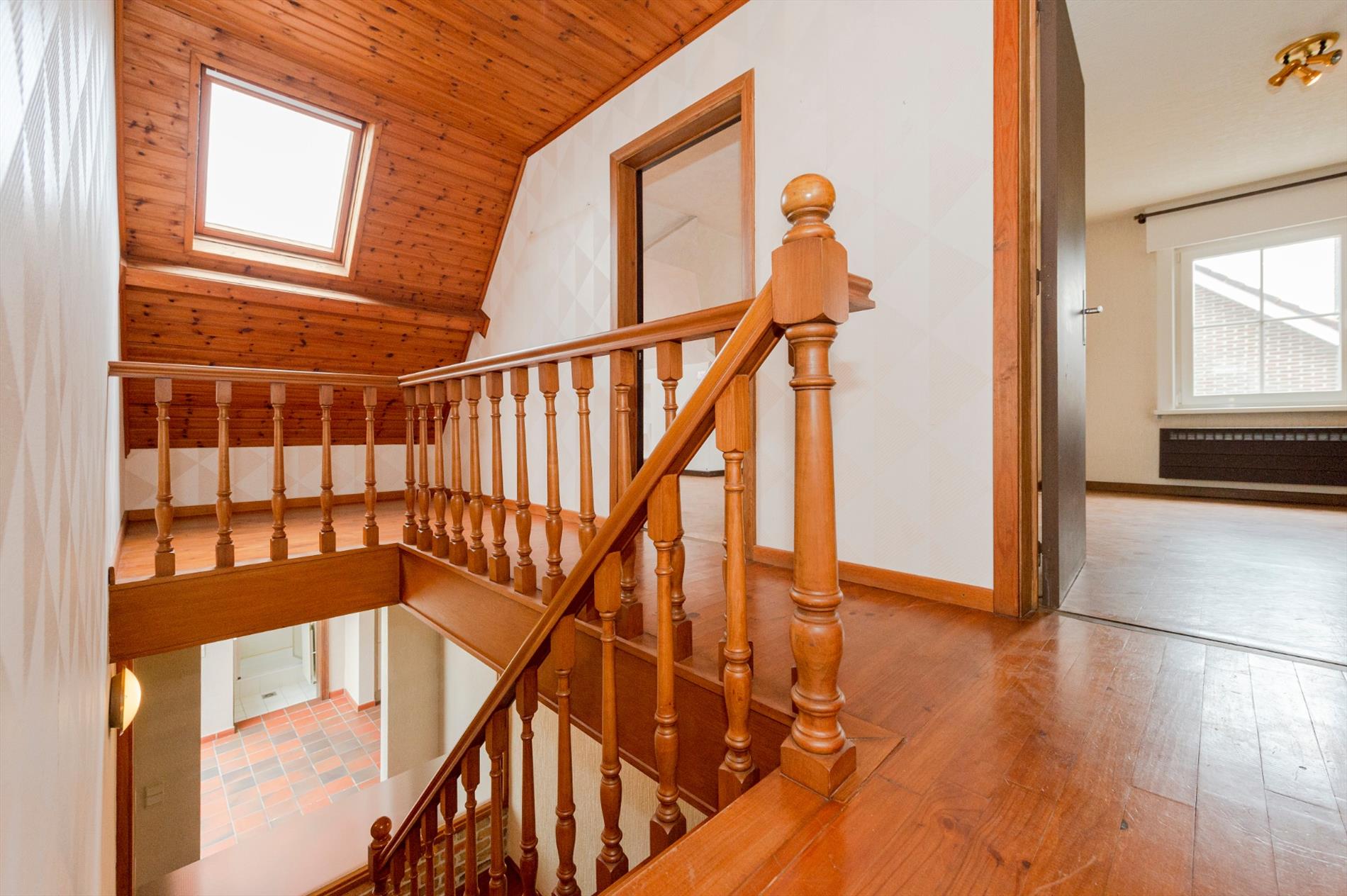 Het verdiep omvat een ruime nachthall, een ingerichte badkamer (ligbad | lavabo en toilet), verder zijn er nog drie zeer ruime slaapkamers en 2 geïsoleerde zolderingen.